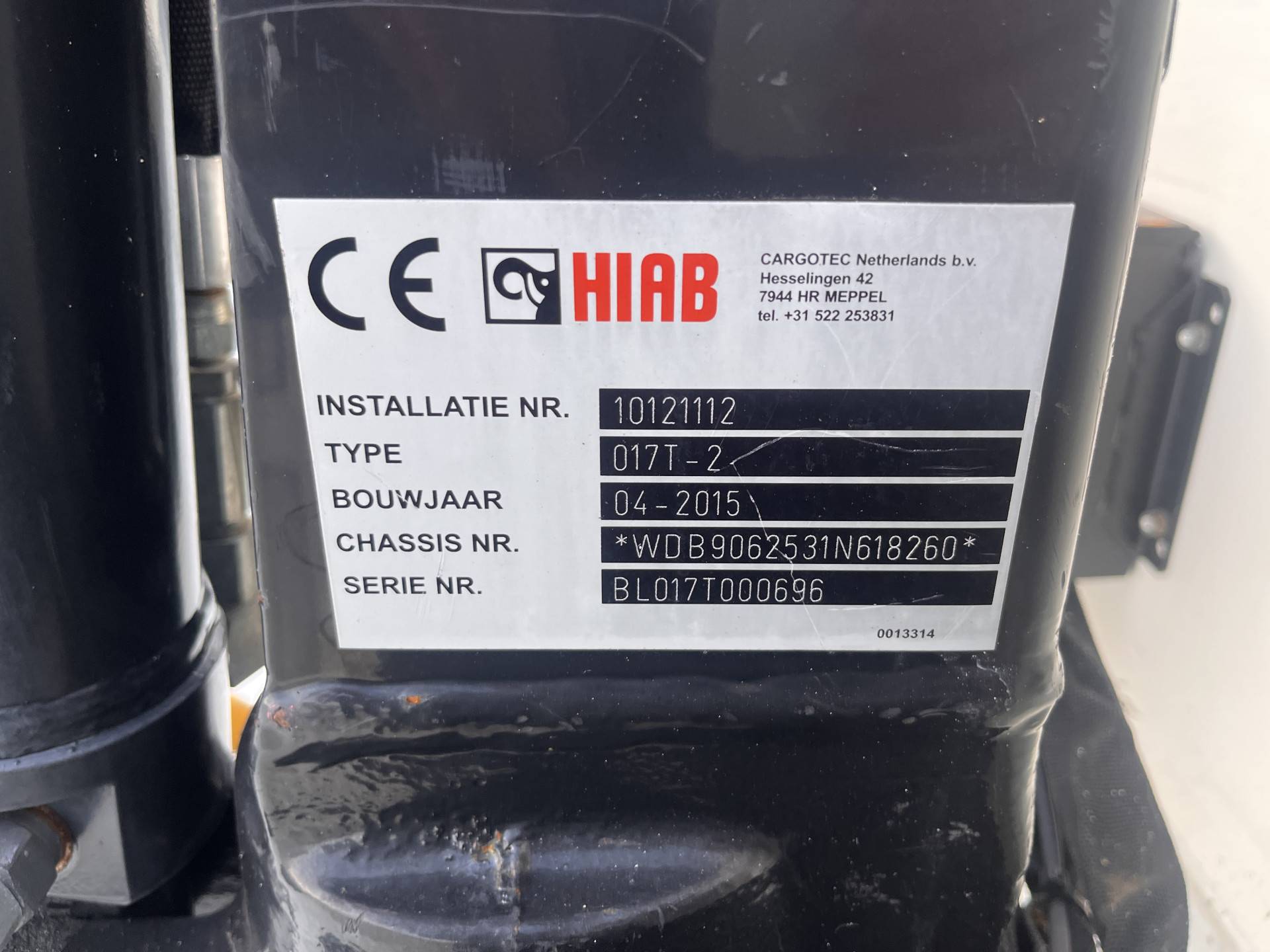 Kraan: Hiab 017T, bouwjaar 2015, achter de cabine