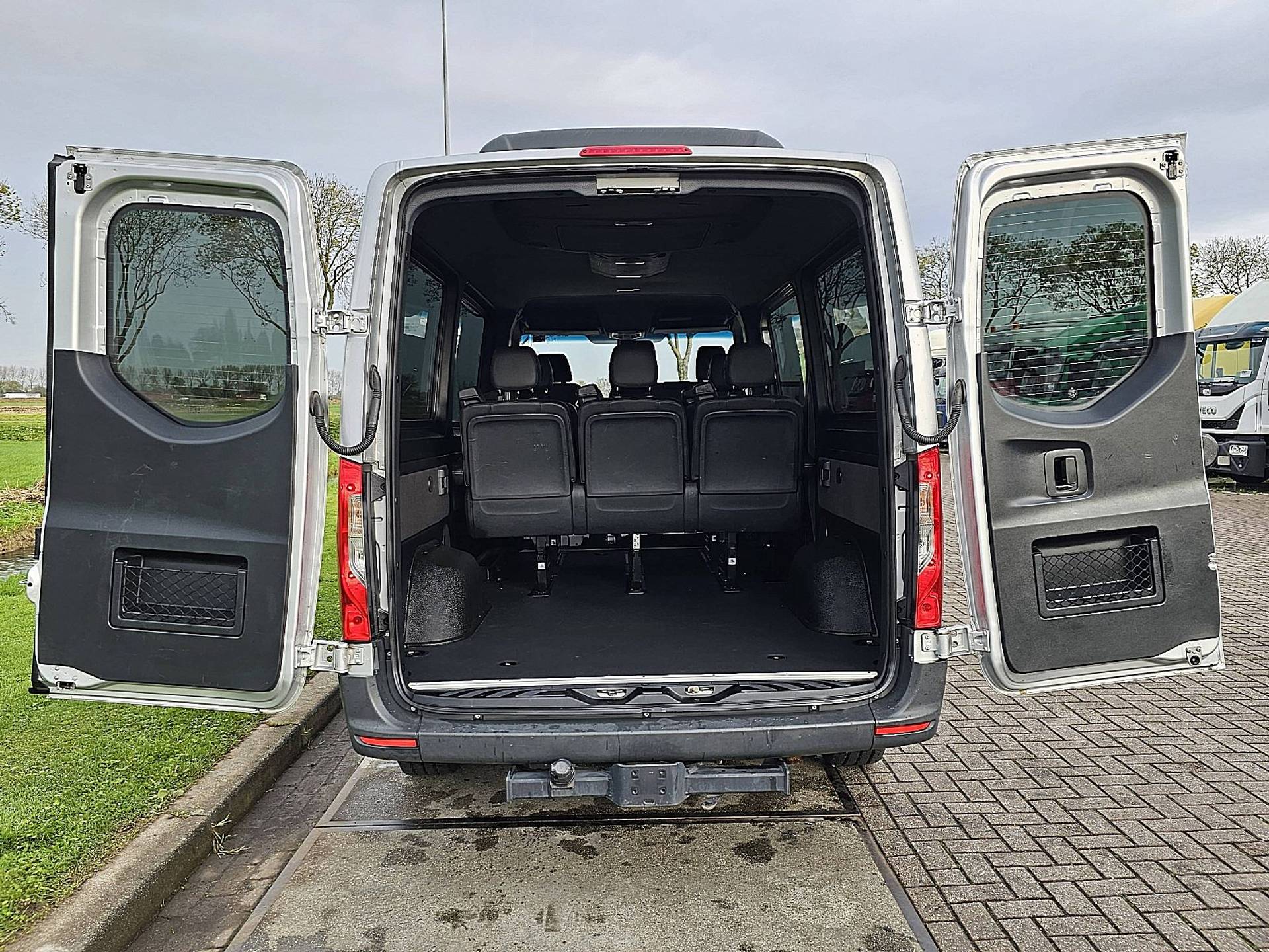 Configuratie: 4x2, Eigen gewicht: 2572 kg, Totaalgewicht: 3500 kg, Cruise control, Airconditioning, Aantal airbags: 1, Standkachel, Parkeerhulp: Geen, Getint glas, Elektrische ramen, Elektrische spiegels, Radio/cassette, Carplay, Kleur: Zilver, Metallic, Soort lampen: Halogeen, Climatecontrol, Bluetooth, Motorvermogen: 105 Kw (141 Hp), Brandstof: diesel, Euro: 6, Distributie type: Distributieketting, Soort versnellingsbak: Handgeschakeld, Versnellingen: 6, Stuurbekrachtiging, ABS (Anti Blokkeer Systeem), ASR (Anti Slip Regeling), Start accu, Opbouw model: L2H1 - Medium wheelbase, Low roof, Imperiaal: Geen, Zijdeuren: 1, Zijruiten: 4, Achtersluiting: dubbele deur, Centrale vergrendeling, Zitplaatsen: 9, Stoelopstelling: 3+3+3, Stoelbekleding: leder, Stoel verstelling: Handmatig, L2H1 9-Persoons 2X Airco 143Pk Euro6 Leer CruiseControl Mbux RWD!, Reservewiel, Banden soort: All weather banden