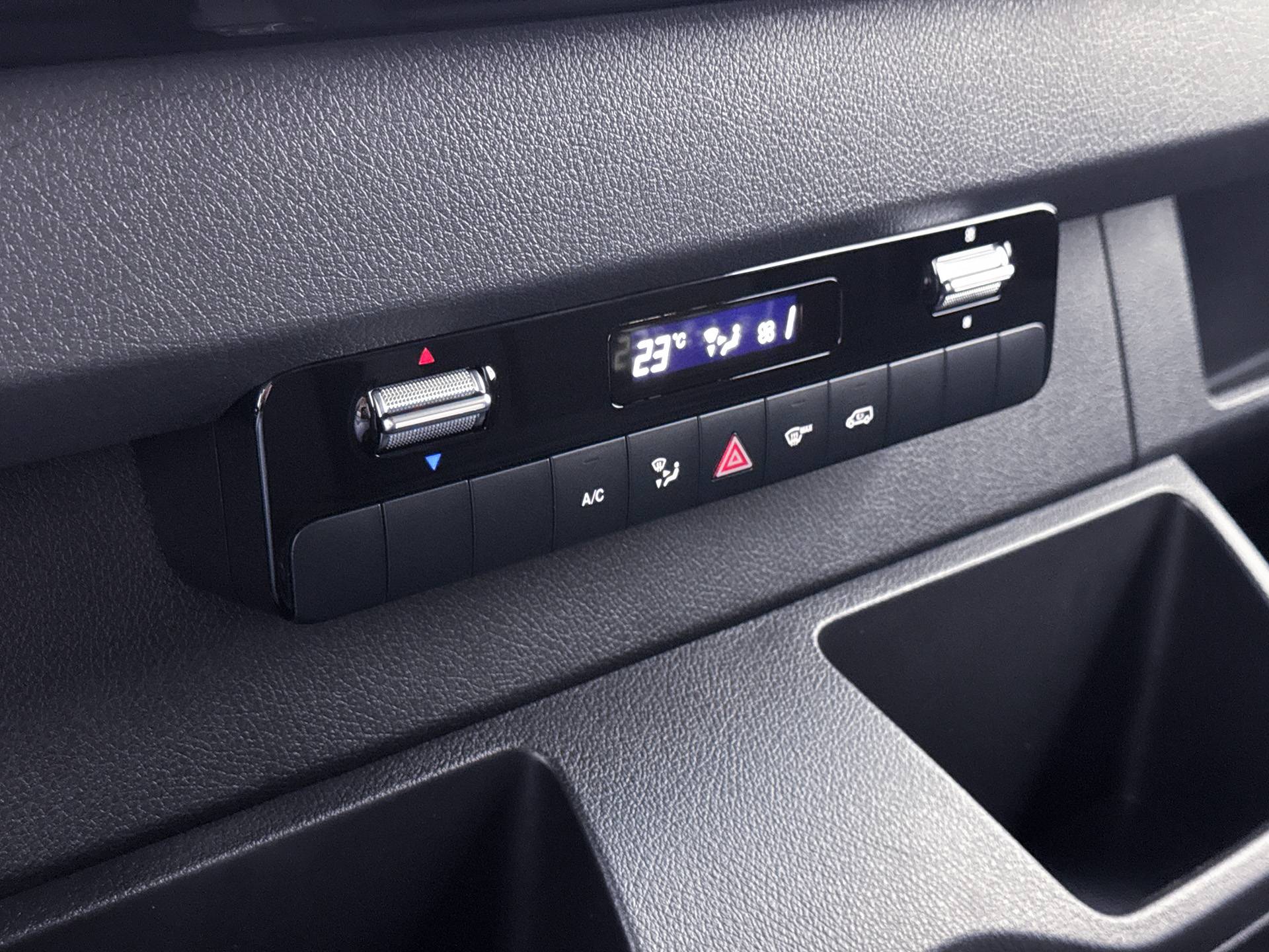 Voor lange ritten biedt de cruise control extra rust en een constante snelheid, terwijl de elektrisch verstelbare en verwarmbare buitenspiegels bijdragen aan een prettige rijervaring. De cabine is praktisch ingericht voor drie personen met stofbekleding, en een volledig tussenschot zorgt voor een duidelijke scheiding tussen laad- en zitruimte.