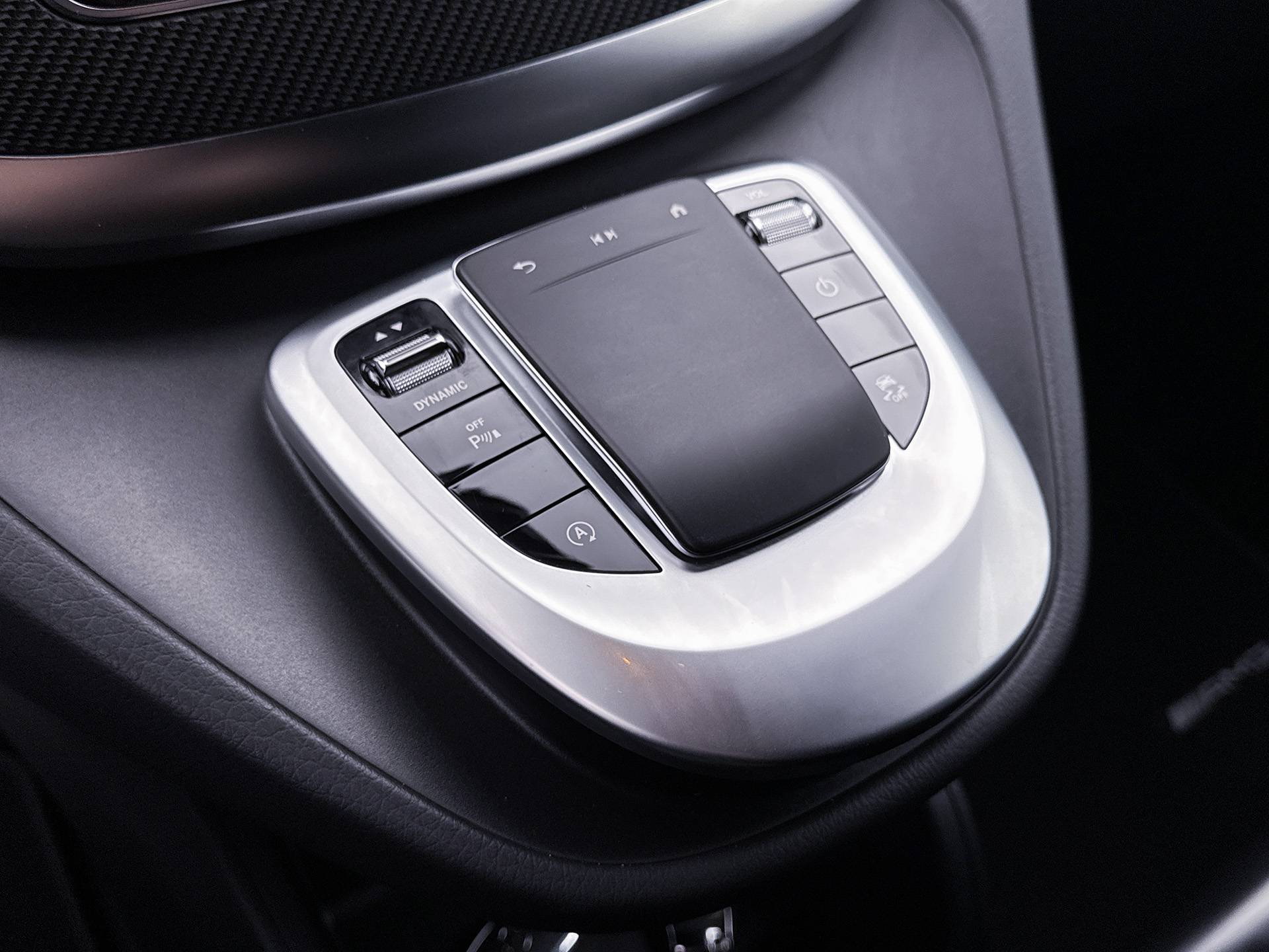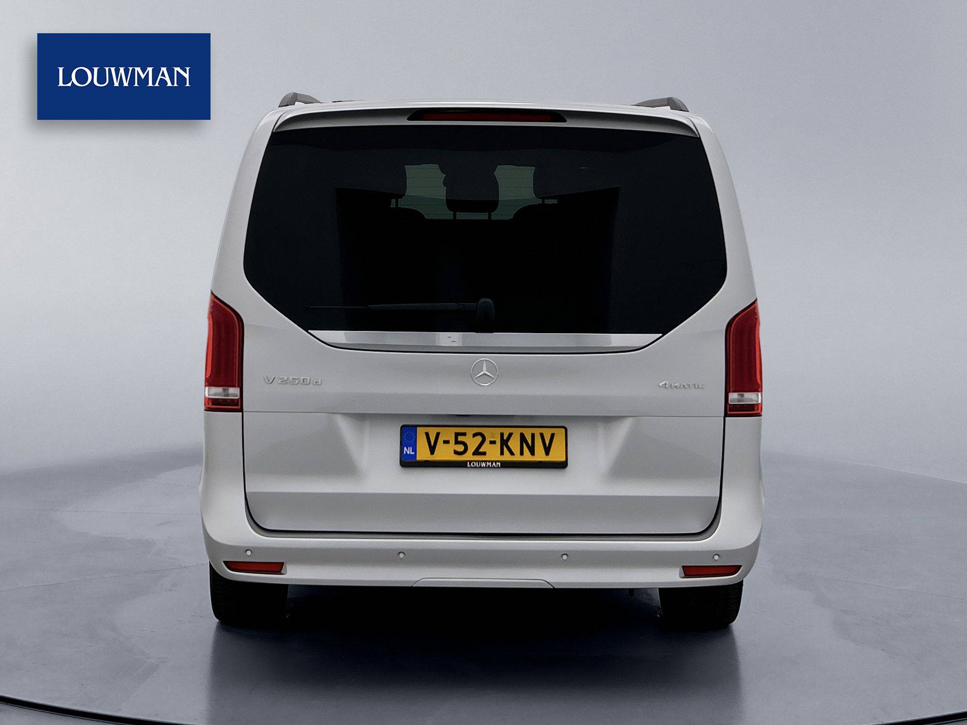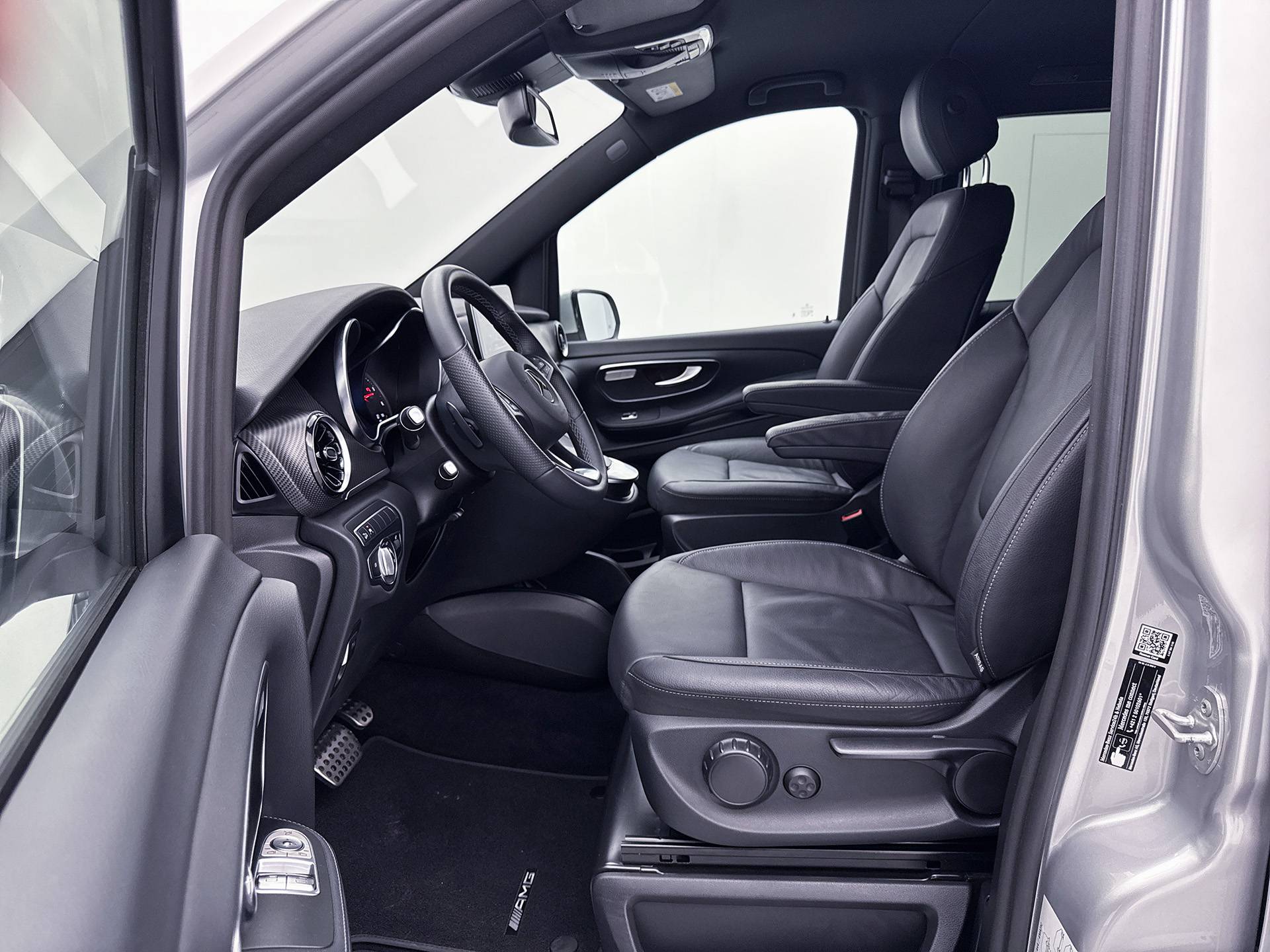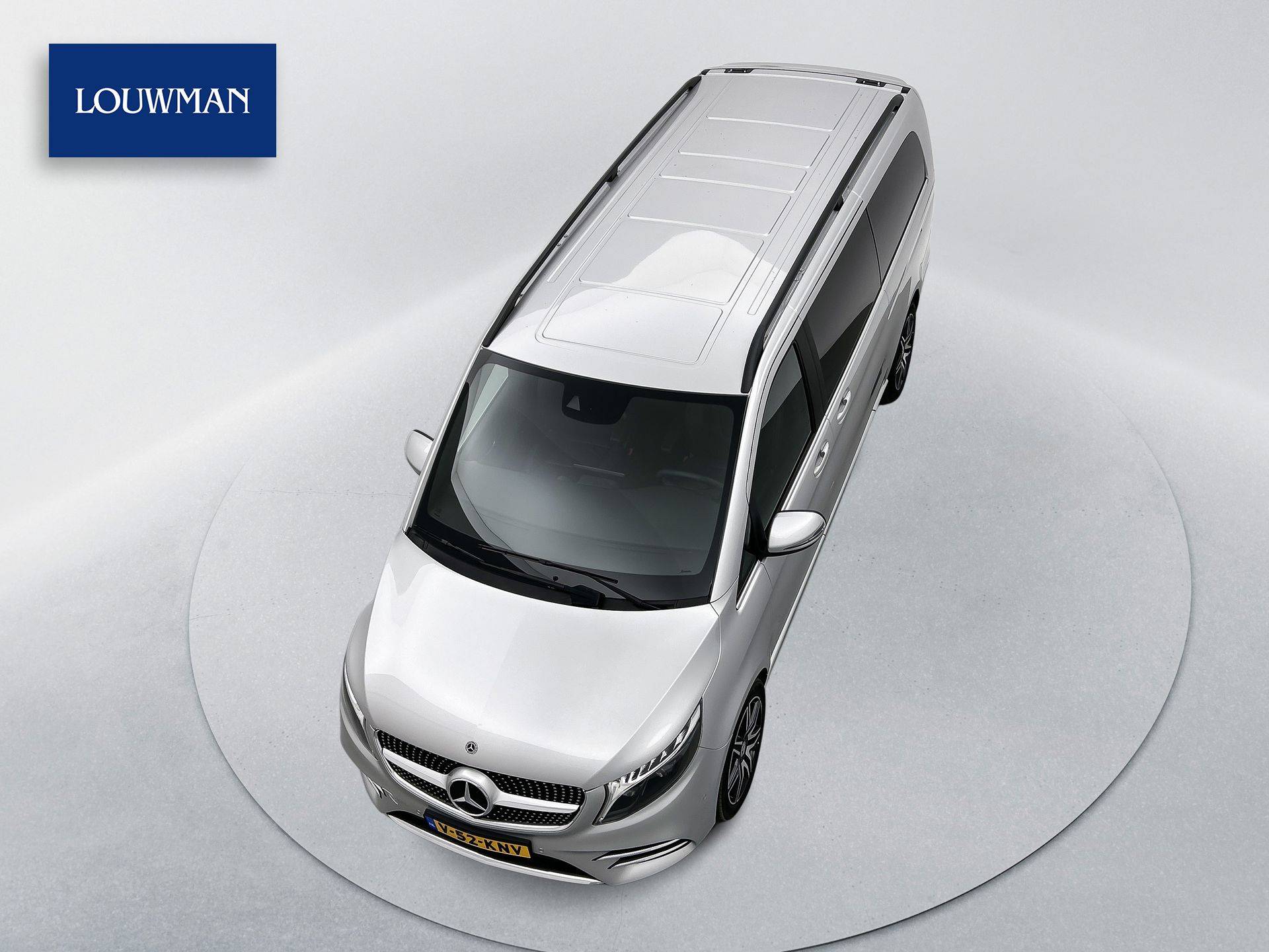 Deze V-Klasse is uitgevoerd in stijlvol licht zilver metallic en voorzien van het AMG Styling-pakket, inclusief 19-inch lichtmetalen velgen en sportieve styling, wat zorgt voor een dynamische uitstraling.