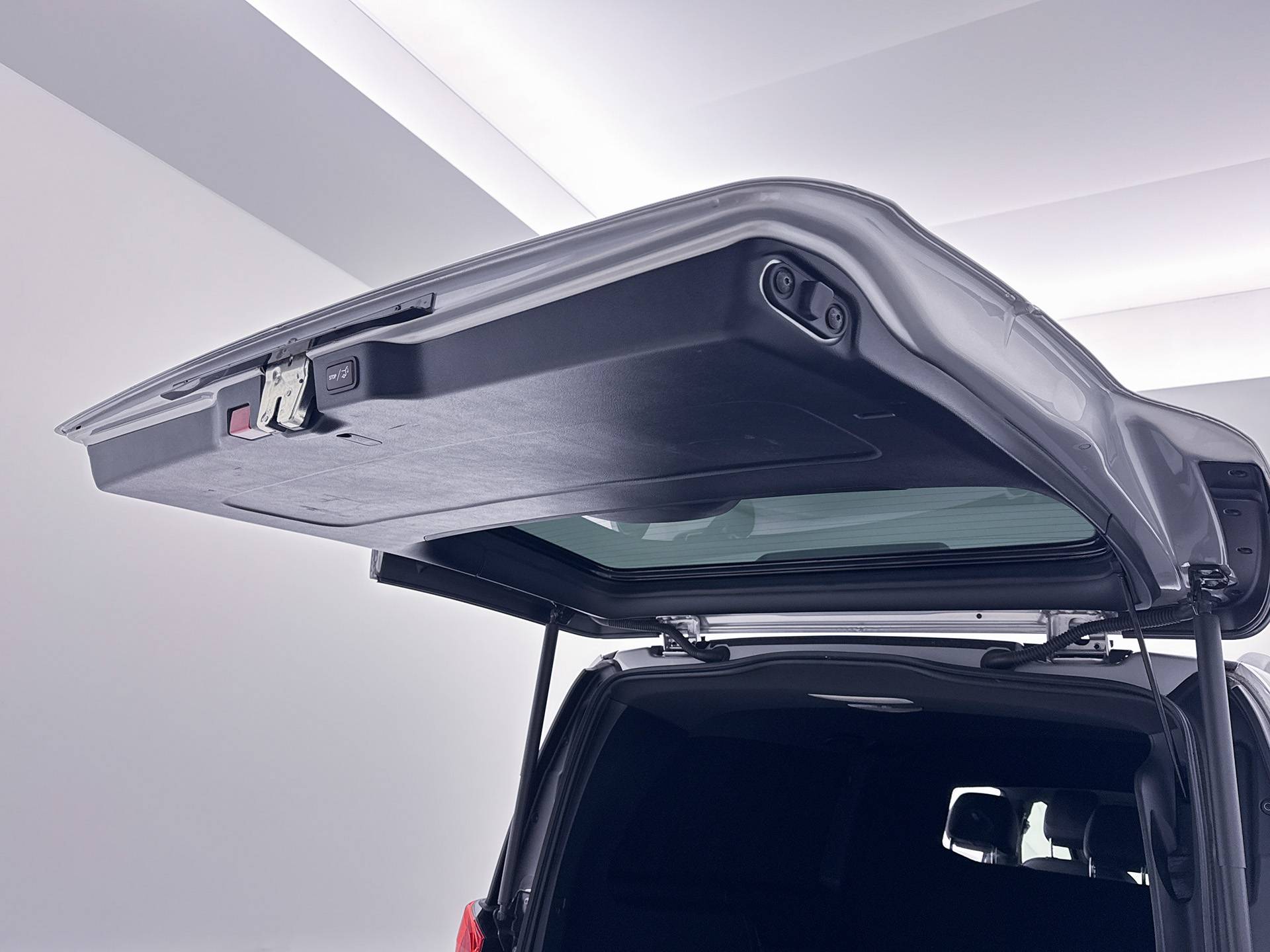 Het interieur biedt plaats aan vijf personen en is afgewerkt met hoogwaardige lederen bekleding in de kleur antraciet, wat zorgt voor een comfortabele en luxe rijervaring.