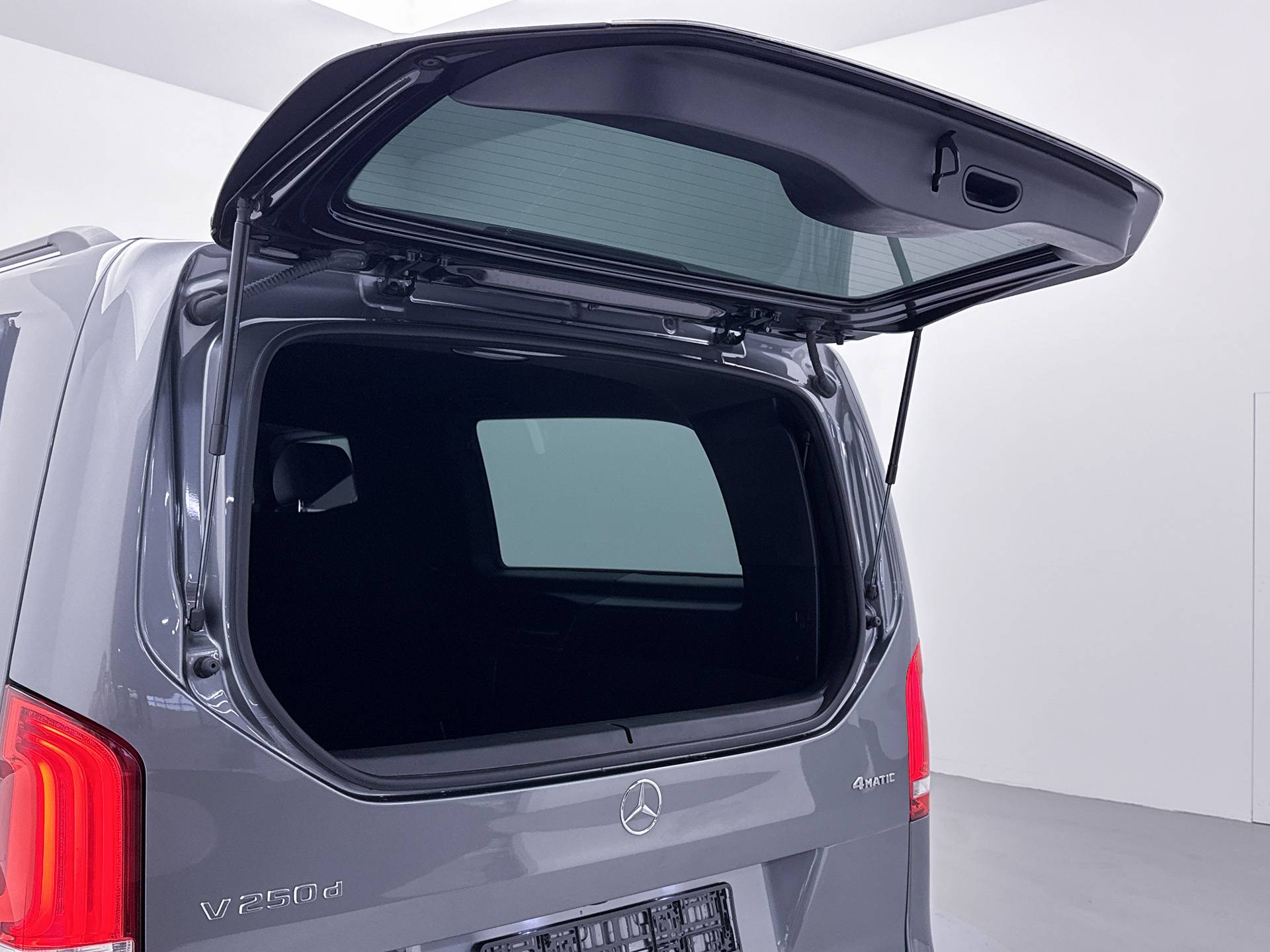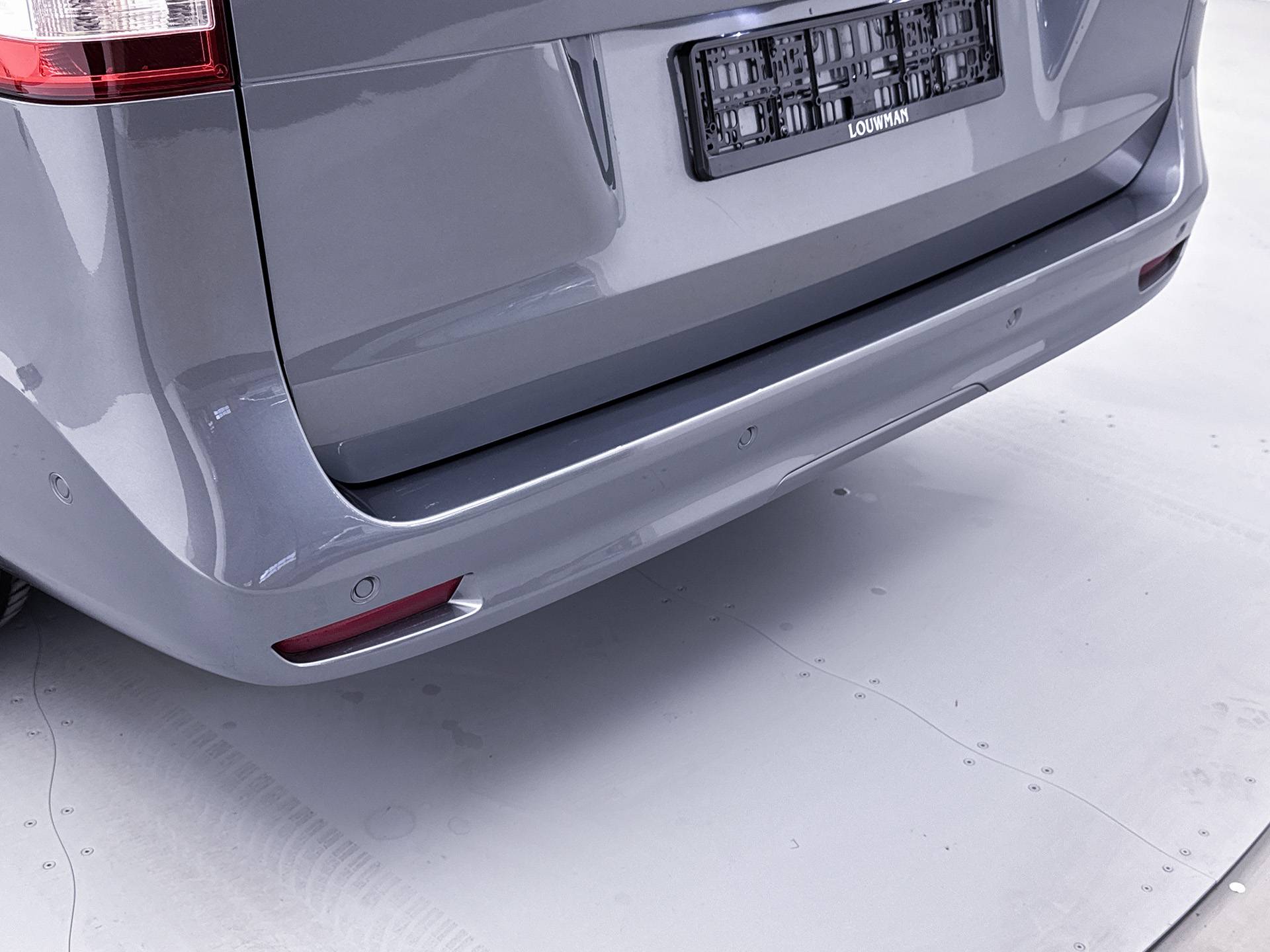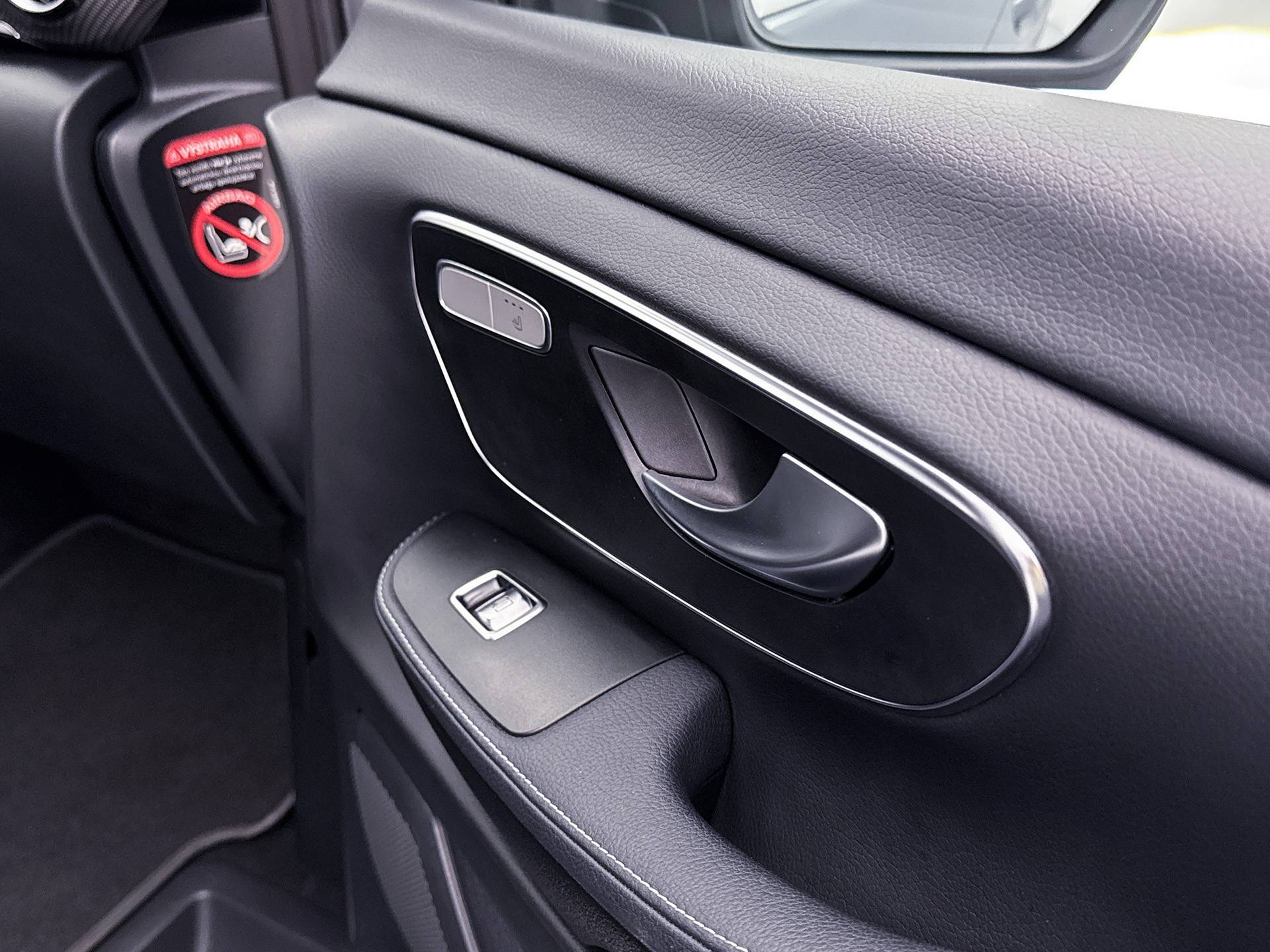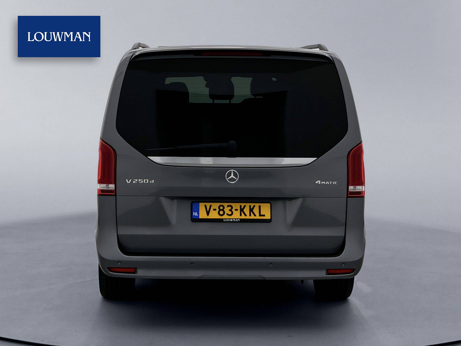 Deze V-Klasse is uitgevoerd in stijlvol grijs metallic en voorzien van het AMG Styling-pakket, inclusief 19-inch lichtmetalen velgen en sportieve styling, wat zorgt voor een dynamische uitstraling.