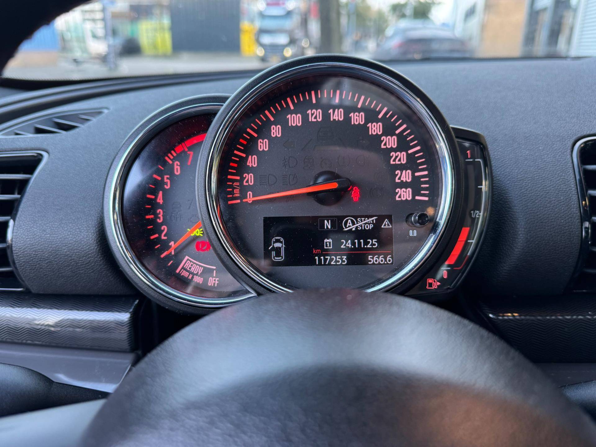 Deze Mini Clubman biedt daarnaast een reeks geavanceerde veiligheidssystemen. Forward collision warning bewaakt continu de afstand tot uw voorliggers en grijpt in wanneer nodig. Vermoeidheidsherkenning geeft direct een signaal bij afnemende concentratie. Dankzij hill hold functie, brake assist en bandenspanningcontrolesysteem rijdt u elke rit met vertrouwen. Voor extra zekerheid kunt u kiezen uit de Autotrust-garanties van 6 of 12 maanden, beschikbaar in zowel het Instap als het Uitgebreid pakket.