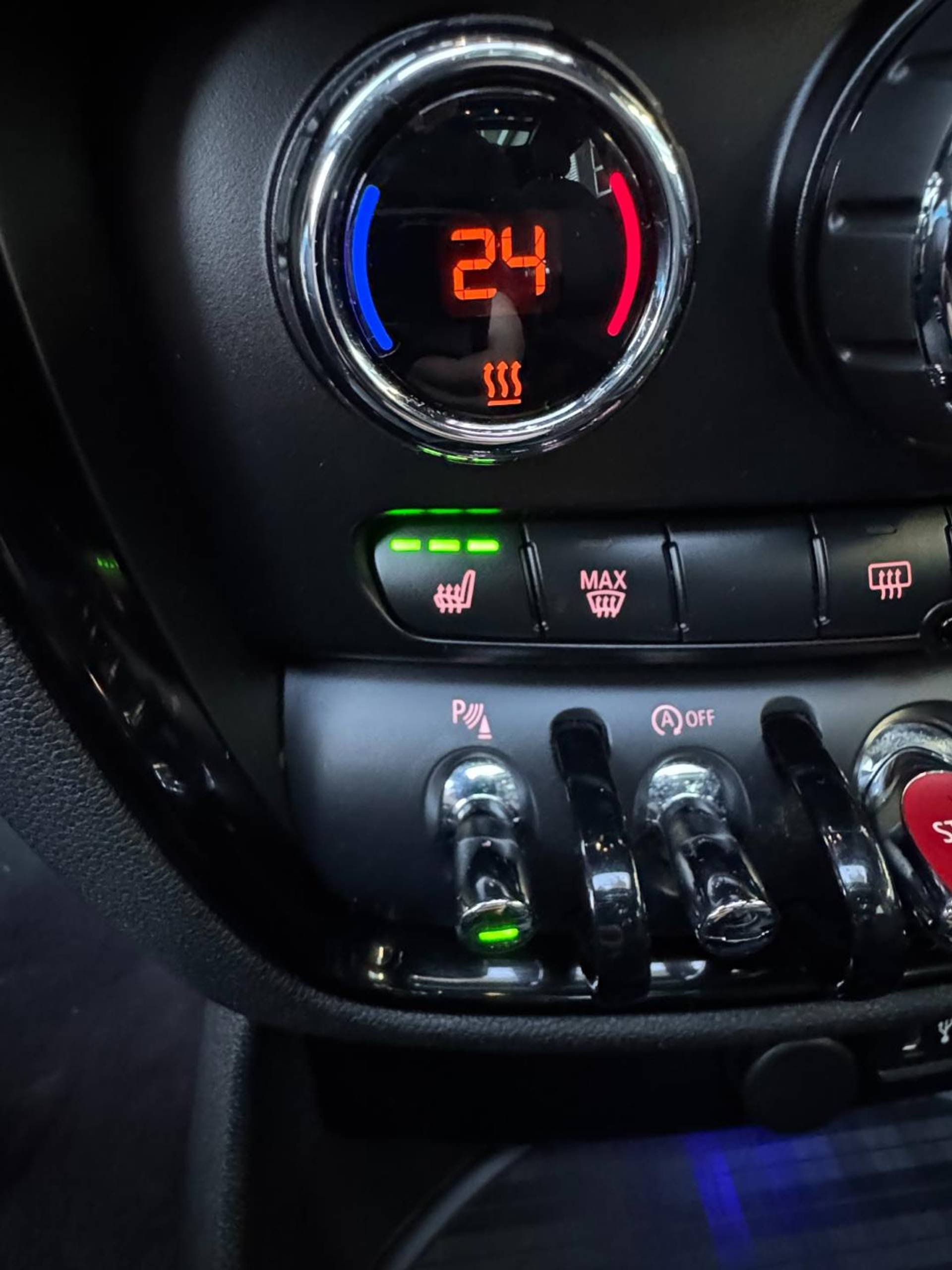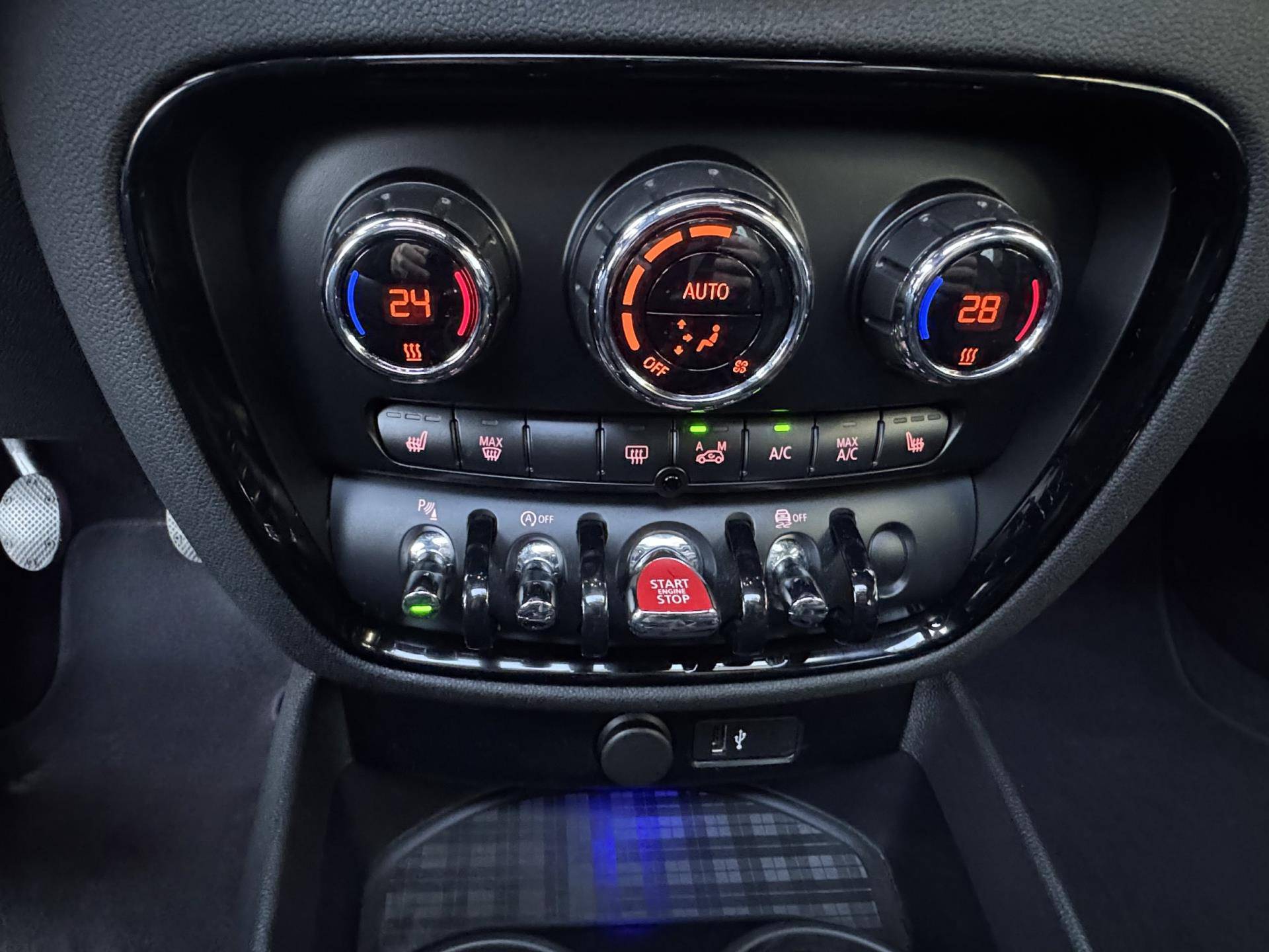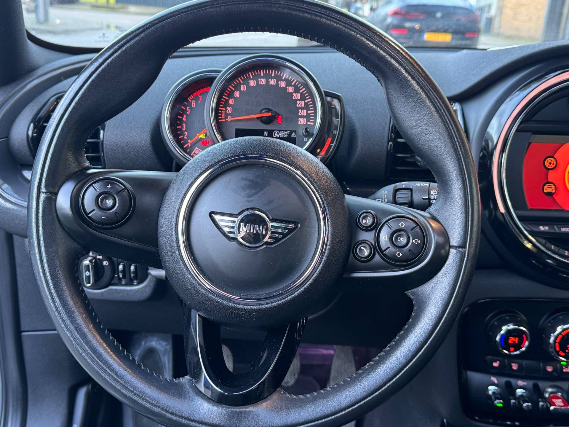 Het uitgebreide audiosysteem met bluetooth en usb biedt toegang tot online muziek en maakt opladen eenvoudig. De achteropkomend-verkeer-waarschuwing verhoogt de veiligheid tijdens elke rit. Automatische airconditioning houdt het binnenklimaat aangenaam. Parkeersensoren helpen u nauwkeurig en schadevrij manoeuvreren, terwijl automatische verlichting en een regensensor zorgen dat de auto zelf reageert op de omstandigheden. Met een navigatiesysteem, sportstuur, keyless entry, buitentemperatuurmeter, automatisch dimmende binnenspiegel en isofix is deze Mini volledig uitgerust.