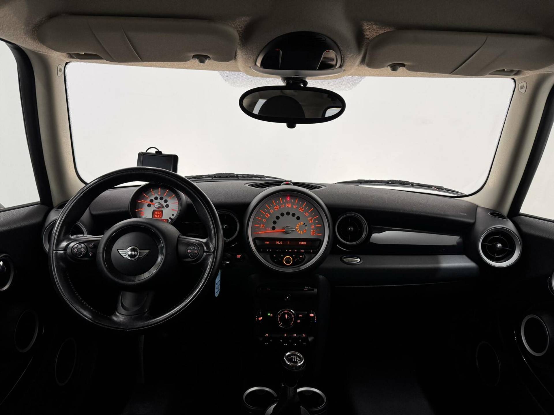 Een heerlijke egale snelheid? Even de cruise control inschakelen! Natuurlijk is er in deze auto airconditioning aanwezig. De uitrusting van deze Mini is met navigatiesysteem, buitentemperatuurmeter, lederen stuur en centrale deurvergrendeling met afstandsbediening behoorlijk compleet.