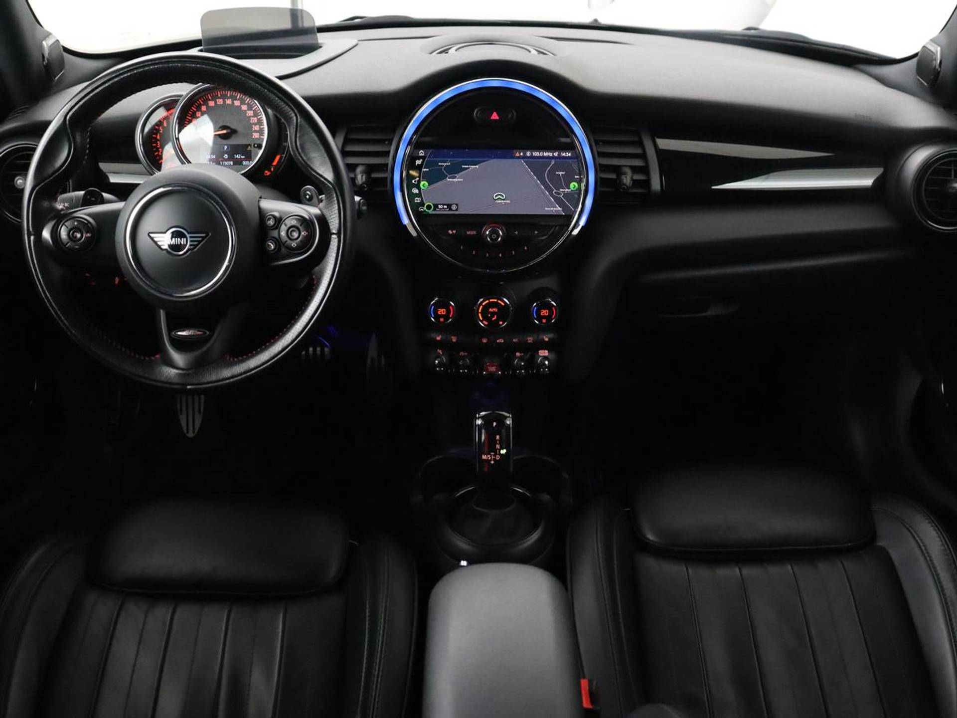 Connected Services zorgen ervoor dat de belangrijkste functies en data van de auto altijd en overal te checken zijn. Gewoon via de app op de smartphone. Topprestaties in muziek en geluid? Dat is bijgeleverd in de vorm van het high performance audiosysteem! Onderweg uw smartphone opladen zonder gedoe met stekkers en kabels? Dat kan, met de draadloze oplaadmogelijkheid voor telefoons. Aan boord van deze Mini Cooper S is een achteropkomend verkeer waarschuwing voor extra veiligheid. In een auto als deze kunt u niet zonder automatische airconditioning, zodat de temperatuur altijd goed is. Wat u ook in deze auto kunt vinden zijn dashboard met spraakbediening, navigatiesysteem met harde schijf, sportstuur met schakelpaddels, parkeersensoren voor en achter, regensensor en cruise control.