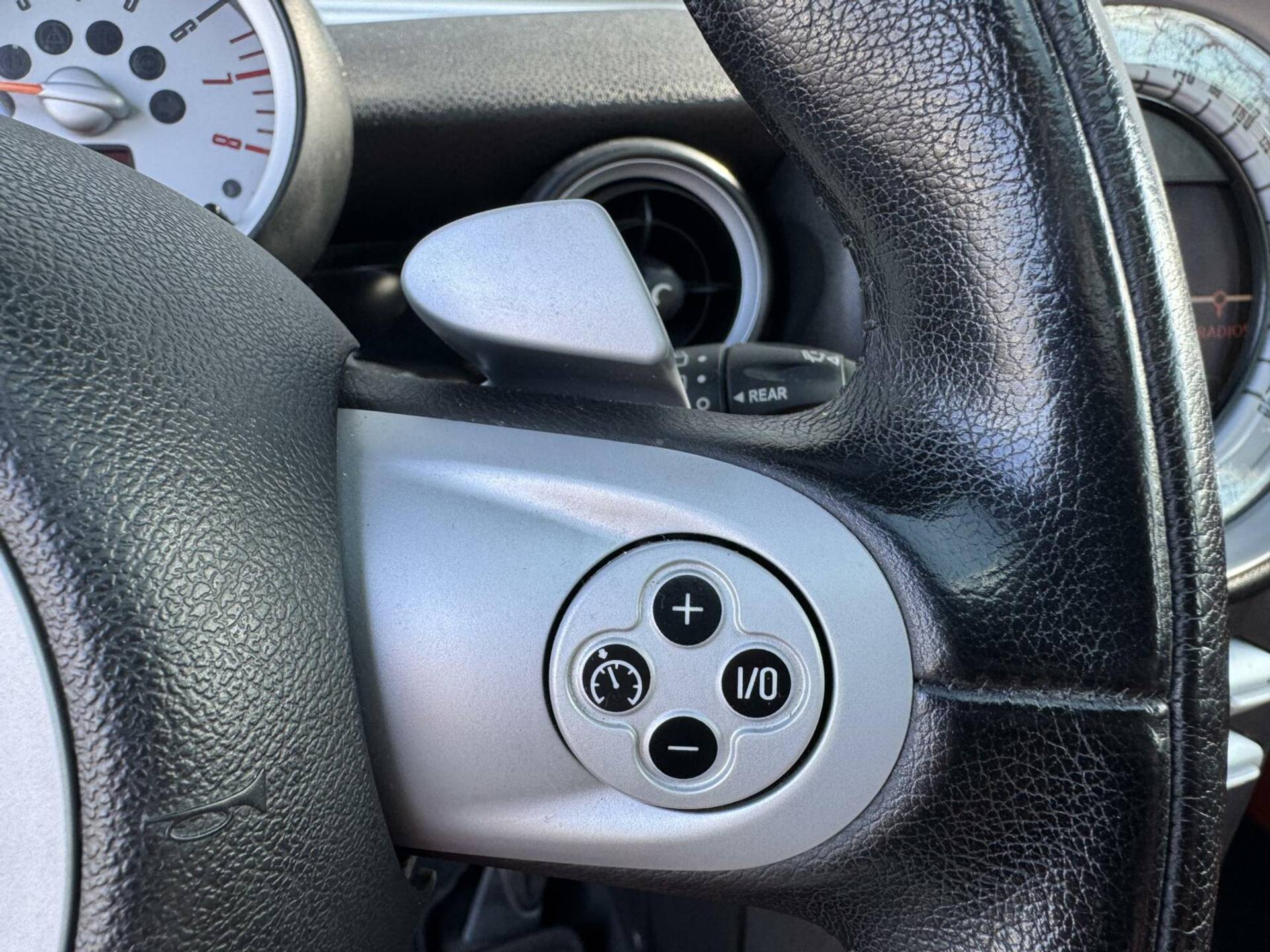 Of het buiten nu warm is of koud, dankzij automatische airconditioning is het binnen altijd behaaglijk. Alle audioknoppen letterlijk onder handbereik: dat kan met de audiobediening op het stuur. Boem is ho? Niet bij deze Mini Mini. De piepjes van de parkeersensoren waarschuwen je op tijd voor obstakels. Kleine ritjes, grote reizen - altijd een relaxte aankomst dankzij de cruise control. Met buitentemperatuurmeter, lederen stuur, isofix-aansluiting, centrale deurvergrendeling met afstandsbediening en boordcomputer is deze Mini helemaal compleet.
