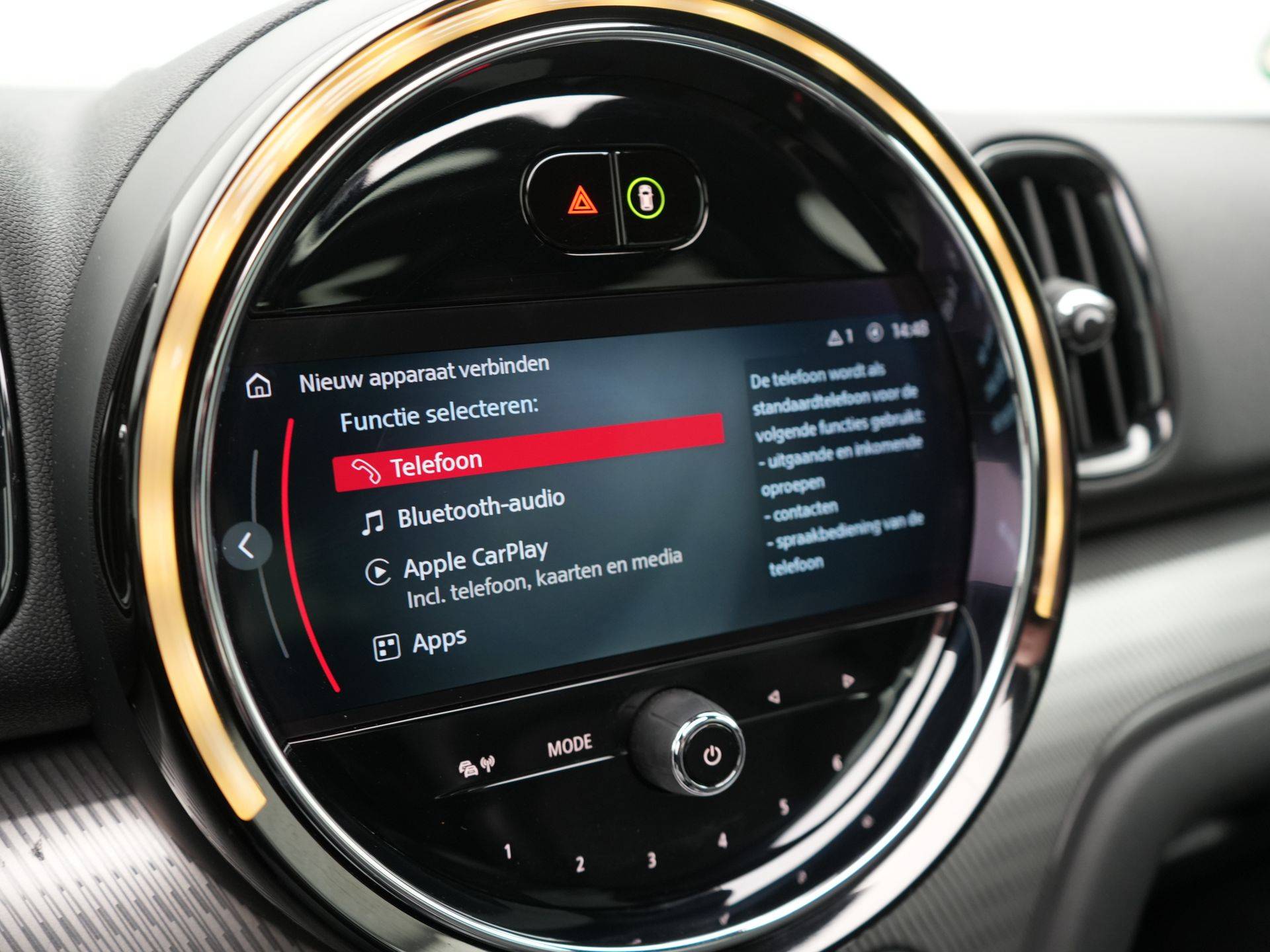 Met de achteruitrijcamera ziet u wat er achter de auto gebeurt. Zo rijdt u moeiteloos achteruit. Adaptive cruise control houdt de ingestelde snelheid vast en houdt afstand tot het voertuig voor u. De ingebouwde Connected Services vertellen u via de app alles over de status van de auto. Locatie, onderhoudsstatus, brandstofpeil en nog veel meer! Klik de smartphone in de houder en de draadloze telefoonlader zorgt voor een volle accu. Het luxeniveau in deze MINI is niet alleen gericht op comfort, maar ook op uw veiligheid. Tal van sensoren helpen u om de omgeving in de gaten te houden. De automatisch inschakelbare verlichting zorgt dat automatisch de verlichting wordt ingeschakeld als het donker wordt, wat bijvoorbeeld in tunnels erg handig is. En de regensensor zet de ruitenwissers aan zonder dat u eraan hoeft te denken. De uitrusting van deze MINI is met navigatiesysteem, WIFI-hotspot, DAB ontvangst, sportstuurwiel, keyless entry en airconditioning behoorlijk compleet.