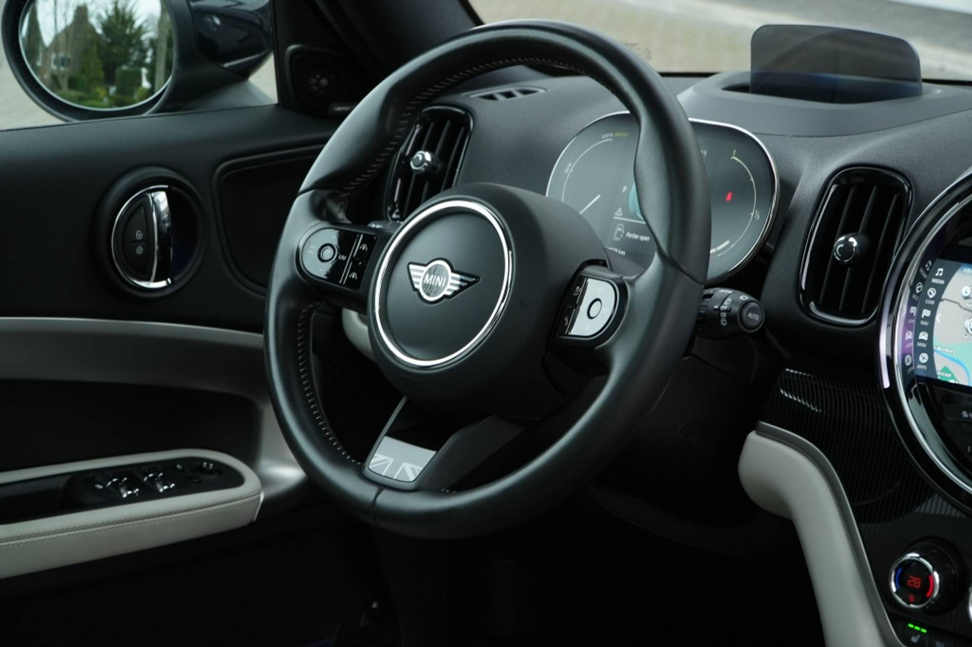Dankzij keyless entry heeft u geen gedoe meer met het zoeken naar uw sleutels – open en vergrendel uw Mini Countryman met gemak en elegantie. De adaptieve cruise control met Stop&Go functie zorgt voor een soepele en veilige rijervaring, terwijl u ontspannen kunt genieten van uw reis. De lederen bekleding voegt een vleugje luxe toe aan het interieur, terwijl de lichtmetalen velgen van 19" de sportieve uitstraling van deze SUV versterken.