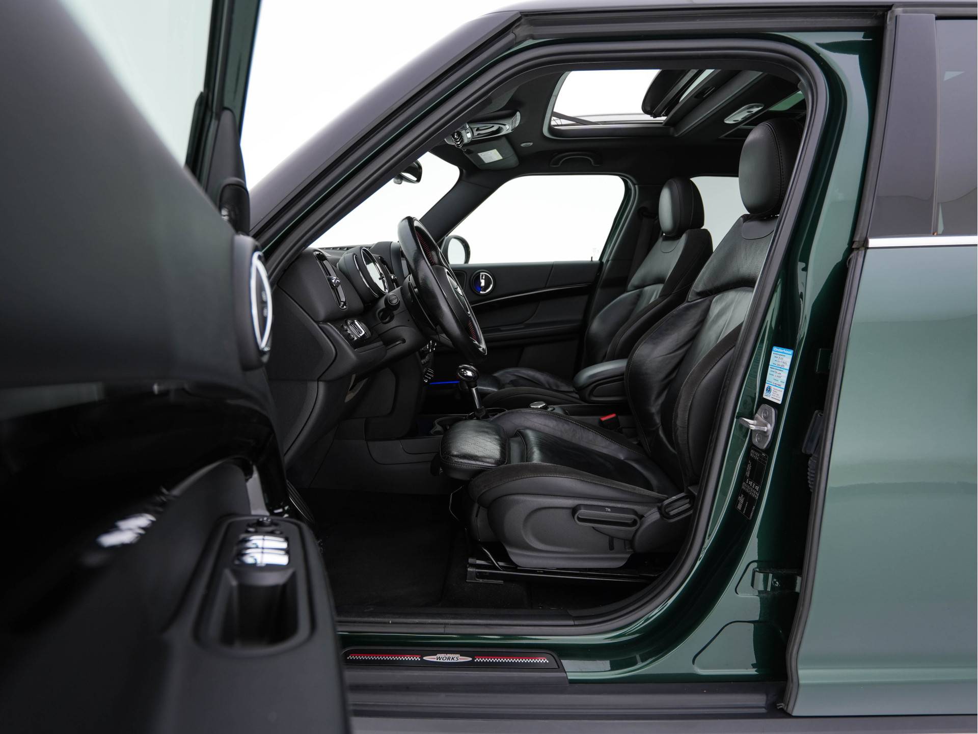 ⭐ MINI Countryman 2.0 Cooper SD Chili JCW Automaat – in British Racing Green Metallic met zwart dak en Carbon Black Leder/Alcantara interieur | Sportief. Premium. Compact SUV.