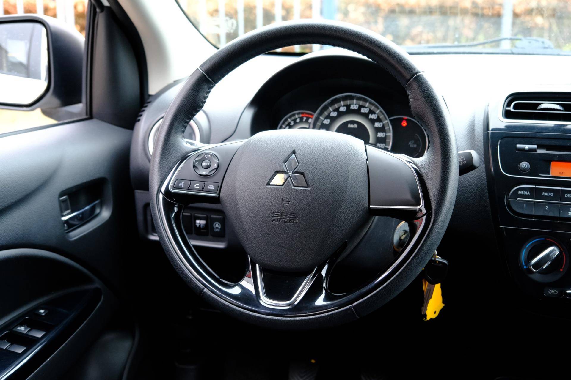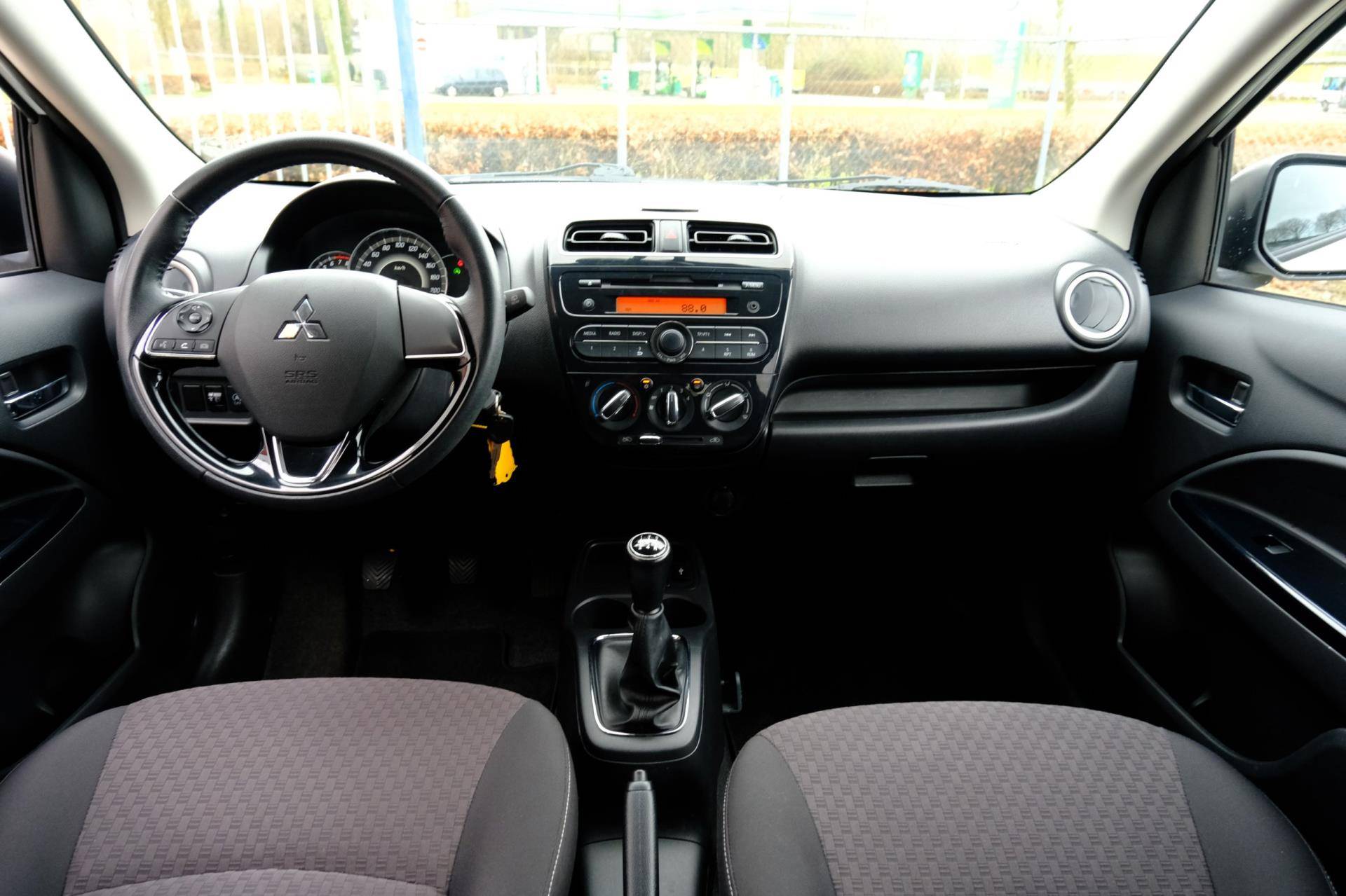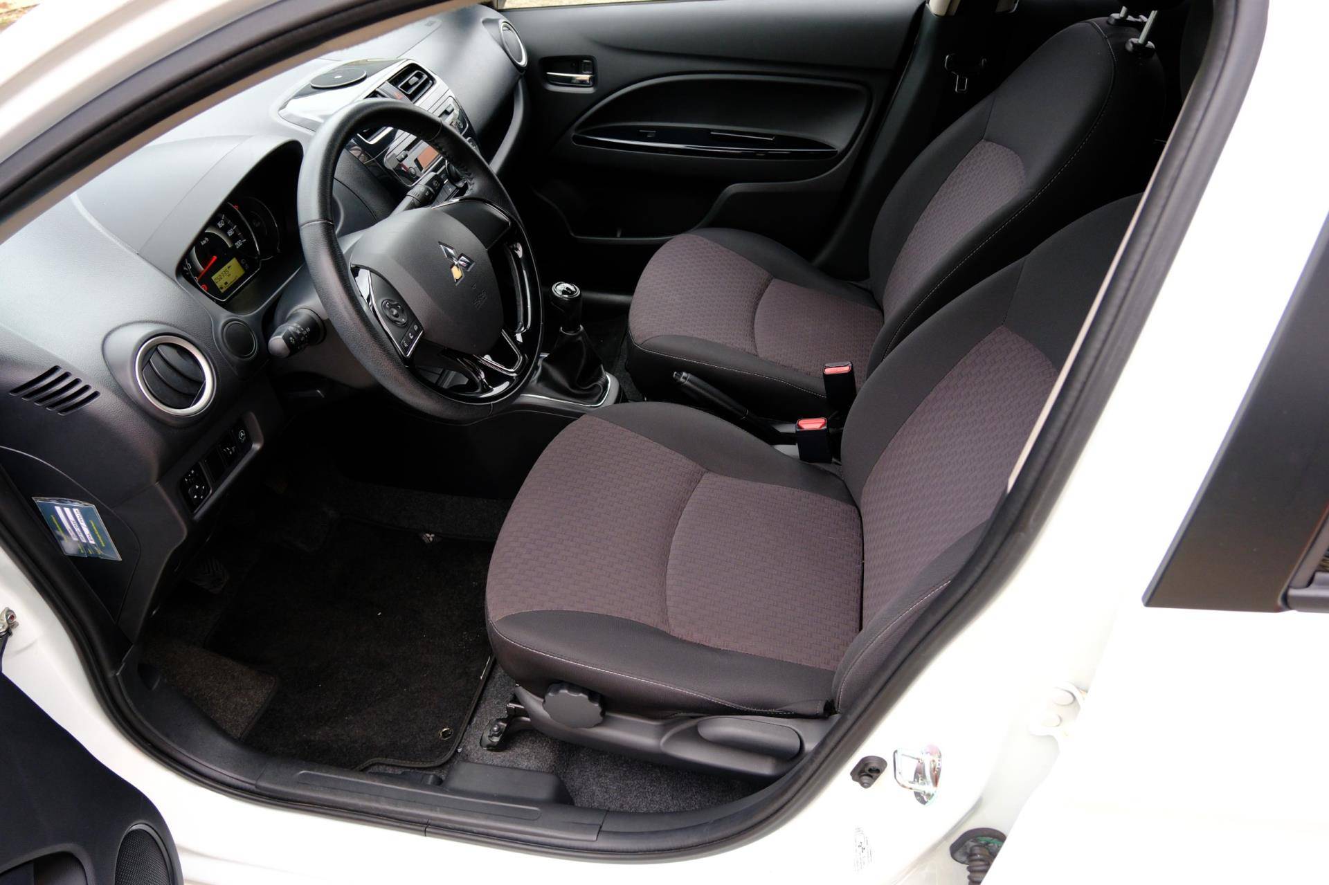 Krachtig in techniek, groot in comfort en prestaties: Mitsubishi. Drive your ambition. De aandrijving van deze Mitsubishi wordt verzorgd door een driecilinder motor en een handgeschakelde versnellingsbak. Tot de voorzieningen van deze auto behoren 14 inch lichtmetalen velgen, warmtewerend glas, in hoogte verstelbare passagiersstoel, in delen neerklapbare achterbank, LED-achterlichten en snelheidsafhankelijke stuurbekrachtiging.