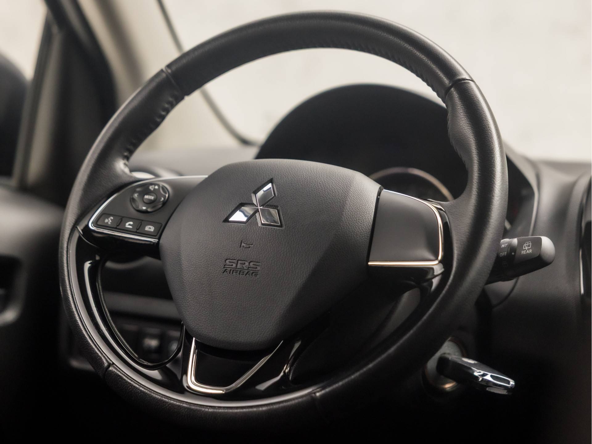De achteropkomend verkeer waarschuwing bewaakt de afstand tot achterliggers en geeft een signaal als er te weinig ruimte is. Veiligheid en gemak zijn er in alle opzichten. Neem bijvoorbeeld de audiobediening op het stuur. Liever gepiep dan gekraak? Dan zult u blij zijn met de aanwezige parkeersensoren! De elektronische systemen in deze Mitsubishi helpen u actief om comfortabeler te rijden. Een automatisch inschakelbare verlichting en een regensensor houden de omstandigheden onderweg in de gaten. Natuurlijk heeft deze auto ook airconditioning. En deze auto heeft ook lederen stuur, isofix-aansluiting, centrale deurvergrendeling met afstandsbediening, boordcomputer en lederen versnellingspook als standaard uitrusting.