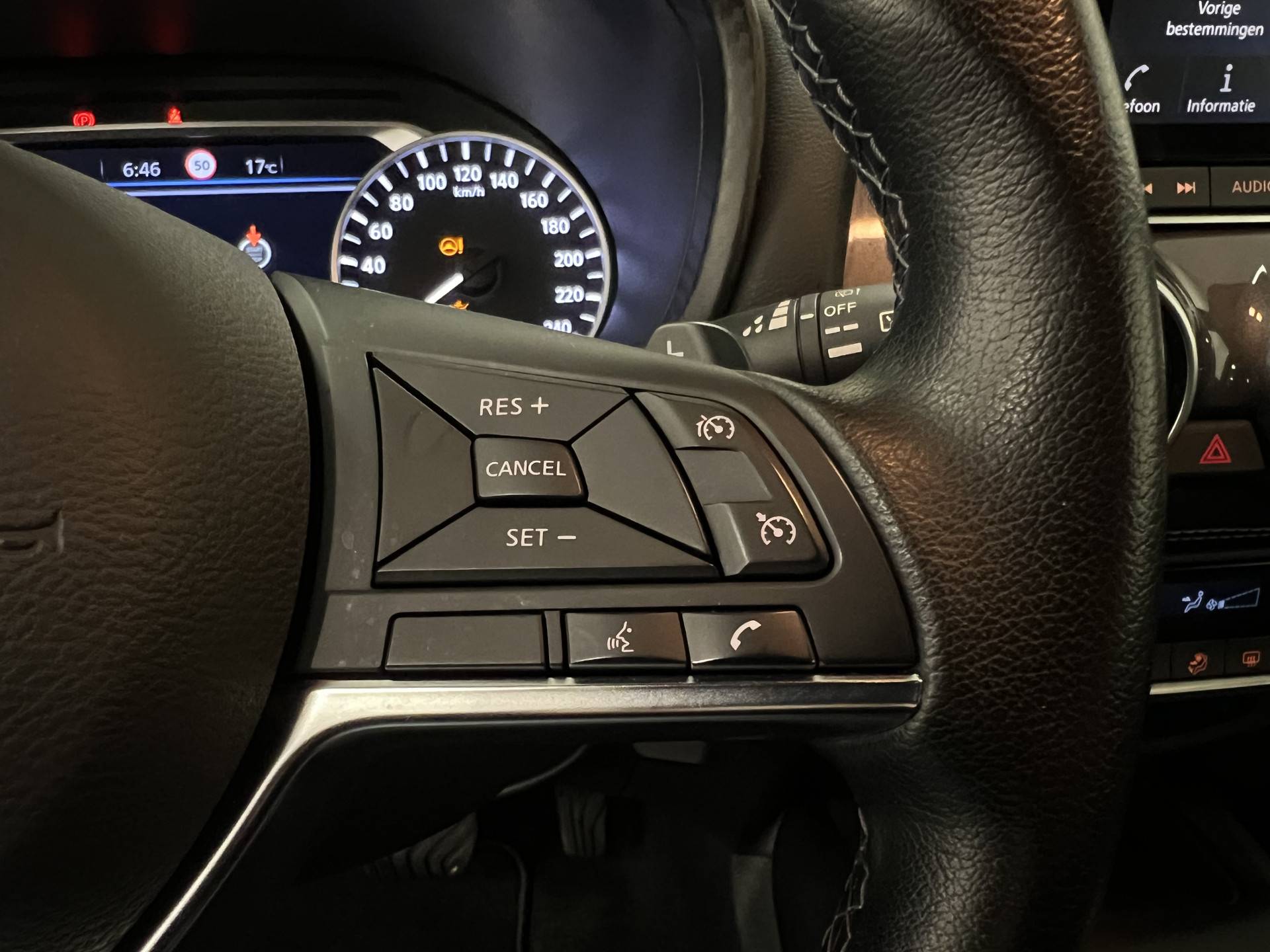 Het personaliseren van uw cockpitinterface is mogelijk met het digitale dashboard in deze auto. Zelfs een kleine aanrijding kan flinke kosten veroorzaken. Gelukkig laat de achteruitrijcamera precies zien wat er zich achter de auto bevindt en geeft een waarschuwingssignaal. U weet altijd hoe de auto eraan toe is dankzij Connected Services. Ook handig voor de garage en de wegenwacht. Even de app uitlezen en klaar! Met spraakbediening of de knoppen op het stuur regelt u het audiosysteem en het full map navigatiesysteem, terwijl u uw blik op de weg gericht houdt. De audio-installatie biedt daarbij glasheldere ontvangst dankzij DAB-ontvangst. Op een drukke weg heeft u soms ogen in uw achterhoofd nodig. De sensoren aan de achterzijde nemen die functie over en geven een achteropkomend verkeer waarschuwing als een achterligger te dicht op u zit. De Nissan is standaard voorzien van: WIFI-hotspot, automatische airconditioning, schakelpaddles aan het stuur, regensensor, cruise control en keyless entry.