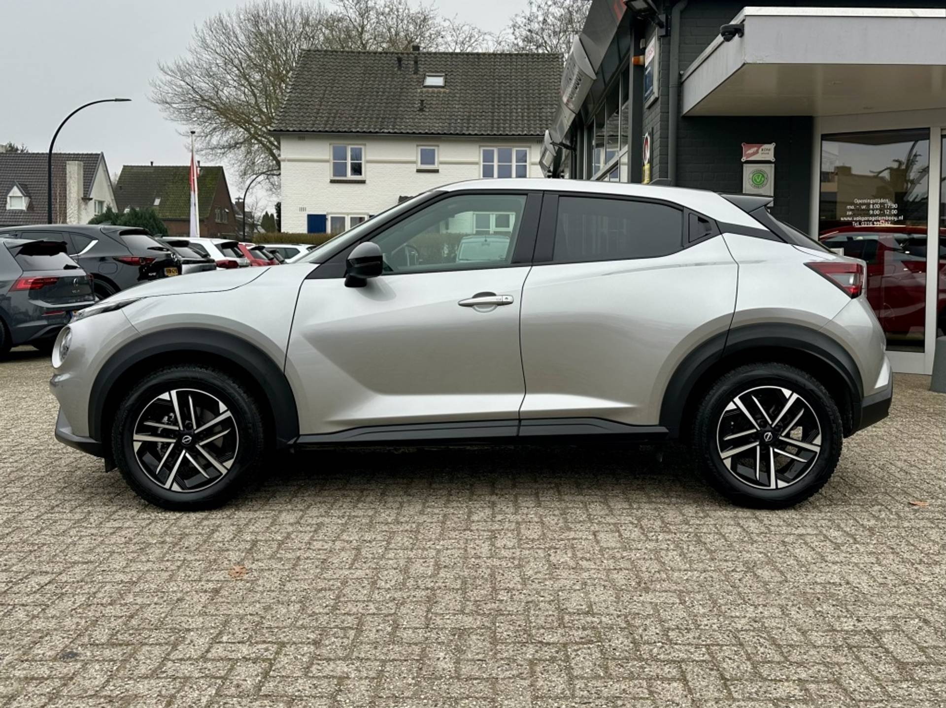 Strak inparkeren wordt een fluitje van een cent door de achteruitrijcamera. De ingebouwde Connected Services vertellen je via de app alles over de status van de auto. Locatie, onderhoudsstatus, brandstofpeil en nog veel meer! Laat je onderweg niet afleiden, de bediening van het audio-installatiesysteem en ook het navigatiesysteem gaat met knoppen op het stuur en met spraak. Natuurlijk is de audio-installatie voorzien van DAB-ontvangst. Deze Nissan Juke is een complete auto anno nu, en dat merk je. Bijvoorbeeld door de aanwezige draadloze oplaadmogelijkheid voor telefoons. De sensoren van de achteropkomend verkeer waarschuwing houden zicht op de dode hoeken achter je. Te weinig afstand tot de achterligger? Het systeem geeft direct een signaal. De uitrusting van deze auto is met WIFI-hotspot, automatische airconditioning, regensensor, cruise control, keyless entry en automatisch dimmende spiegels behoorlijk compleet.