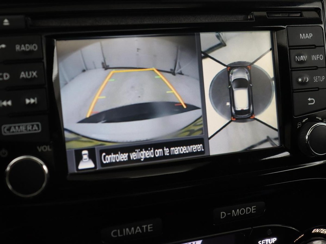 De functie van de 360 graden camera in deze auto is om u een totaaloverzicht van de omgeving te geven, ongeacht hoe smal de straat of parkeerplek is. U weet altijd waar u moet zijn, dankzij het navigatiesysteem. Dankzij automatische airconditioning is het interieur behaaglijk warm of verfrissend koel. Alle belangrijke audiofuncties zijn regelbaar zonder het stuur los te laten. De knoppen bevinden zich onder uw vingers. Natuurlijk is een complete auto als deze ook voorzien van sensoren die de omgeving in de gaten houden. Deze Nissan heeft niet alleen een automatisch inschakelbare verlichting aan boord, maar ook een regensensor. En deze auto heeft ook cruise control, keyless entry, lederen stuur, centrale deurvergrendeling met afstandsbediening, boordcomputer en lederen versnellingspook als standaard uitrusting.
