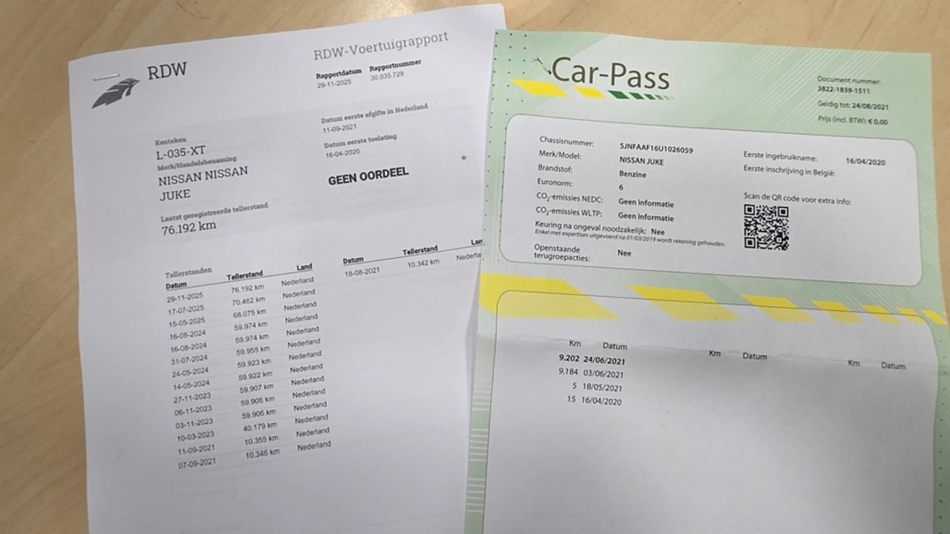 ✓ APK bij aflevering: J