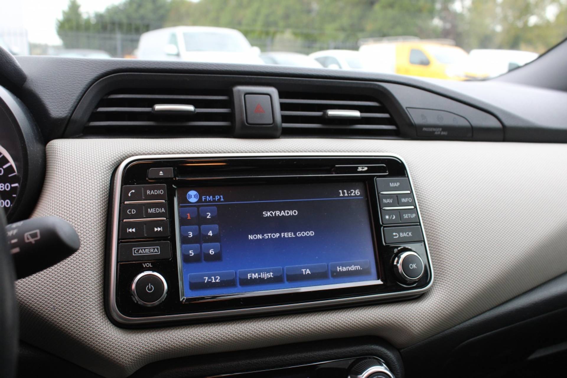 Met de knoppen op het stuur regelt u het audiosysteem en het navigatiesysteem, terwijl u uw blik op de weg gericht houdt. De audio-installatie biedt daarbij glasheldere ontvangst dankzij DAB-ontvangst. Het comfort wordt verhoogd door de aanwezige automatische airconditioning. De auto neemt u werk uit handen doordat hij zelf veel in de gaten houdt. Een regensensor en een automatisch inschakelbare verlichting nemen waar wanneer de ruitenwissers en het licht aan moeten. Op de plaats van bestemming helpen de parkeersensoren achter u om gemakkelijk en schadevrij in te parkeren. Aan boord van deze Nissan Micra is een achteropkomend verkeer waarschuwing voor extra veiligheid. De cruise control zorgt voor een mooie, gelijkmatige snelheid die u zelf instelt. Dat is relaxt! Extra opties op deze auto zijn: verstelbaar stuur, boordcomputer en centrale deurvergrendeling met afstandsbediening.