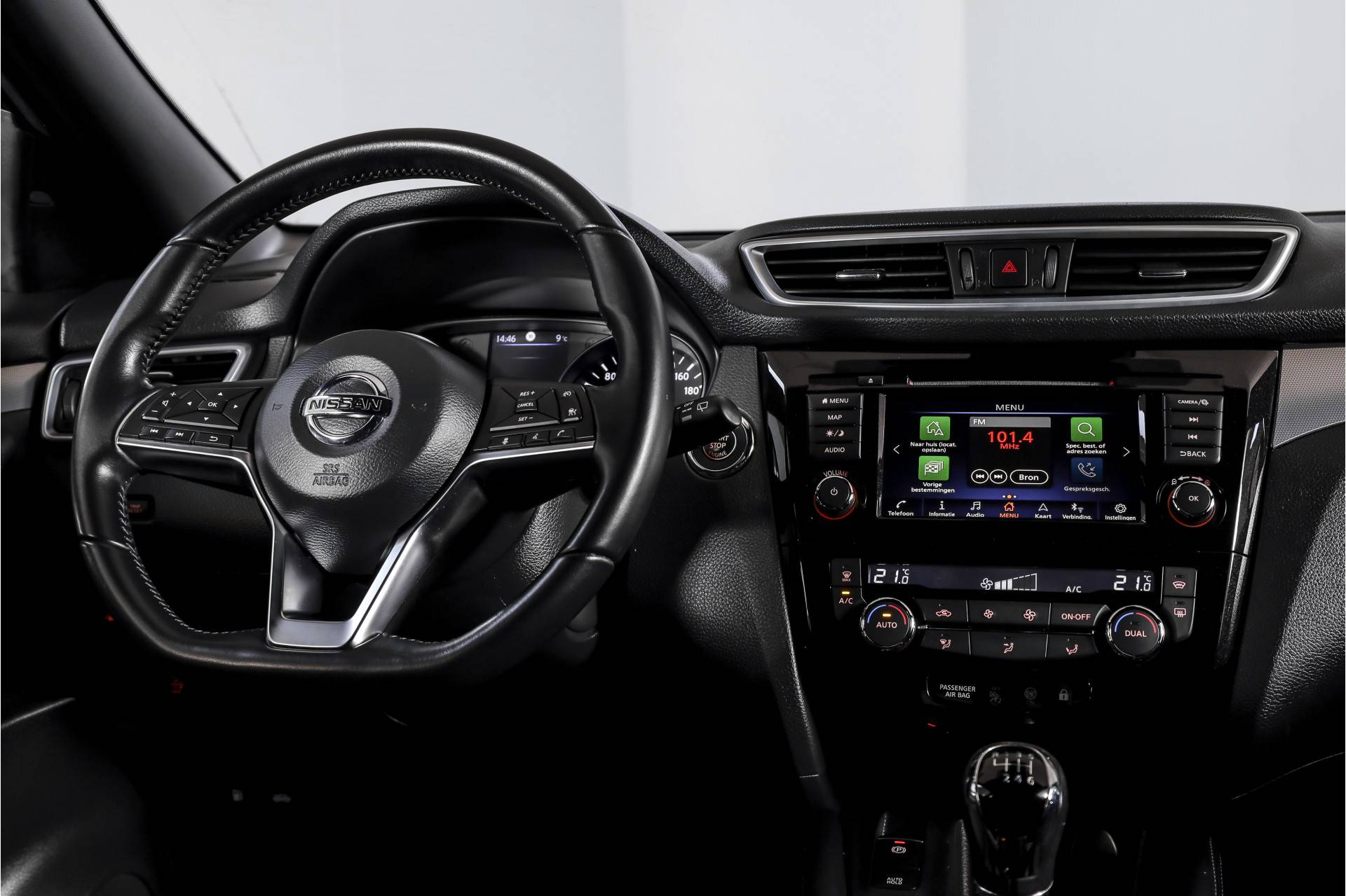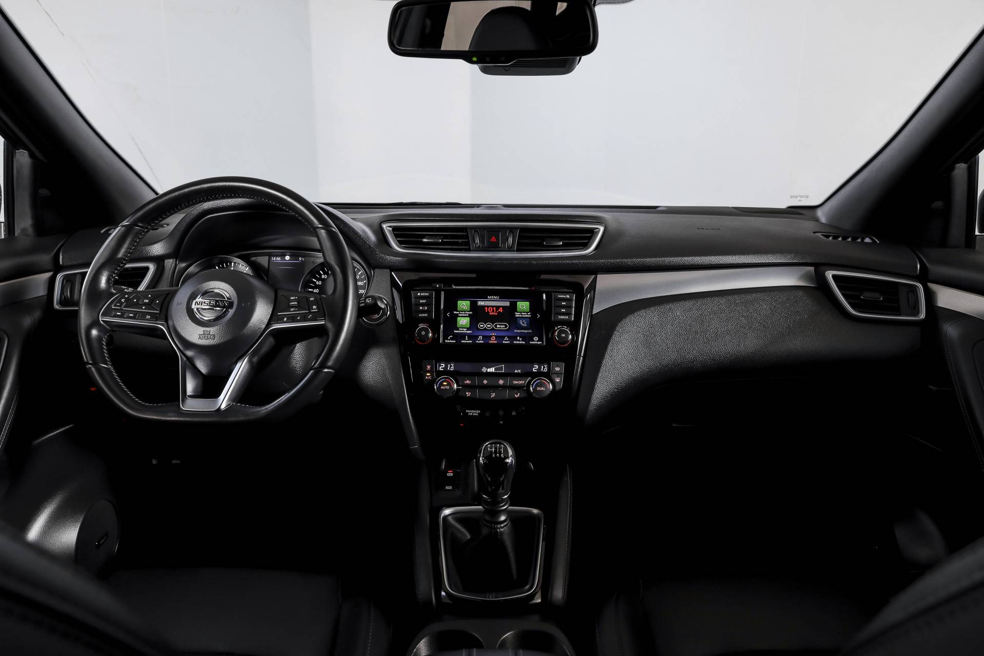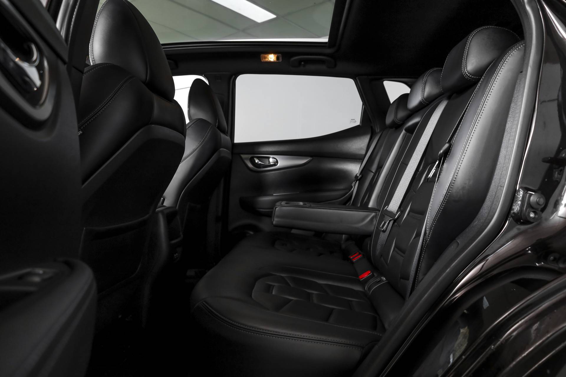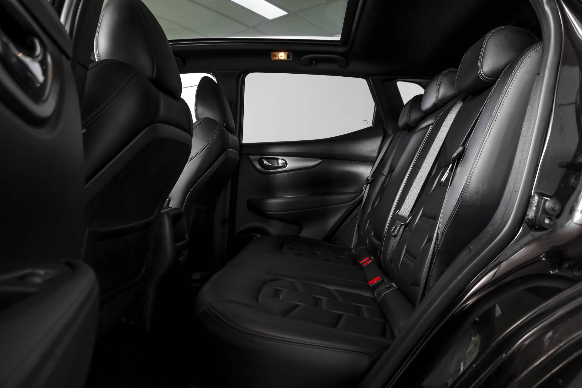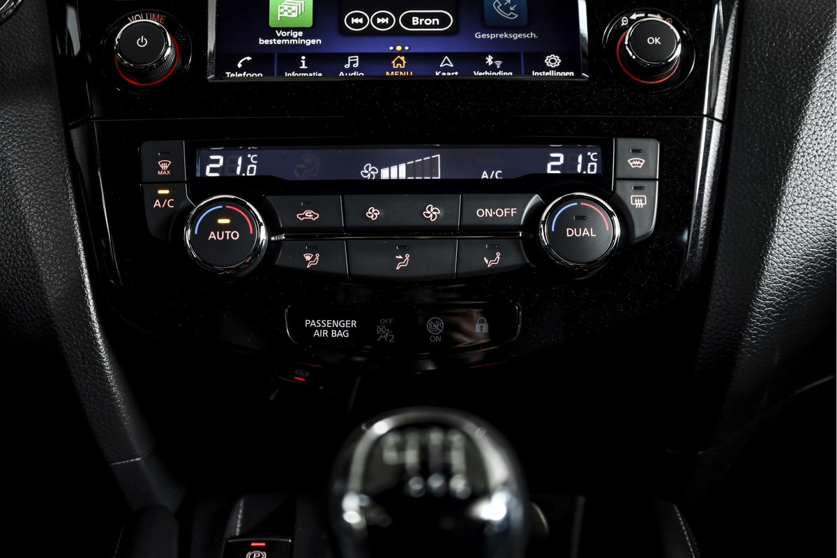 Tijdens langere ritten biedt deze Qashqai veel comfort. De adaptieve cruise control past automatisch de snelheid aan het verkeer aan. De elektrisch verstelbare bestuurdersstoel met geheugen en de elektrisch verstelbare passagiersstoel maken het gemakkelijk om een fijne zitpositie te vinden. Daarnaast zijn de voorstoelen verwarmd en is de auto uitgerust met een verwarmde voorruit, wat vooral in koude periodes erg prettig is. De lederen bekleding geeft het interieur een verzorgde en luxe uitstraling.