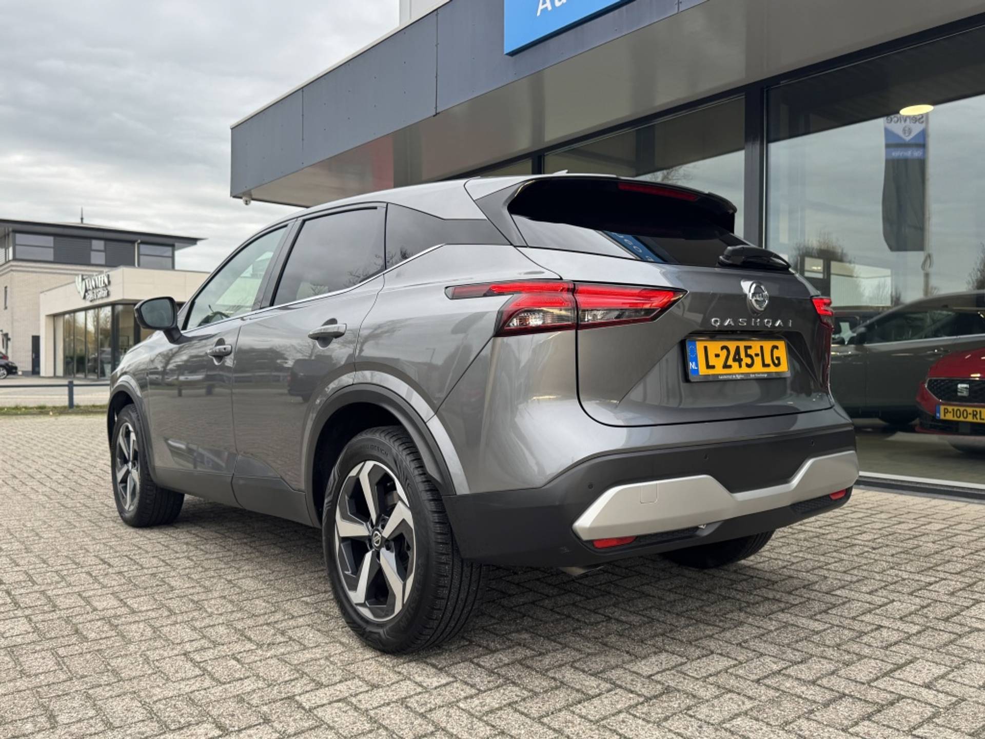 Het exterieur van de Nissan Qashqai valt op met zijn metallic grijze lak. De strakke lijnen en moderne uitstraling maken deze SUV een echte blikvanger op de weg. Daarnaast zorgen de LED koplampen niet alleen voor een moderne uitstraling, maar ook voor een uitstekende zichtbaarheid op de weg.