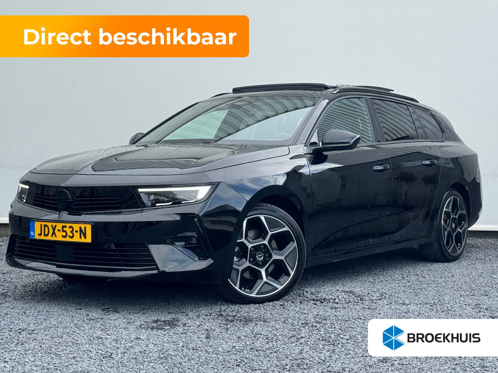 Opel ziet al jaren kans om een brede groep klanten aan te spreken zonder concessies te doen aan vernieuwing en vooruitstrevende keuzes. De kreet 'De toekomst is voor iedereen' gaat meer dan ooit op. Het is een nieuwe auto, hij is nu uit voorraad leverbaar. Met zijn benzinemotor en automatische transmissie is dit een prima auto voor nog vele kilometers. Gemak is alles. Daarom heeft deze auto een elektrisch bediend glazen panorama dak en een elektrisch bedienbare achterklep. Comfort en een gevoel van luxe: dat geeft de heerlijke stoelverwarming. Beknibbelen op comfort is er niet bij met deze Opel Astra Sports Tourer. Hij is zelfs voorzien van een verwarmd stuurwiel! Ook 18 inch lichtmetalen velgen, LED koplampen, extra getint glas, in delen neerklapbare achterbank en verstelbare lendensteunen zijn aan boord. Het digitale dashboard is qua lay-out en zichtbaarheid superslim ingedeeld. Alle functies in één keer in beeld! Dankzij de 360 graden camera kunt u zowel de voor- als achterzijde van het voertuig in het oog houden, wat bijdraagt aan een veiligere rijervaring. Adaptive cruise control houdt de ingestelde snelheid vast en houdt afstand tot het voertuig voor u. Een veiligheidsverhogende optie is de ingebouwde spraakbediening. Terwijl u uw ogen op de weg houdt, bedient u de auto met uw stem. Wegwijs in elke wijk, stad of reisbestemming? Daarvoor zorgt het navigatiesysteem! Wat u ook in deze auto kunt vinden zijn electronic climate control, draadloos opladen, DAB ontvangst, regensensor, keyless entry en automatisch dimmende binnenspiegel. Elektronische veiligheidsvoorzieningen helpen u onderweg om de situatie op de weg te beoordelen. Deze systemen waarschuwen u als er een riskante situatie ontstaat, en kunnen in bepaalde gevallen ook zelf ingrijpen. Snelheid, brandstof, navigatie... de head-up display laat het allemaal zien, recht in het zichtveld van de weg. Onderweg zorgt verkeersborddetectie ervoor dat u geen waarschuwingsbord mist. Indien u onbedoeld de rijstrook lijkt te verlaten, reageert het Lane-keeping systeem meteen en corrigeert. Bovenop deze veiligheidsfeatures heeft deze Opel bovendien dodehoekdetectie, hill hold functie, vermoeidheidsherkenning, autonoom remsysteem en bandenspanningcontrolesysteem. Natuurlijk is dit een splinternieuwe auto en hij wordt dus geleverd met volledige fabrieksgarantie. Daarbij kunnen we u verschillende gunstige financieringsvormen aanbieden. We maken graag een afspraak met u.
