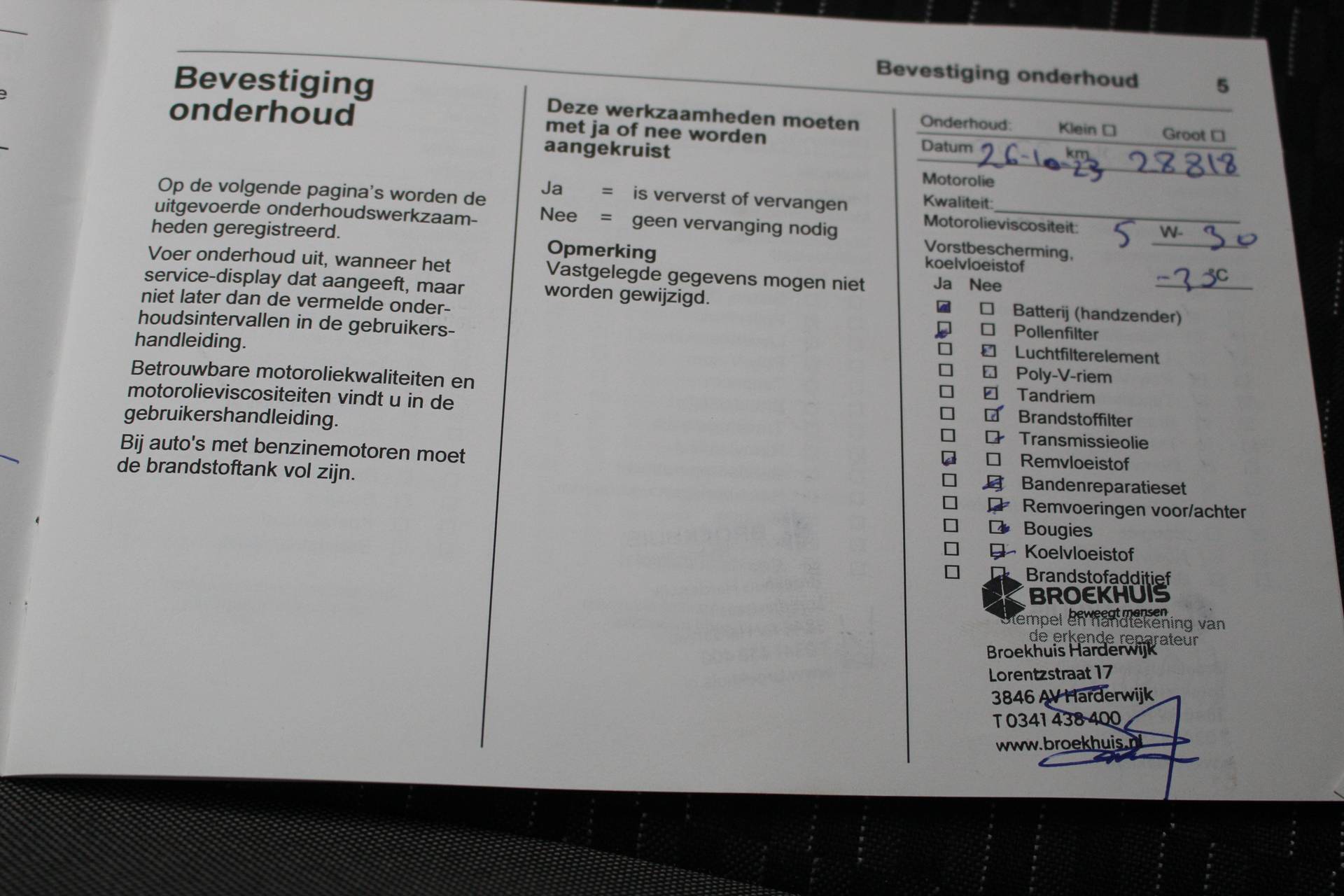 12 maanden BOVAG garantie, minimaal 6 maanden APK keuring, 24/7 pechhulp, halve tank brandstof, Broekhuis jaarbeurt, poetsen / reinigen in- en exterieur en controle volgens BOVAG 40 punten check (PW)