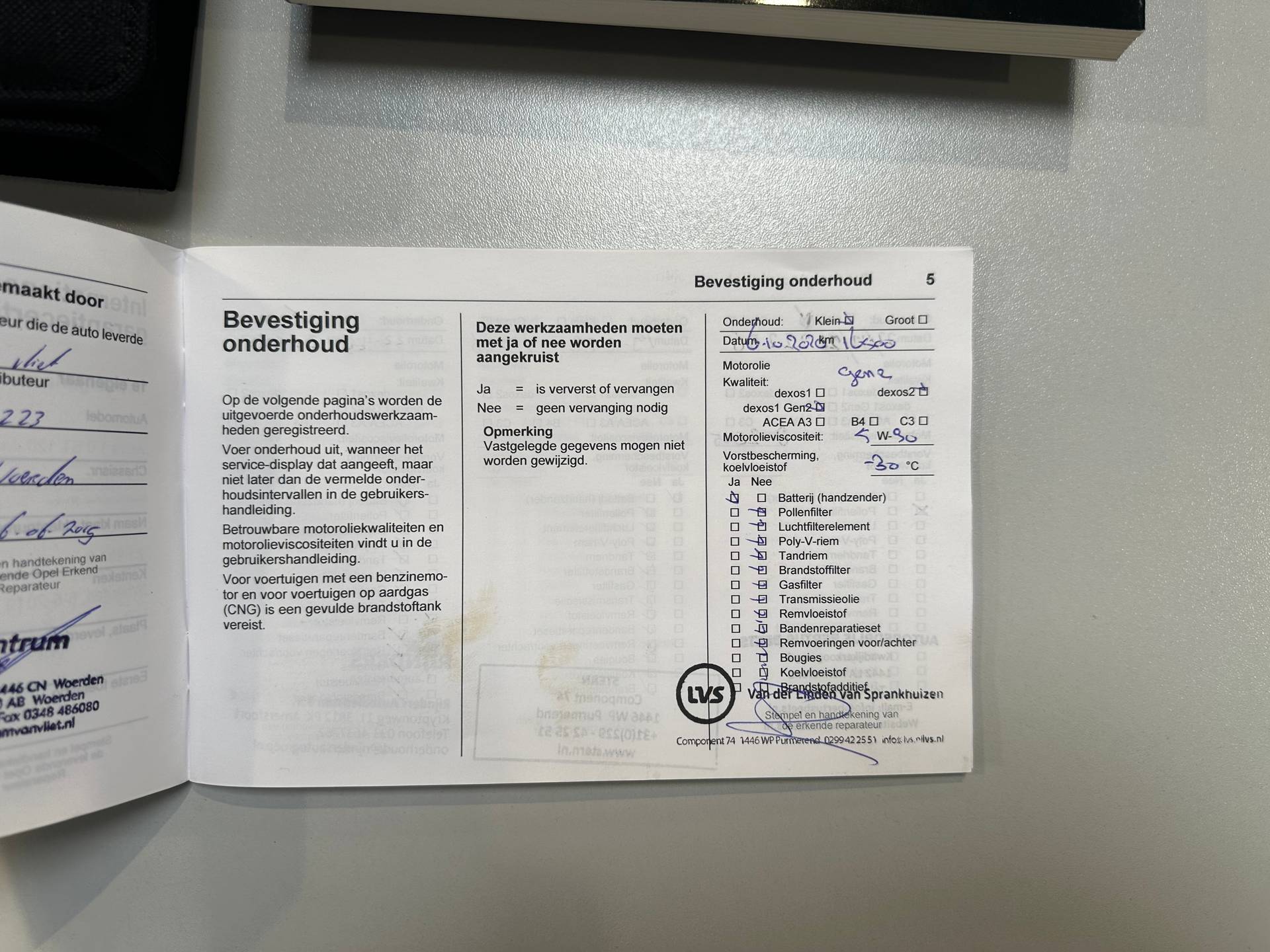 ✓ APK bij aflevering: J