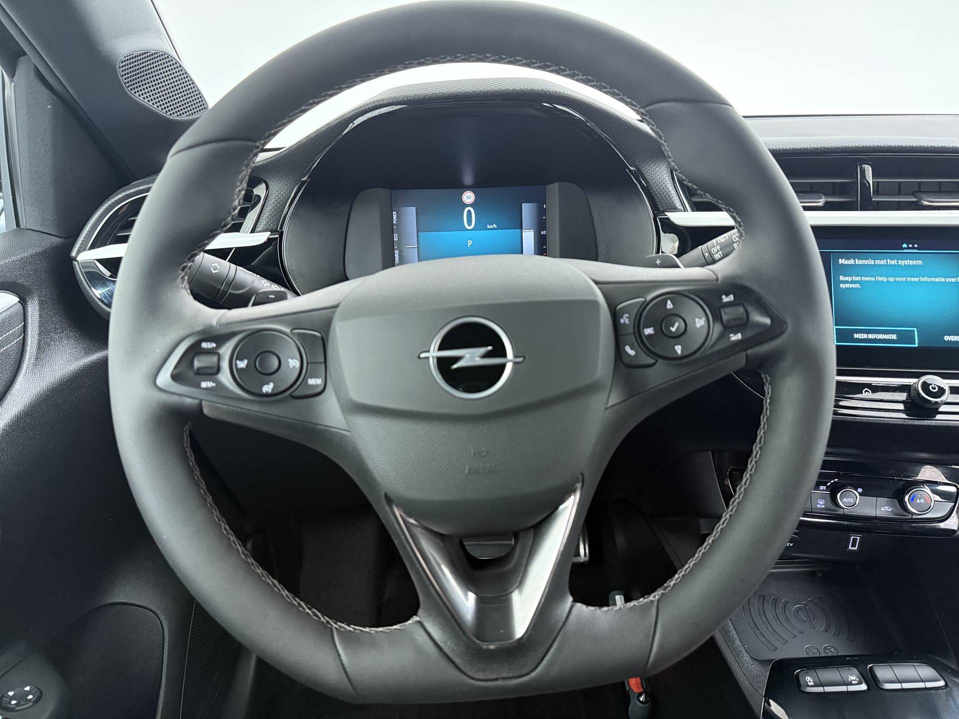 Deze Opel Corsa is van de jongste generatie. Prestaties, brandstofverbruik - alles helemaal van nu. Mét al wat kilometers op de teller. Een nieuw model, maar onder de nieuwprijs! Deze auto uit 2024 heeft nauwelijks gereden, met een tellerstand van slechts 13484 kilometer. De combinatie van een verbrandingsmotor en een elektromotor zorgt voor prima rij-eigenschappen en een laag brandstofverbruik. De sportstoelen geven u veel zitsteun. Bij de rijke uitrusting horen ook 16 inch lichtmetalen velgen, LED koplampen, extra getint glas, in delen neerklapbare achterbank, LED-achterlichten en snelheidsafhankelijke stuurbekrachtiging. Het digitale dashboard rekent mee, denkt mee en rijdt mee. Alle info overzichtelijk in beeld, overal. De achteruitrijcamera geeft u duidelijk zicht op de ruimte achter de auto. Via uw smartphone en Connected Services checkt u eenvoudig de belangrijke functies van de auto, overal en altijd. Het infotainmentaanbod is zeer uitgebreid. Ontspannen reizen doet u met behulp van het full map navigatiesysteem terwijl u muziek afspeelt via het audiosysteem met DAB-radio. Nooit meer een lege smartphone: de draadloze telefoonlader laadt onderweg bij - zonder snoertjes! Wat u ook in deze auto kunt vinden zijn electronic climate control, regensensor, cruise control, sportstuurwiel, keyless entry en centrale deurvergrendeling met afstandsbediening. In de Opel Corsa heeft uw veiligheid en die van uw omgeving prioriteit. In het instrumentarium kunt u bovendien de verkeersborden zien die u onderweg tegenkomt. Zo helpt deze Opel u om veiliger te rijden. Indien u onbedoeld de rijstrook lijkt te verlaten, reageert het Lane-keeping systeem meteen en corrigeert. Het systeem van forward collision warning, of in gewoon Nederlands 'botswaarschuwing', treedt in werking als de sensor te weinig afstand signaleert met een voor- of tegenligger. De veiligheid van deze auto wordt verder verhoogd door dodehoekdetectie, hill hold functie, vermoeidheidsherkenning en bandenspanningcontrolesysteem. Bel nu onze verkoopadviseur voor een proefrit!