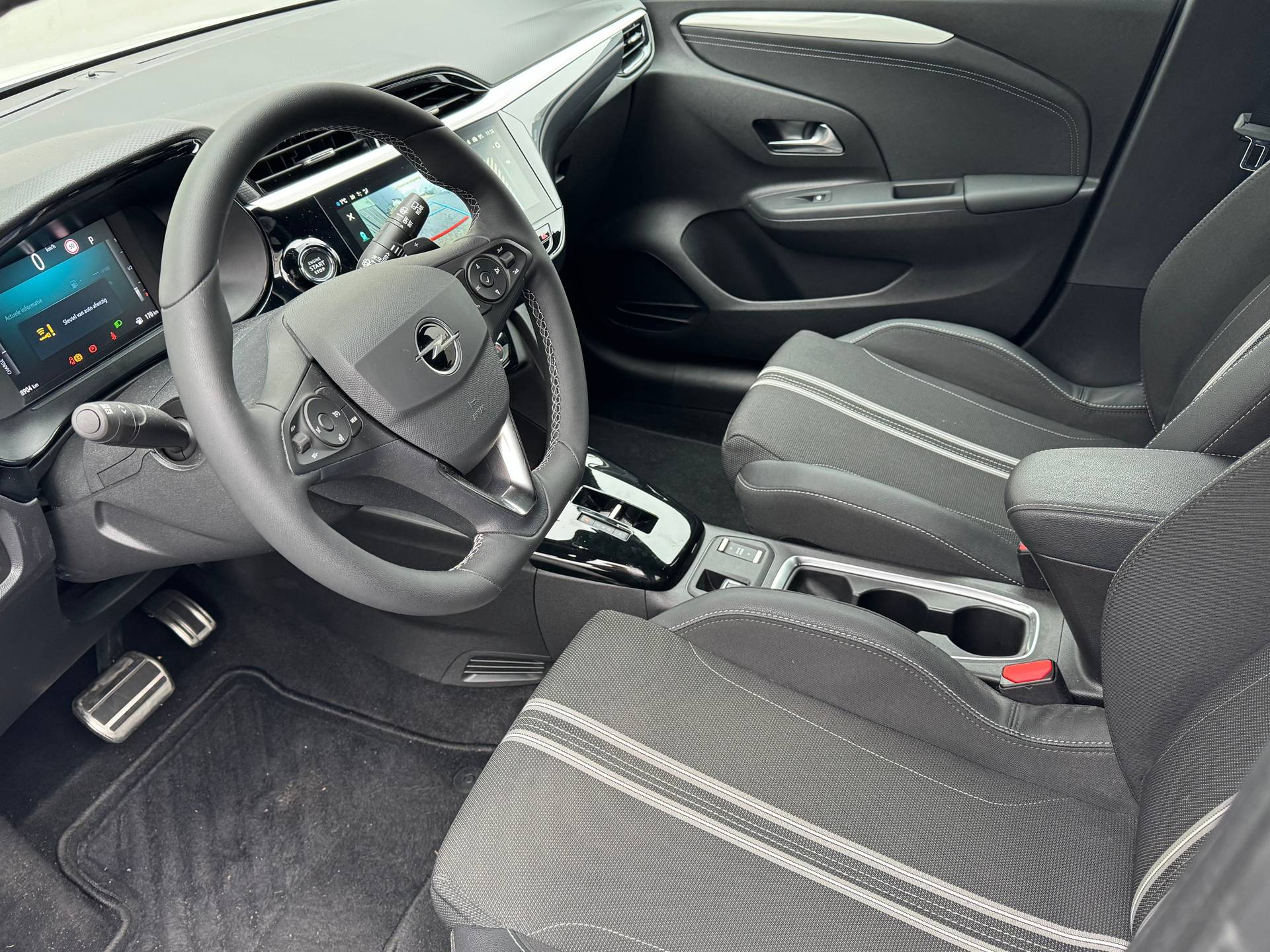 Het enige dat ouderwets is aan deze Opel, zijn kwaliteit en betrouwbaarheid. Techniek en prestaties zijn helemaal van morgen. Deze auto uit 2024 heeft nauwelijks gereden, met een tellerstand van slechts 8906 kilometer. Deze hybride auto beschikt over een verbrandingsmotor én een elektromotor. Daardoor rijdt de auto zeer comfortabel en is tegelijk zuinig in het verbruik. De strakke sportstoelen hebben niet alleen de looks, maar bewijzen ook hun functie als u wat meer vraagt in de uitdagende bochten. Ook 16 inch lichtmetalen velgen, LED koplampen, extra getint glas, in delen neerklapbare achterbank, LED-achterlichten en snelheidsafhankelijke stuurbekrachtiging horen tot de voorzieningen op deze auto. Alle ritinformatie en communicatie is gebundeld in één overzichtelijk digitale dashboard. De achteruitrijcamera vergemakkelijkt achteruit inparkeren. U ziet duidelijk wat er achter de auto gebeurt. Deze Opel Corsa is voorzien van remote services. Via uw smartphone bedient u diverse functies ook op afstand en krijgt u informatie over de status van uw auto. Naast de routeinformatie van het full map navigatiesysteem kunt u muziek via het audiosysteem ook online beluisteren via bluetooth. Deze Opel Corsa is een complete auto anno nu, en dat merk je. Bijvoorbeeld door de aanwezige draadloze oplaadmogelijkheid voor telefoons. Ook electronic climate control, DAB ontvangst, regensensor, cruise control, sportstuurwiel en keyless entry zijn aan boord. In de Opel Corsa heeft uw veiligheid en die van uw omgeving prioriteit. U rijdt ook veiliger omdat deze auto voor u de verkeersborden langs de weg kan lezen. De belangrijkste borden worden op uw instrumentarium geprojecteerd, zodat u ze niet kunt missen. Het Lane-keeping systeem zorgt voor een automatisch constante positie binnen de rijstrook. Afdwalen is uitgesloten. De forward collision warning geeft een botswaarschuwing als een aanrijding dreigt met een voorligger. Ook helpen het dodehoekdetectie, hill hold functie, vermoeidheidsherkenning en bandenspanningcontrolesysteem, uw rit tot een veilige rit te maken. Als u meer wilt weten over deze Opel, dan vertellen we u dat graag. Belt of mailt u ons vandaag nog?
