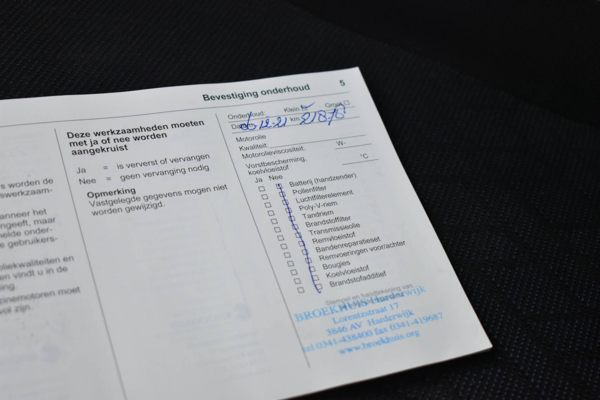 ✓ APK bij aflevering: J