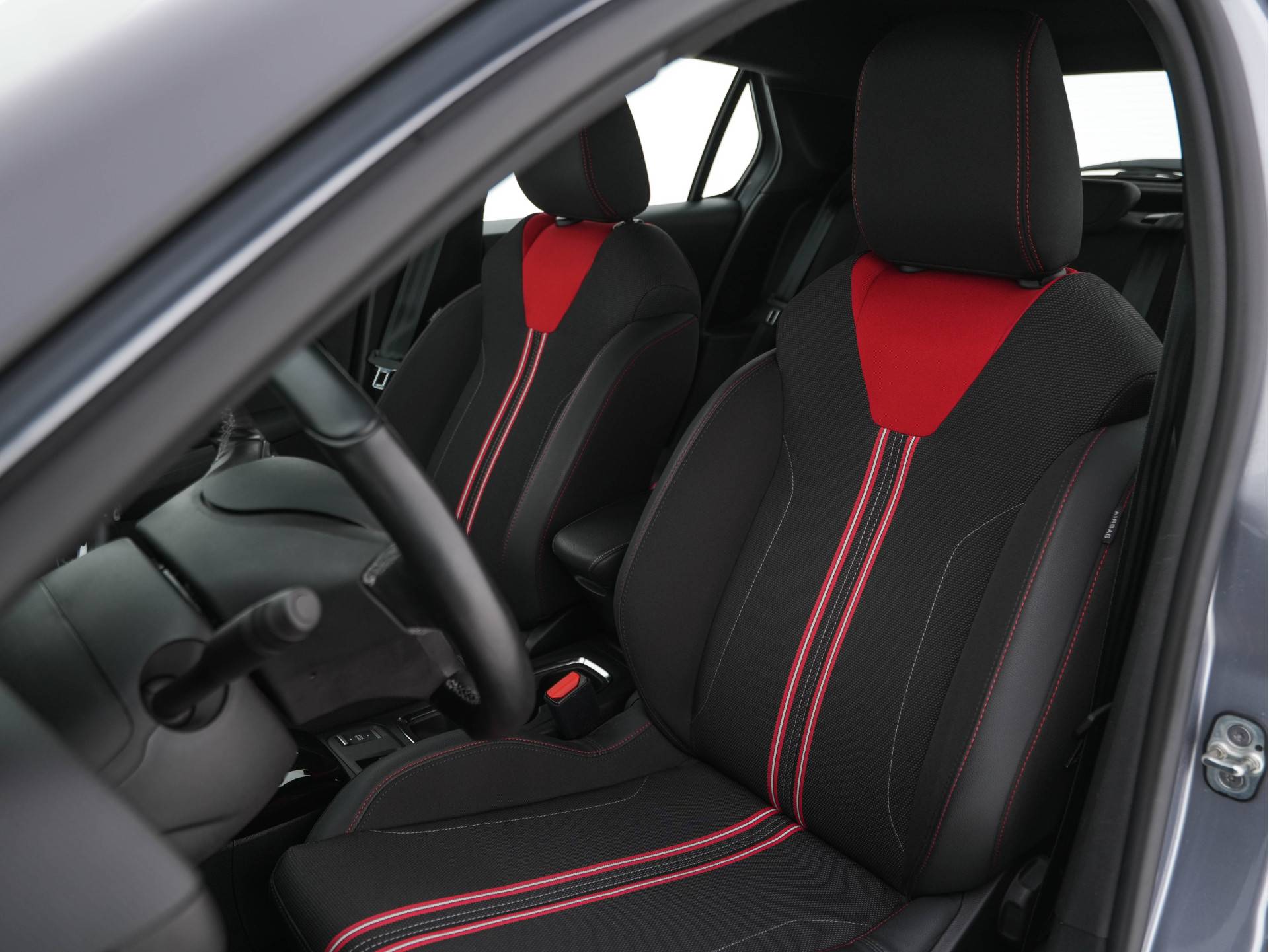 ✅ Leder-microfiber interieur “Tissu Banda” in zwart met rode band – luxe en sportief