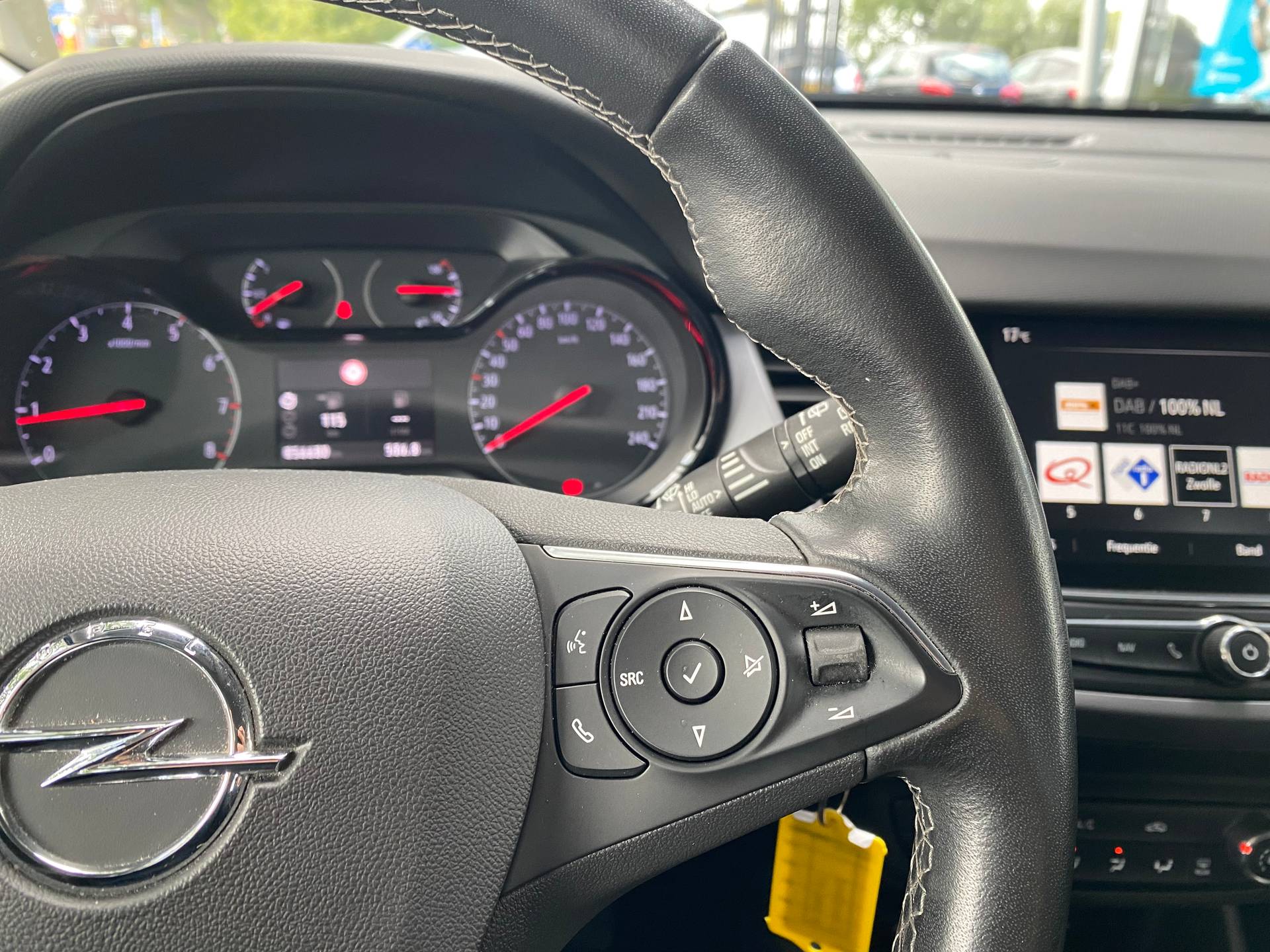Opel is al meer dan 120 jaar een van de populairste en succesvolste merken op de markt. En niet voor niets. In deze auto vindt u een benzinemotor en een handgeschakelde zesversnellingsbak. U wordt in deze auto ook getrakteerd op LED koplampen en in delen neerklapbare achterbank. Met een gerust hart achteruitrijden? Dat kan, dankzij de achteruitrijcamera. Als u regelmatig met een aanhanger of een fietsendrager op pad bent, is de afneembare trekhaak een praktische extra. Kies de muziek waarvan u houdt, dankzij de DAB-radio klinkt het altijd geweldig. Intussen bedient u het audiosysteem en het navigatiesysteem met de knoppen op het stuur. Cruise control is aanwezig; prettig voor de lange einden. Het hele jaar door zorgt airconditioning voor een prettige temperatuur. Deze Opel is voorzien van automatisch dimmende binnenspiegel, lederen stuur en boordcomputer. Geavanceerde technische systemen houden tijdens elke rit het verkeer in de gaten en reageren op potentieel gevaarlijke situaties. De camera van de verkeersborddetectie herkent verschillende soorten verkeersborden en toont deze op het dashboard. Het Lane-keeping systeem zorgt voor een automatisch constante positie binnen de rijstrook. Afdwalen is uitgesloten.
