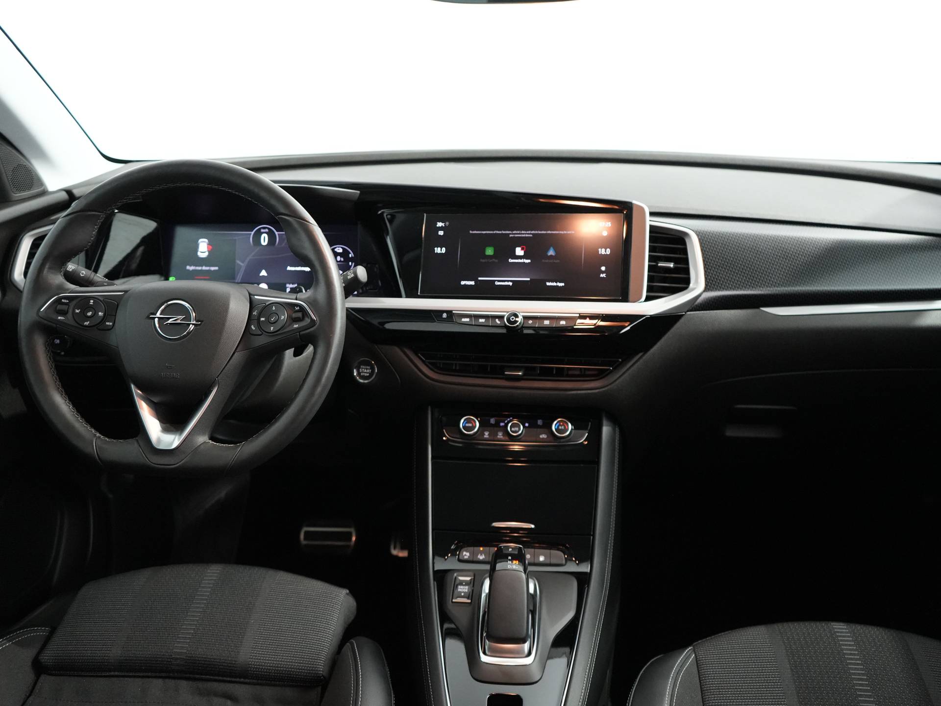 Opel is for everybody, beweert dit Duitse merk. Tenzij u een liefhebber bent van foefjes, snufjes en overbodige ditjes en datjes. Kies dan vooral iets anders. Maar wilt u een echte auto? Tja, dan hoeft u niet verder te kijken. De krachtige motor geeft deze Opel uitstekende prestaties. De comfortstoelen zorgen voor een optimale zithouding onderweg. Comfortabel houvast krijgt u van het verwarmd stuurwiel. Bij de zeer complete uitrusting van deze auto behoren ook 18 inch lichtmetalen velgen, LED koplampen, extra getint glas, in delen neerklapbare achterbank, LED-achterlichten en verstelbare lendensteunen. Wat ook opvalt, is de strakke en overzichtelijke informatie die het digitale dashboard levert. Adaptive cruise control houdt de ingestelde snelheid vast en houdt automatisch afstand tot uw voorligger. Kilometerstand? Oliepeil? Accuspanning? Allemaal te zien via de app. Overal. Altijd. Dankzij Connected Services. De electronic climate control zorgt voor een prettige binnentemperatuur. Laat u niet afleiden door gerommel aan de audioknoppen. De audiobediening op het stuur zorgt dat u altijd geconcentreerd blijft. Wat u ook in deze auto kunt vinden zijn DAB ontvangst, parkeersensoren voor en achter, regensensor, automatisch dimmende binnenspiegel, centrale deurvergrendeling met afstandsbediening en boordcomputer. Zoals u mag verwachten van deze Opel Grandland is hij uitgerust met een reeks aan actieve veiligheidssystemen. De camera van de verkeersborddetectie herkent verschillende soorten verkeersborden en toont deze op het dashboard. Het Lane-keeping systeem doet precies wat nodig is: waarschuwen en corrigeren bij onbedoelde overschrijding van de rijstrooklijnen. Forward collision warning helpt u om kop-staart aanrijdingen te voorkomen. Ook helpen het hill hold functie, vermoeidheidsherkenning, autonoom remsysteem en bandenspanningcontrolesysteem, uw rit tot een veilige rit te maken. Hebben we u nieuwsgierig gemaakt? Bel of mail ons nu voor een proefrit.