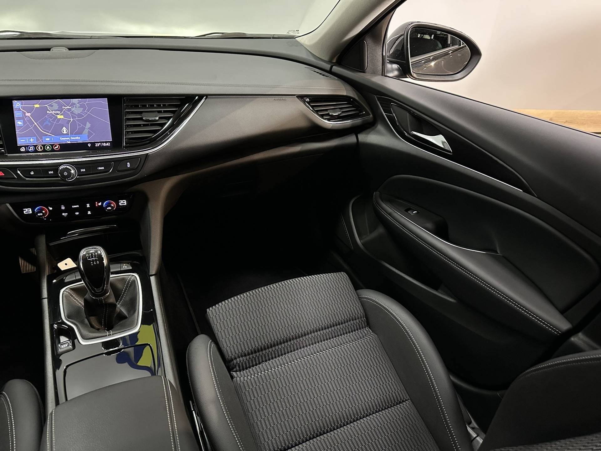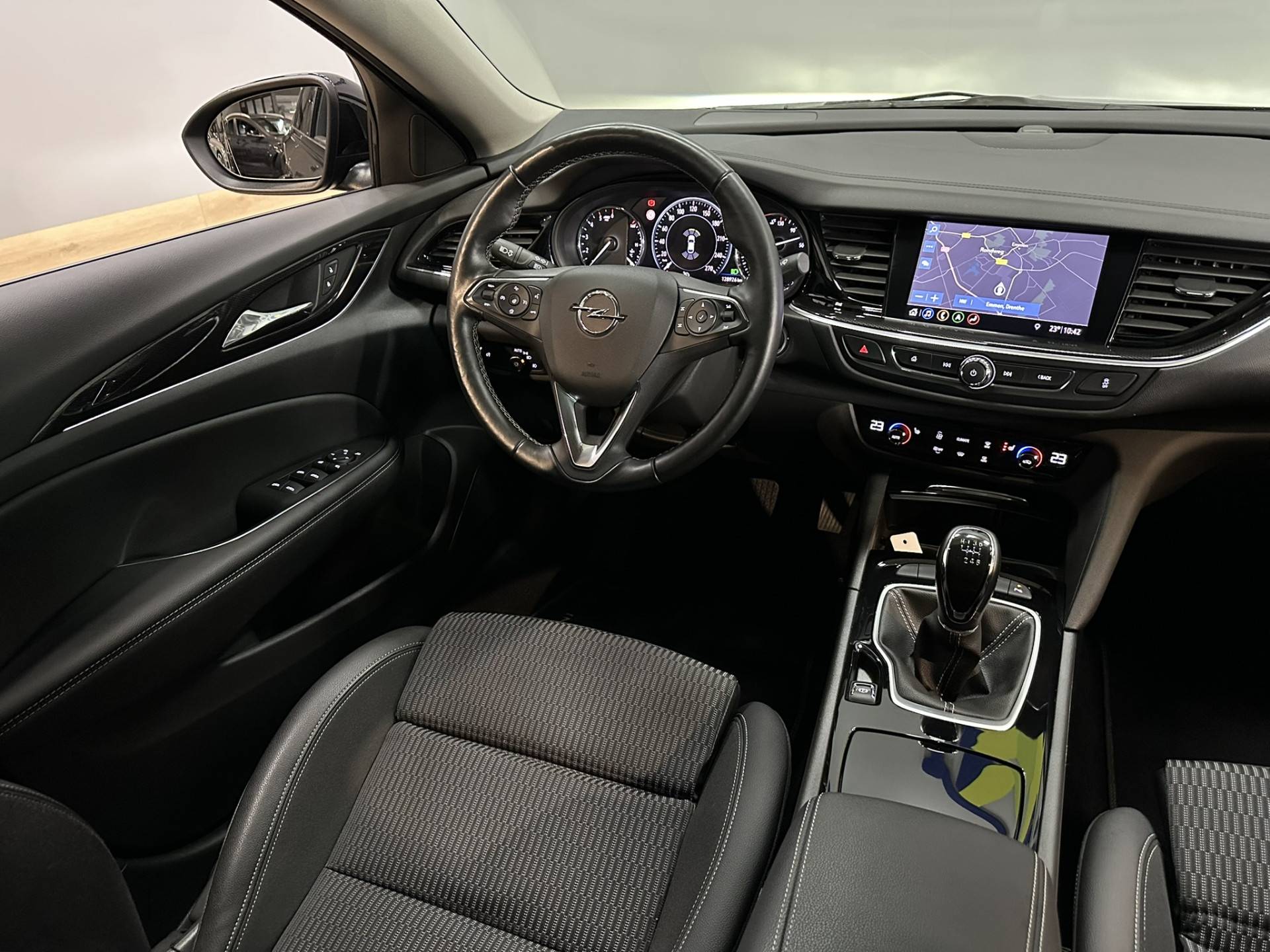 Comfortabel en veilig achteruitrijden gaat gemakkelijker dan ooit met behulp van de achteruitrijcamera. Eén druk op de knop en de elektrisch inklapbare trekhaak verdwijnt uit het zicht. In deze Insignia Grand Sport vindt u niet alleen schakelaars op het stuur om het navigatiesysteem met harde schijf te bedienen en het audio-installatiesysteem met DAB-ontvangst, maar er is ook spraakbediening. Onderweg de smartphone opladen gaat helemaal zonder snoeren, door de draadloze telefoonlader. Links afslaan terwijl een tegenligger rechtdoor gaat? Dan waarschuwt de kruisend verkeer detectie acuut. Een veilig gevoel. En deze auto heeft ook automatische airconditioning, lederen sportstuur, cruise control, keyless entry, isofix-aansluiting en centrale deurvergrendeling met afstandsbediening als standaard uitrusting.