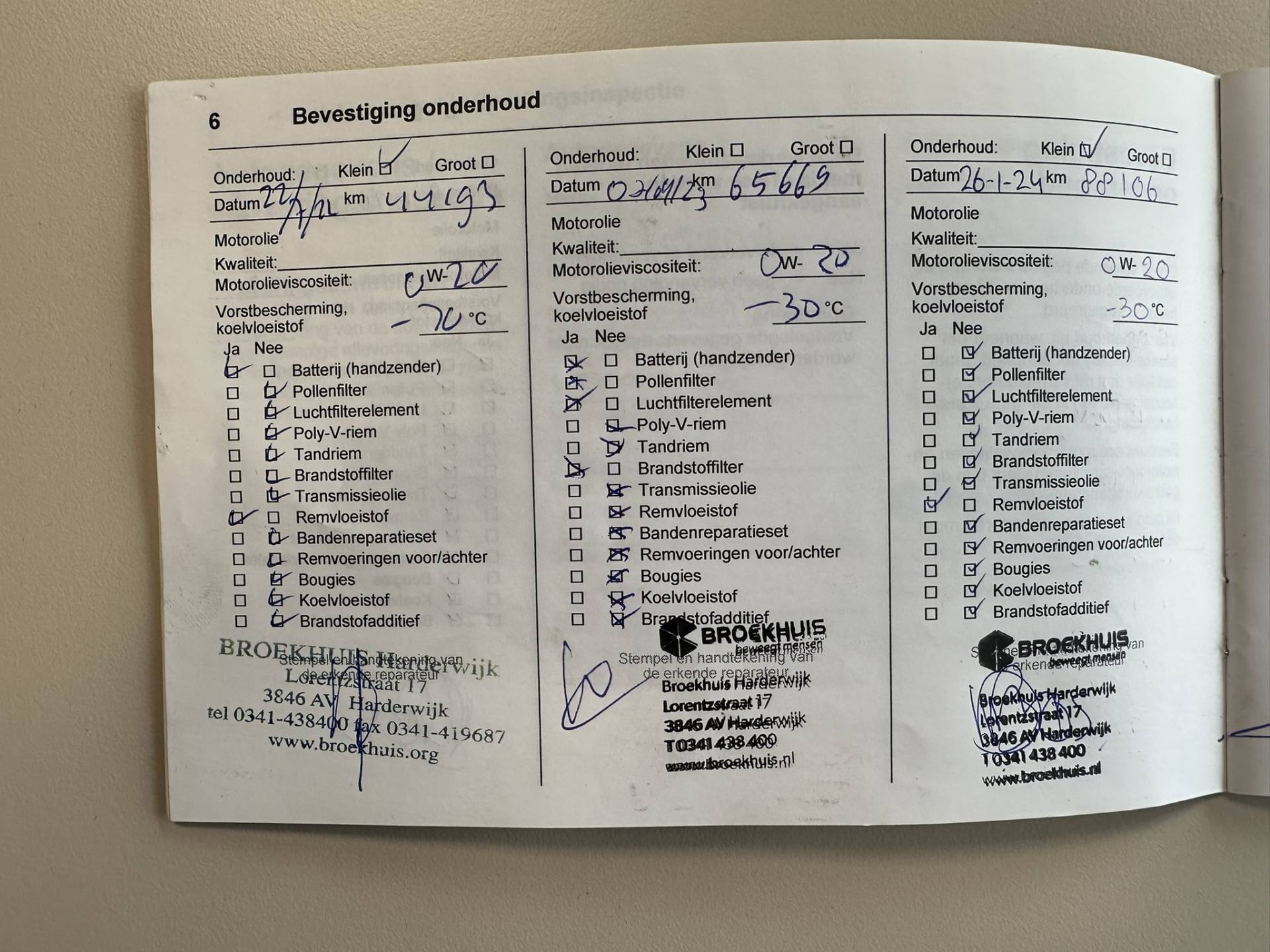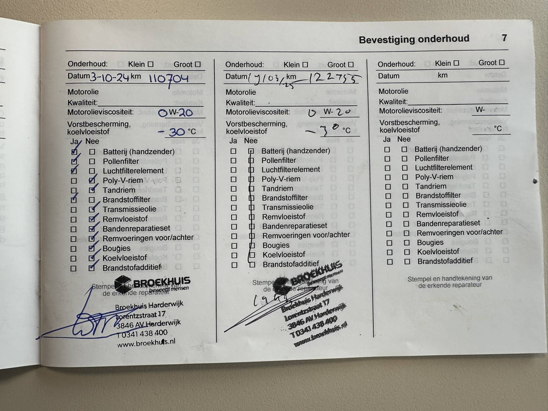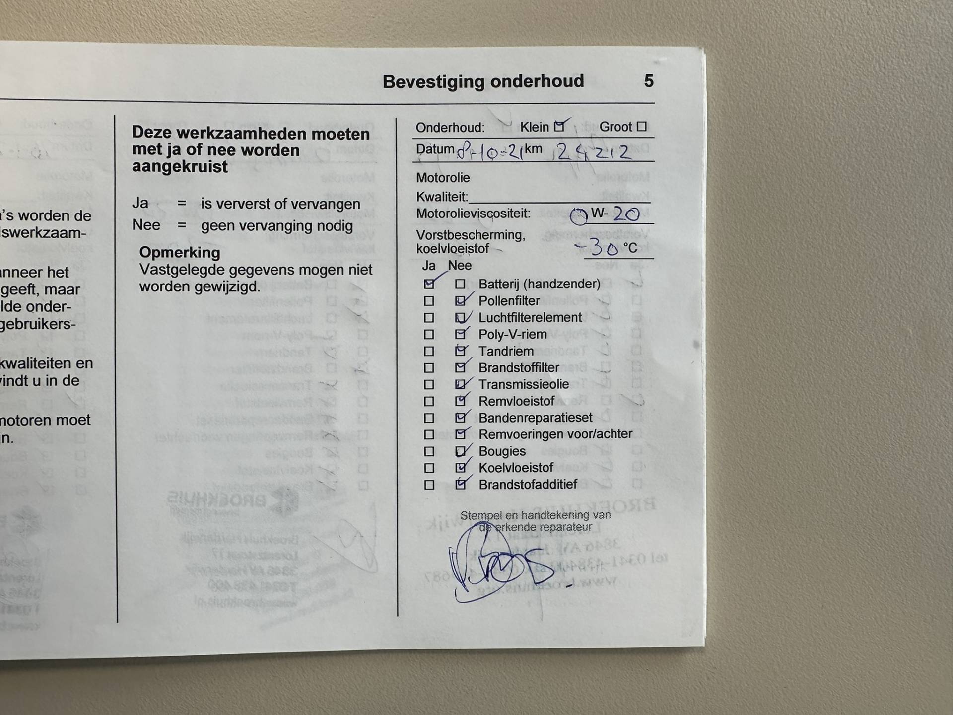 ✓ APK bij aflevering: J