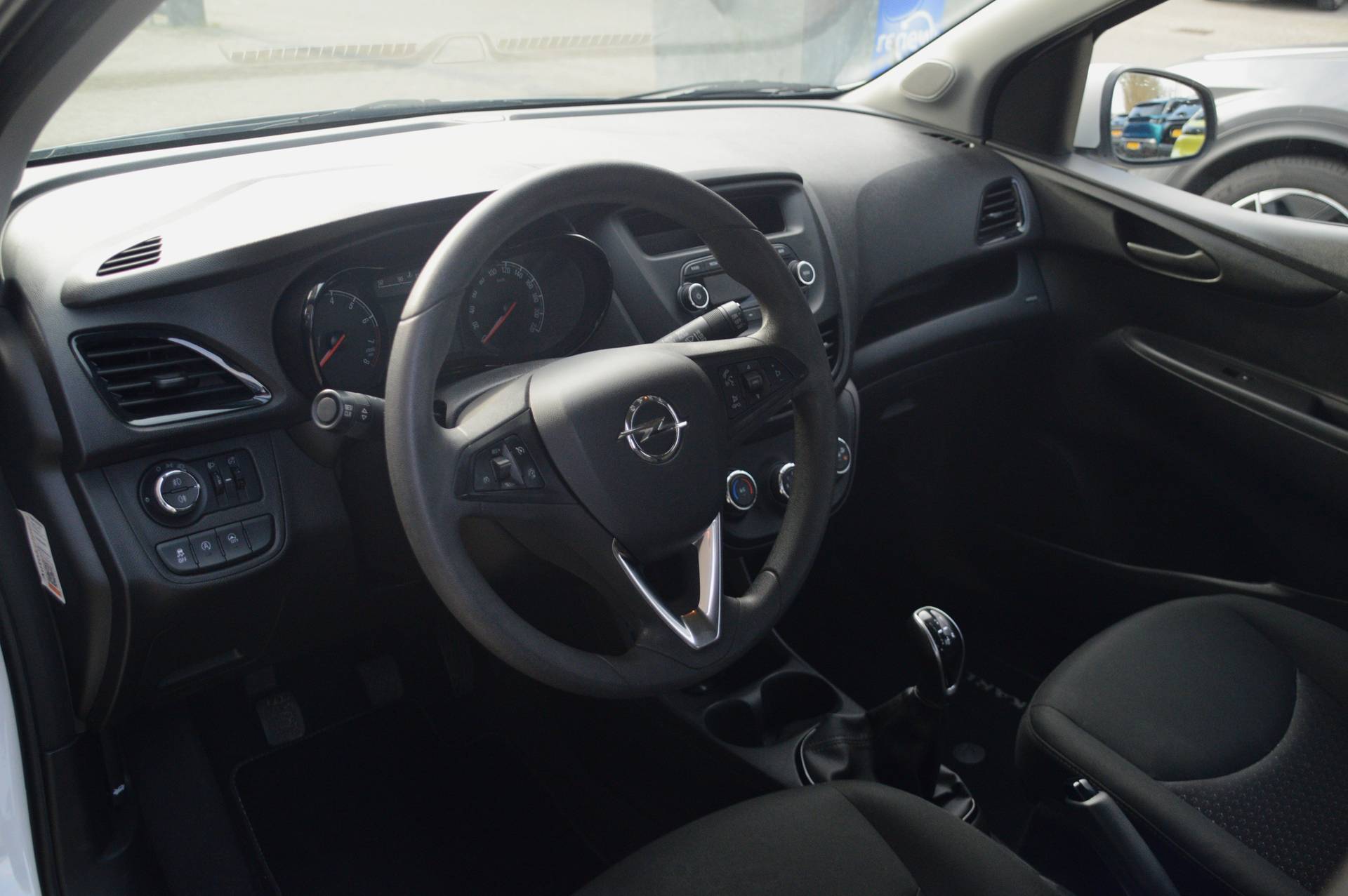 Met zo'n kleine auto krimpt uw brandstofverbruik mee. En ook de aanslag wegenbelasting wordt een stuk bescheidener. In deze auto vindt u een benzinemotor en een handgeschakelde vijfversnellingsbak. Bij de uitrusting van deze Opel horen onder meer dakspoiler en in delen neerklapbare achterbank. Het geluidssysteem is gemakkelijk en veilig te bedienen vanaf het stuur. Stel de cruise control in op de gewenste snelheid en u rijdt comfortabel en zuinig. U vindt in deze auto ook airconditioning. Ook centrale deurvergrendeling met afstandsbediening, boordcomputer en verstelbaar stuur horen tot de voorzieningen op deze auto. De nieuwste veiligheidssystemen komen in deze Opel Karl samen. Ook helpen het hill hold functie en bandenspanningcontrolesysteem, uw rit tot een veilige rit te maken. Hebt u interesse in deze auto? Neem nu contact met ons op en we zetten hem klaar voor een proefrit.