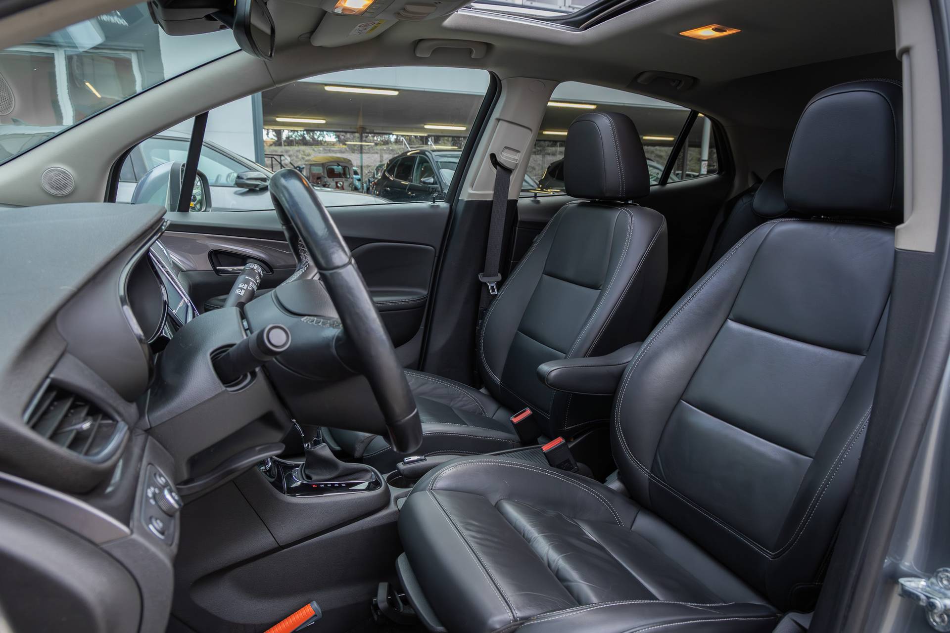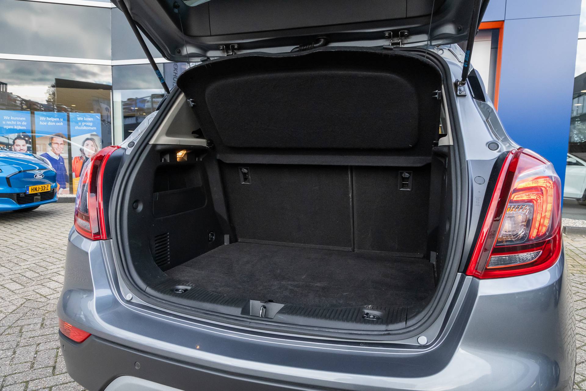 Uw nieuwe auto staat klaar voor vertrek. Stap gerust in, deze Opel Mokka X heeft 84642 kilometer gelopen en is van het bouwjaar 2019. De krachtige benzinemotor van deze auto is gekoppeld aan een automatische transmissie. Als u nog nooit een elektrisch bediend glazen panorama dak hebt gehad, is dit echt een ontdekking. Licht, lucht en ruimtelijk gevoel maken elke rit tot een feest. Helemaal in dit fraaie lederen interieur. De R in de maand? Dan is het tijd voor de luxe van de meegeleverde stoelverwarming! Stramme vingers krijgen 's winters een VIP-behandeling van het verwarmd stuurwiel. Ook is de auto voorzien van: 18 inch lichtmetalen velgen, LED koplampen, extra getint glas, in delen neerklapbare achterbank, LED-achterlichten en snelheidsafhankelijke stuurbekrachtiging. Altijd achter zicht, nooit meer nekkramp! De achteruitrijcamera maakt het supermakkelijk. In deze auto beschikt u natuurlijk over een full map navigatiesysteem. Het audiosysteem met DAB-radio biedt glasheldere geluidskwaliteit. U bedient dit veilig via het stuurwiel. De electronic climate control zorgt onder alle omstandigheden voor een prettige temperatuur. Om de veiligheid onderweg te verhogen, heeft deze Opel zowel een automatisch inschakelbare verlichting als een regensensor aan boord, zodat hij zelf de verlichting en de ruitenwissers kan inschakelen. Met de cruise control komt u bijna nog fitter aan dan u vertrekt. Natuurlijk behoren keyless entry, automatisch dimmende binnenspiegel en boordcomputer ook tot de uitrusting van deze complete auto. In de Opel Mokka X heeft uw veiligheid en die van uw omgeving prioriteit. Belangrijk voor uw veiligheid en die van uw passagiers is de verkeersbord-detectie in deze auto. Een camera houdt de juiste koers binnen de rijstrook in de gaten en het Lane-keeping systeem corrigeert bij afwijkingen. Het risico van een kop-staartbotsing wordt aanzienlijk verminderd door de forward collision warning. Verder is deze auto uitgerust met hill hold functie en bandenspanningcontrolesysteem. Een proefrit levert het overtuigende bewijs. Bel nu!