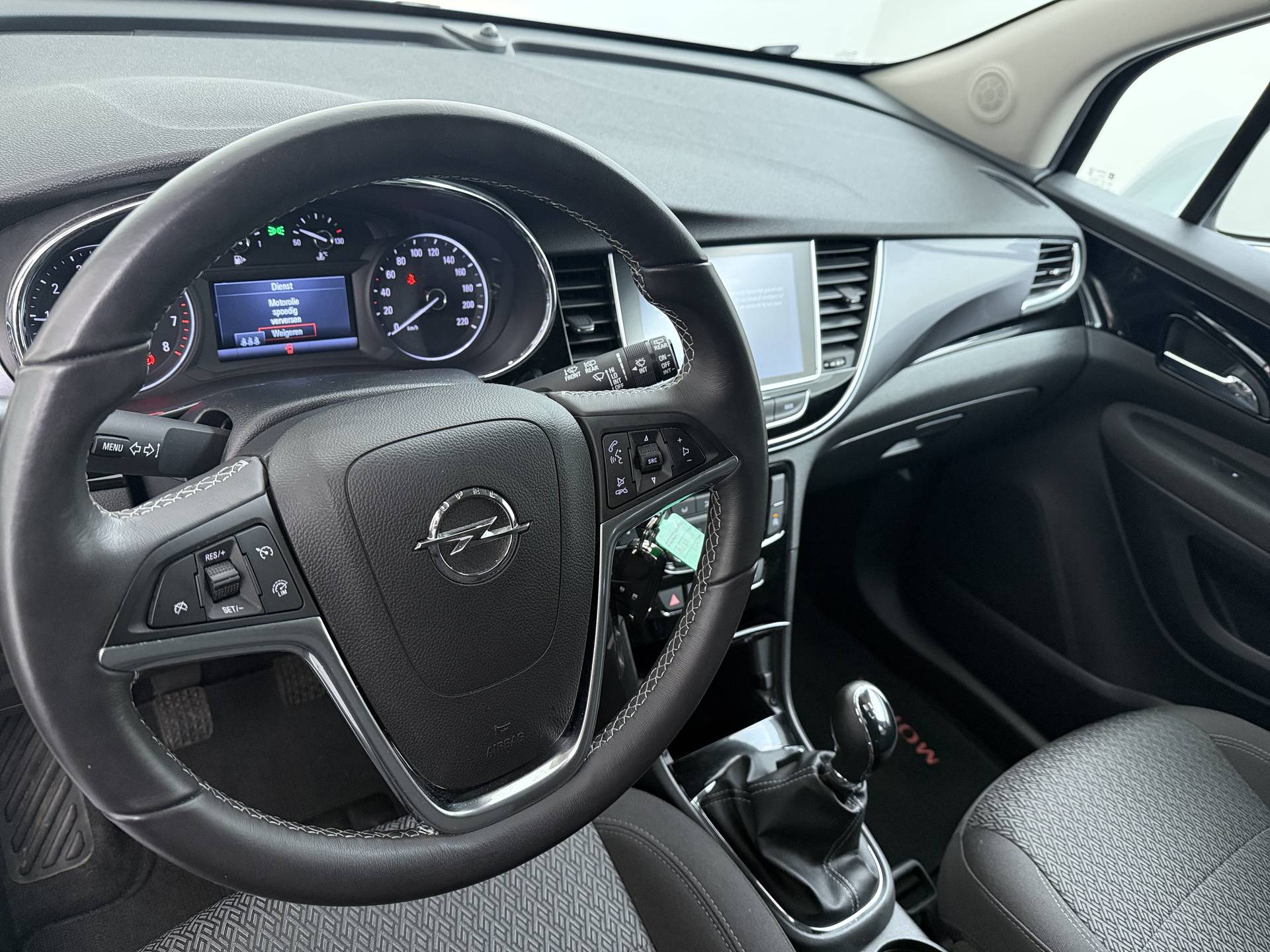 Laat u niets wijsmaken, deze Opel Mokka X biedt alles wat u van een auto verlangt. Het is vermeldenswaard dat deze auto maar 30304 kilometer heeft gereden sinds 2017. De aandrijving komt voor rekening van een benzinemotor en een handgeschakelde zesversnellingsbak. Tot de uitrusting van deze Opel behoren ook 17 inch lichtmetalen velgen, LED-dagrijverlichting, extra getint glas, in delen neerklapbare achterbank en snelheidsafhankelijke stuurbekrachtiging. De hoogwaardige achteruitrijcamera en het display met hoge resolutie zorgen dat helemaal niets u meer ontgaat van wat er achter de auto gebeurt. Als u regelmatig met een aanhanger of een fietsendrager op pad bent, is de afneembare trekhaak een praktische extra. De ingebouwde Connected Services vertellen u via de app alles over de status van de auto. Locatie, onderhoudsstatus, brandstofpeil en nog veel meer! Terwijl het full map navigatiesysteem de ideale route voor u uitstippelt, geniet u van de kwaliteit van het audiosysteem met DAB-ontvangst. De bediening is bovendien gemakkelijk via knoppen op het stuur. Achter het stuur van deze Opel bent u niet alleen. De auto kijkt als het ware met u mee tijdens de rit. De regensensor schakelt de ruitenwissers in als het nodig is en de automatisch inschakelbare verlichting doet de lichten voor u aan. Natuurlijk behoren cruise control, airconditioning, automatisch dimmende binnenspiegel, lederen stuur, centrale deurvergrendeling met afstandsbediening en boordcomputer ook tot de uitrusting van deze complete auto. In de Opel Mokka X heeft uw veiligheid en die van uw omgeving prioriteit. De auto is ook uitgerust met hill hold functie en bandenspanningcontrolesysteem. Als u nieuwsgierig bent naar deze auto, neem dan snel contact met ons op.