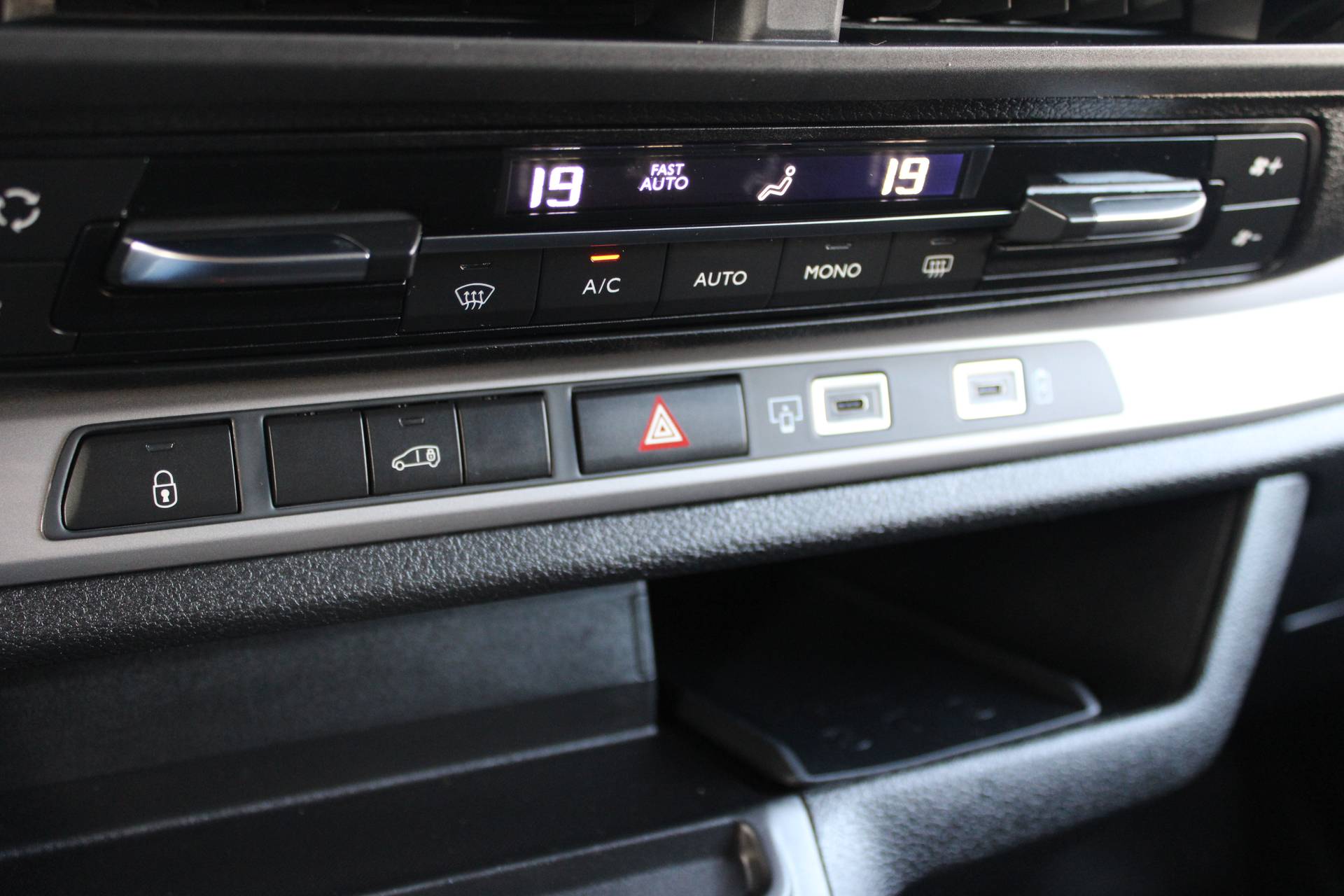 ✓ Gesloten bovenste opbergvak dashboard en gesloten onderste dashboardkastje