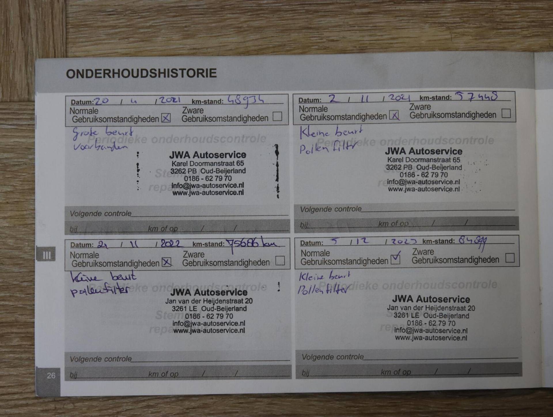 - Onderhoudshistorie aanwezig is