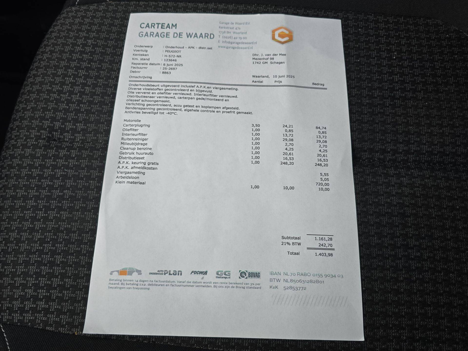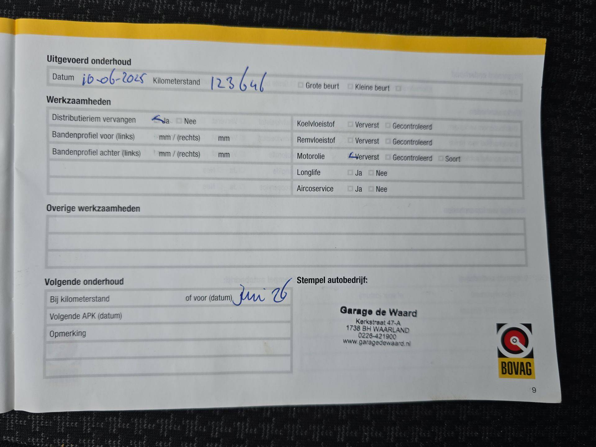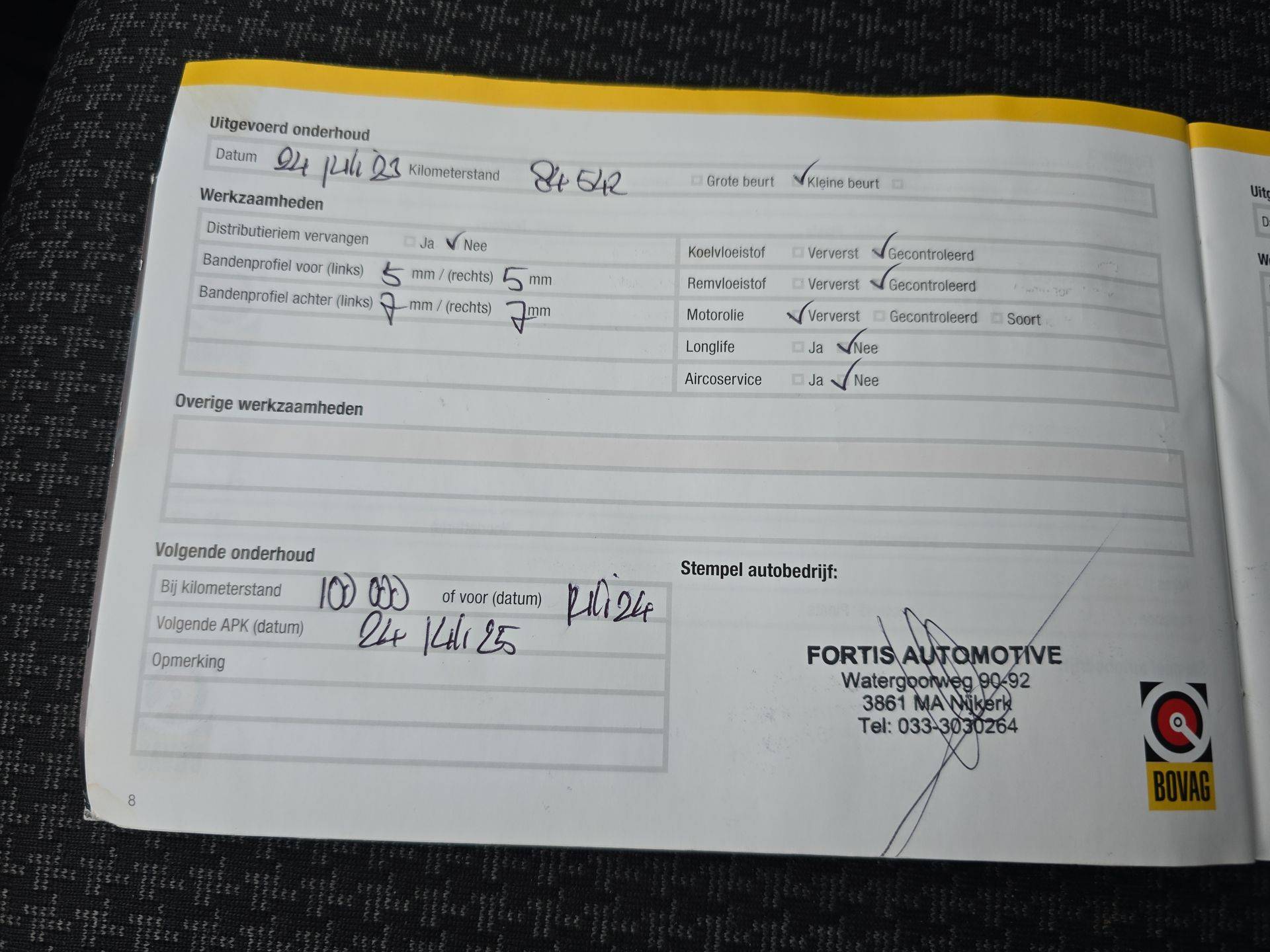 APK: Nieuwe APK bij aflevering