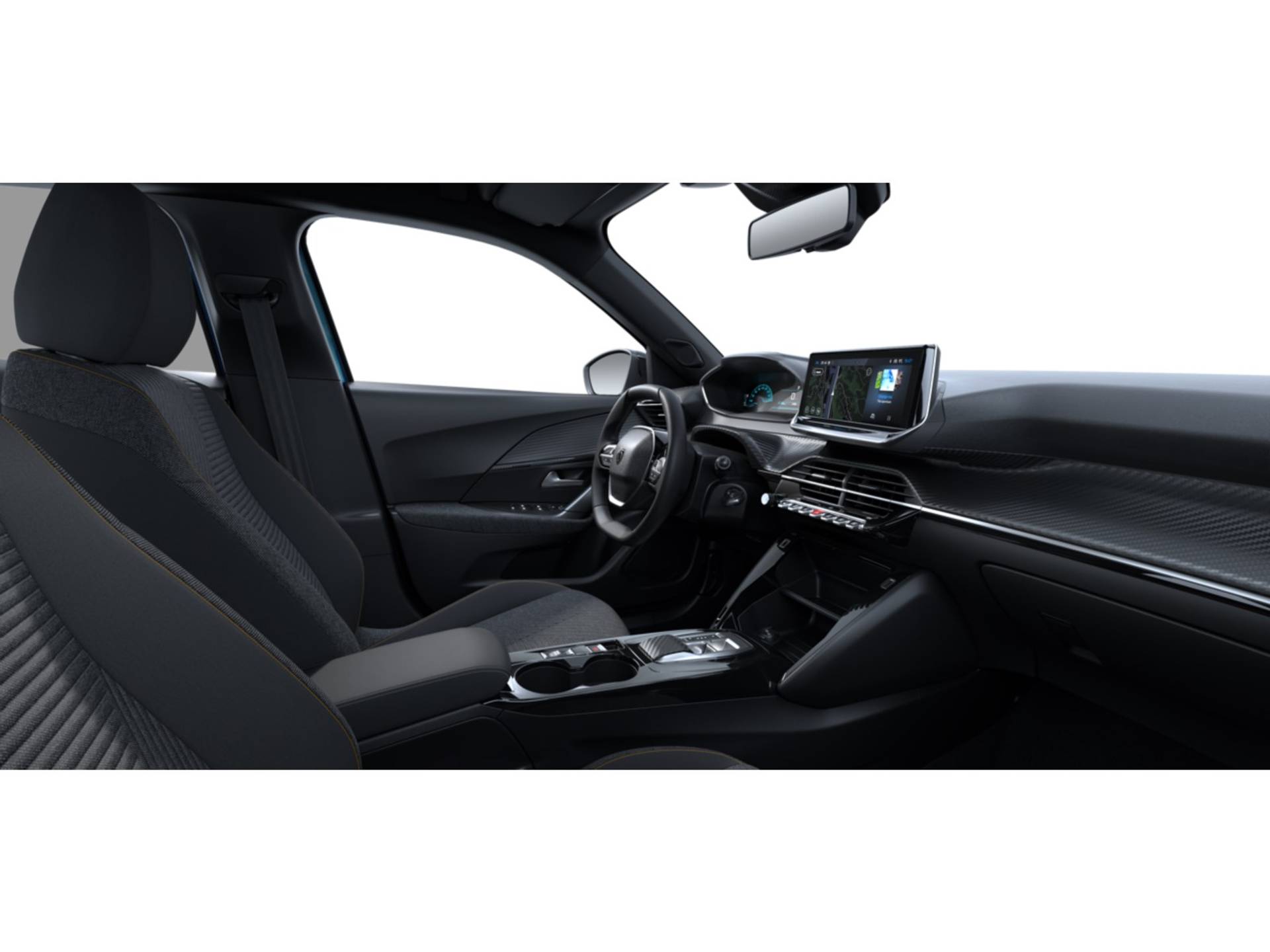 ✓ Dashboard in zacht materiaal met carboneffect en hoogglans zwarte sierstrip