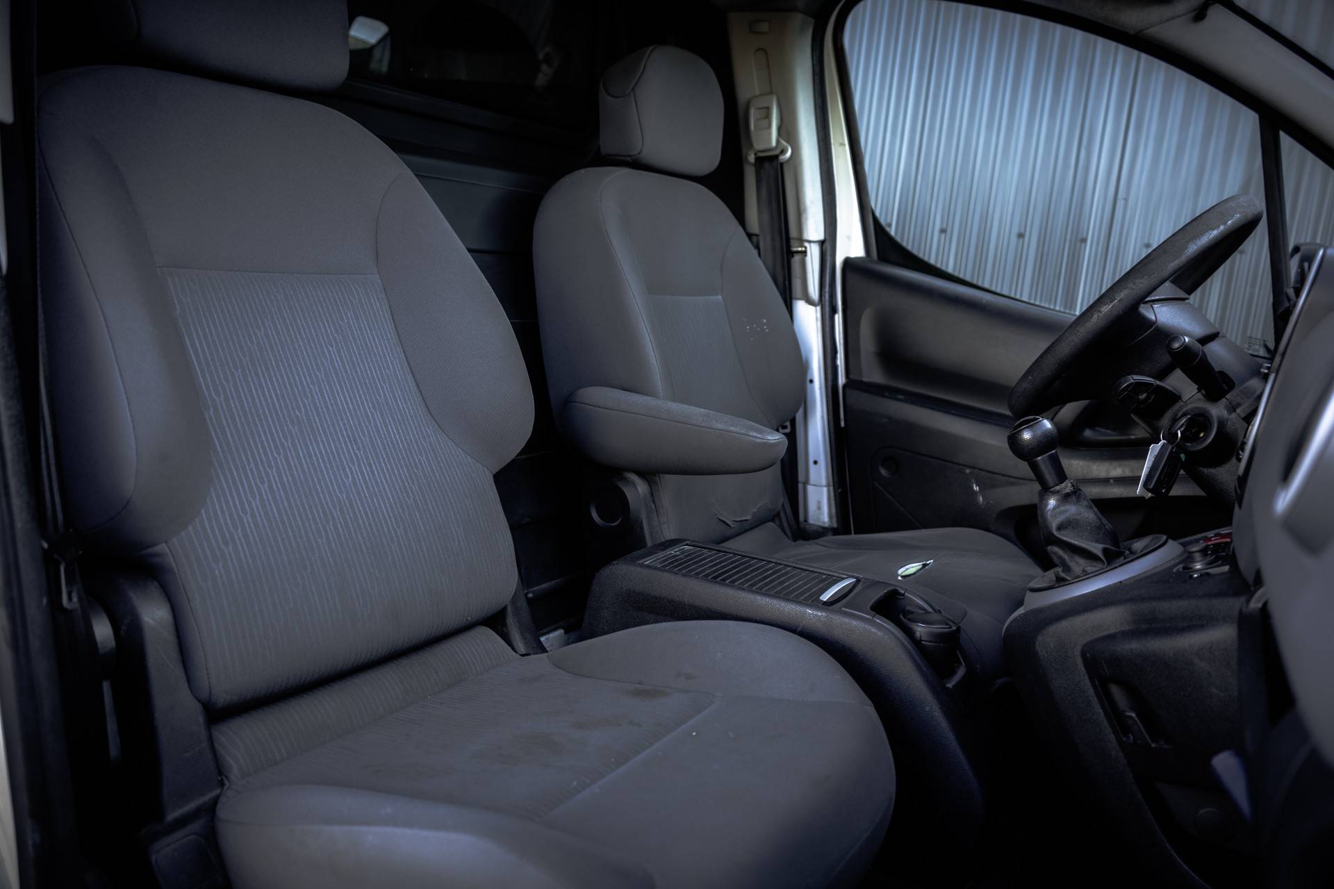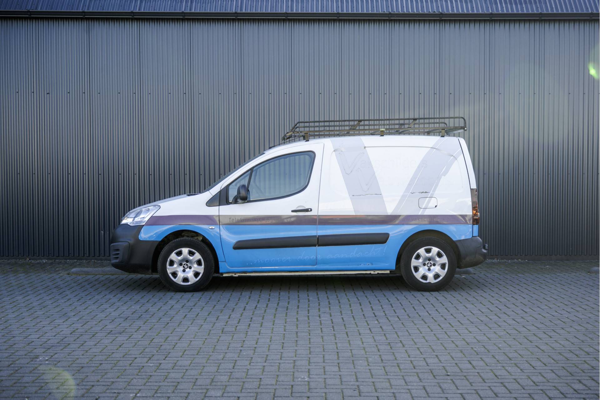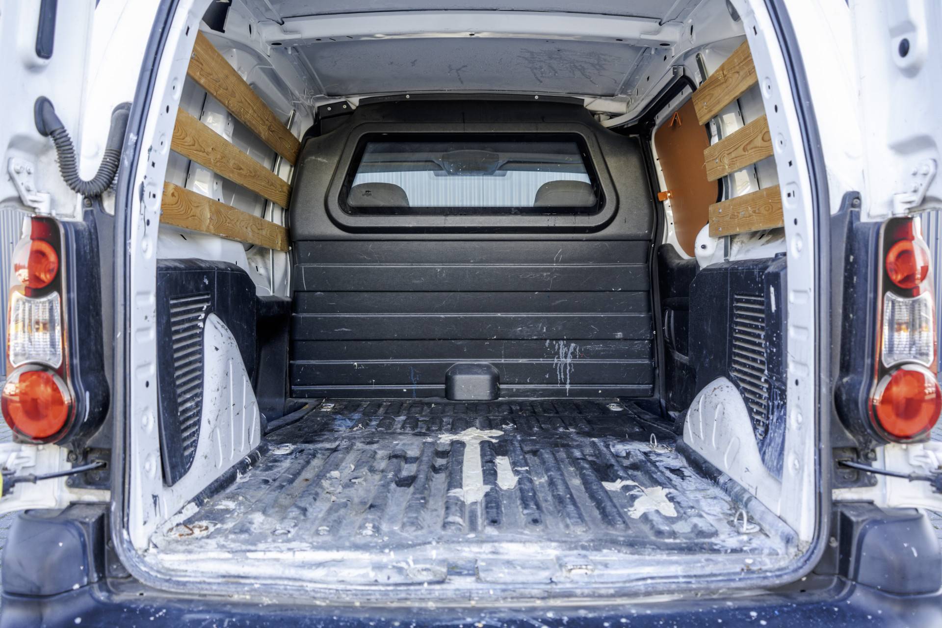 Deze Peugeot Partner is uitgevoerd met o.a. airco, schuifdeur en een trekhaak. De auto is voorheen van een schildersbedrijf geweest dat ook te zien is in de laadruimte.