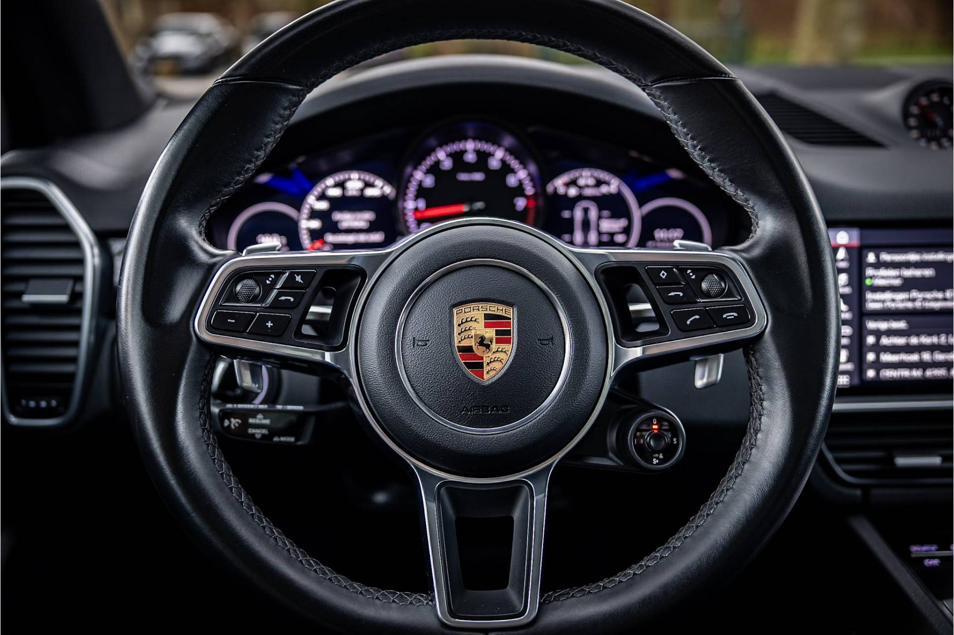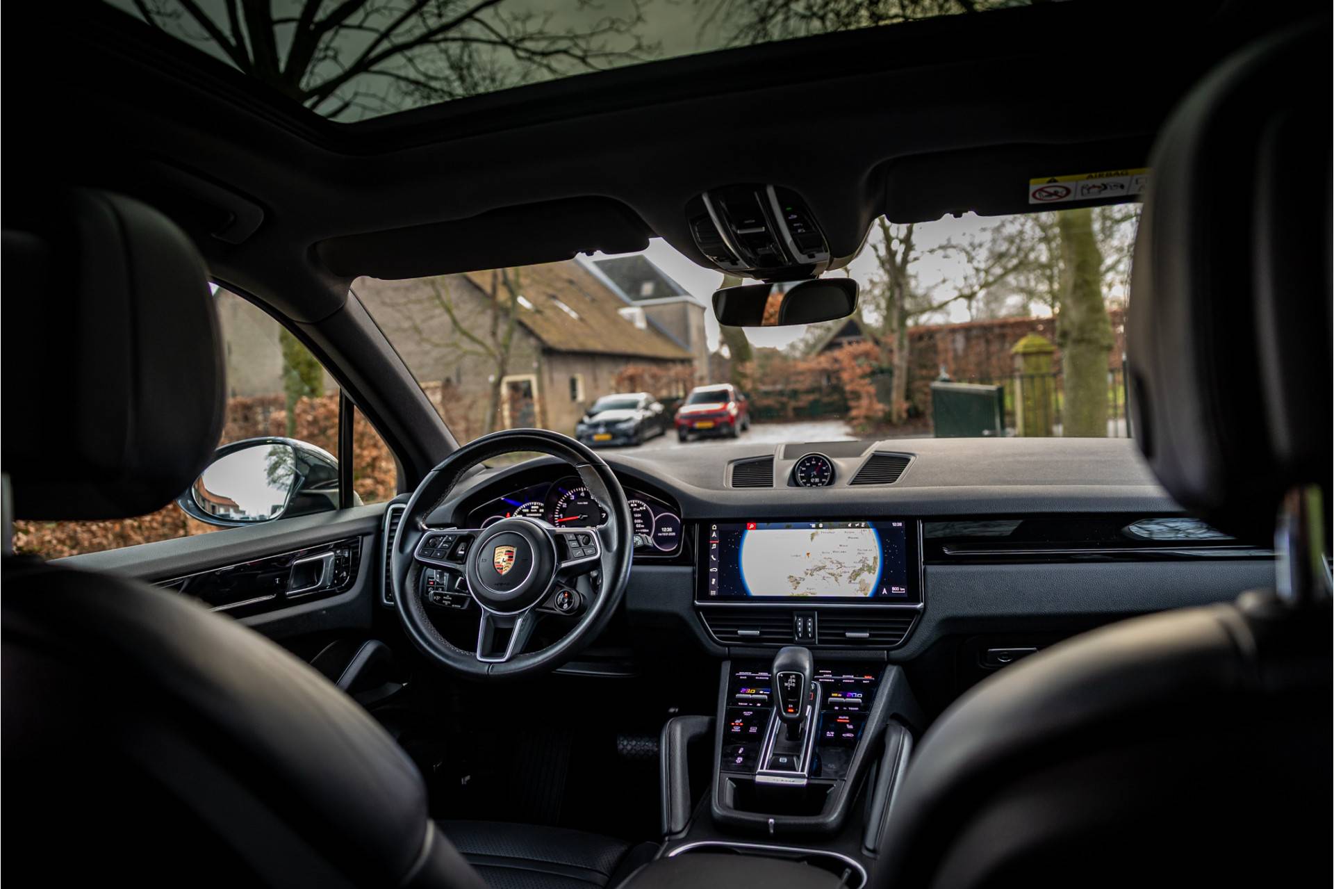 Tot de uitrusting van deze auto behoort standverwarming (interieurvoorverwarming) met timer, glazen panoramadak, sport chrono pakket, surround view camera met 360 graden beeld, Bose sound systeem, 14-wegs adaptieve comfortstoelen met memory functie voor bestuurder en passagier, een elektrisch wegklapbare trekhaak, luchtvering (PASM), LED koplampen met PDLS+, Apple Carplay / Android Auto, achteruitrijcamera, navigatiesysteem met touchscreen, stuurbekrachtiging plus (snelheidsafhankelijk), extra getint glas achter, bluetooth telefoonintegratie, verwarmbare voorstoelen, verwarmbaar stuurwiel, 90 liter brandstoftank, rijstrookcontrole assistent, dakrails, automatische klimaatregeling met gescheiden zones en automatisch dimmende spiegels.