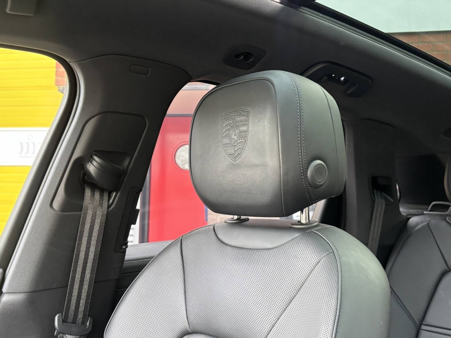 Porsche logo's op de hoofdsteunen