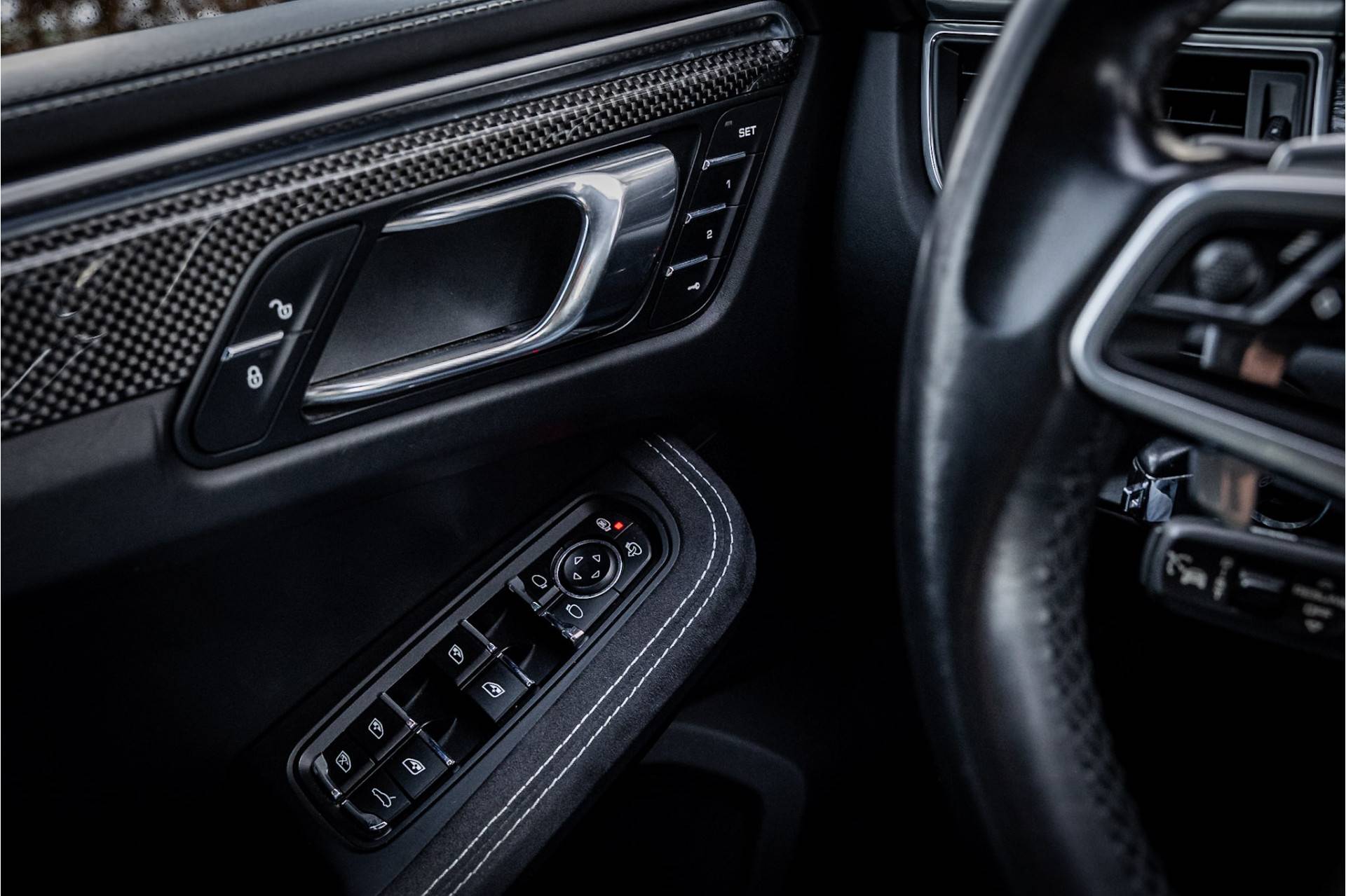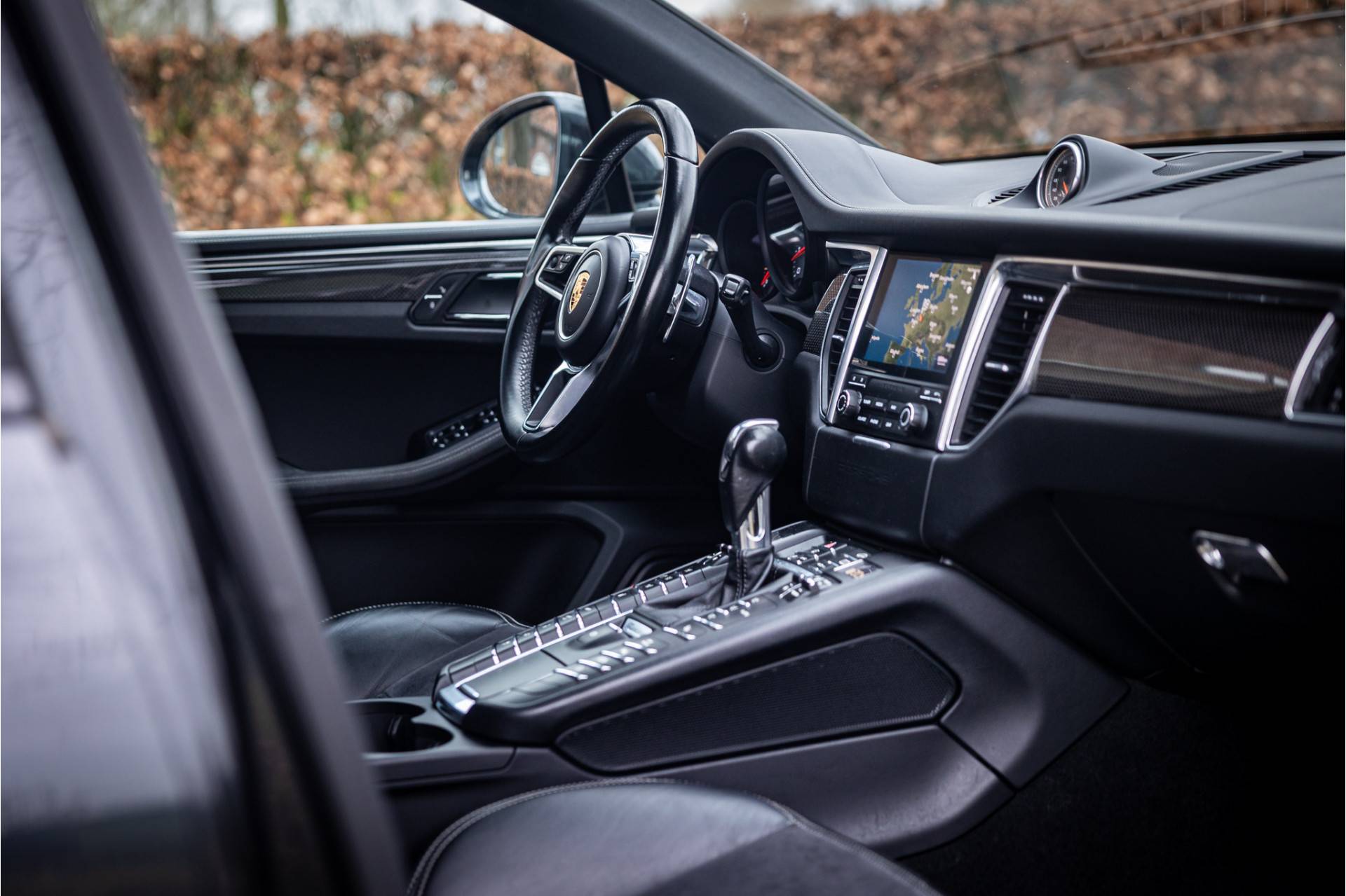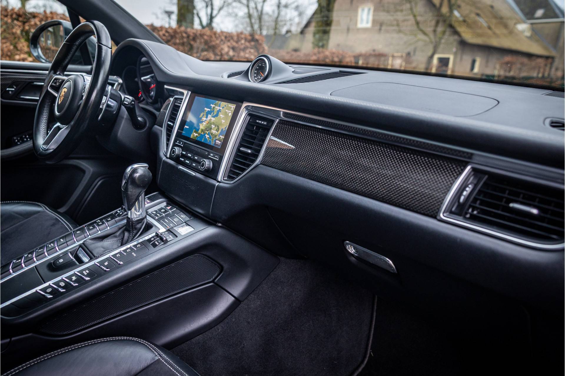 Tot de uitrusting van deze auto behoort een glazen panoramadak, Bose surround audio, TV tuner analoog en digitaal, luchtvering, surround view camera, standverwarming met afstandsbediening, adaptive cruise control, dode hoek assistentie, sportuitlaatsysteem, sport chrono pakket, 20" Macan spyder design wiel, LED koplampen met PDLS+, sportstoelen met memory functie voor bestuurder, elektrisch wegklapbare trekhaak, achteruitrijcamera, extra getint glas achter, bluetooth telefoonintegratie, navigatiesysteem met touchscreen, verkeersborddetectie, verwarmbare voorstoelen, verwarmbare zitplaatsen achter, verwarmbaar stuurwiel, CD/DVD wisselaar, multimedia aansluitingen, elektrisch bedienbare achterklep, luchtdeflectoren aan zijkant Sideblade Carbon, metallic lak, automatische klimaatregeling met gescheiden zones, automatisch dimmende spiegels, licht comfort pakket, zij-airbags achter en 75 liter brandstoftank.