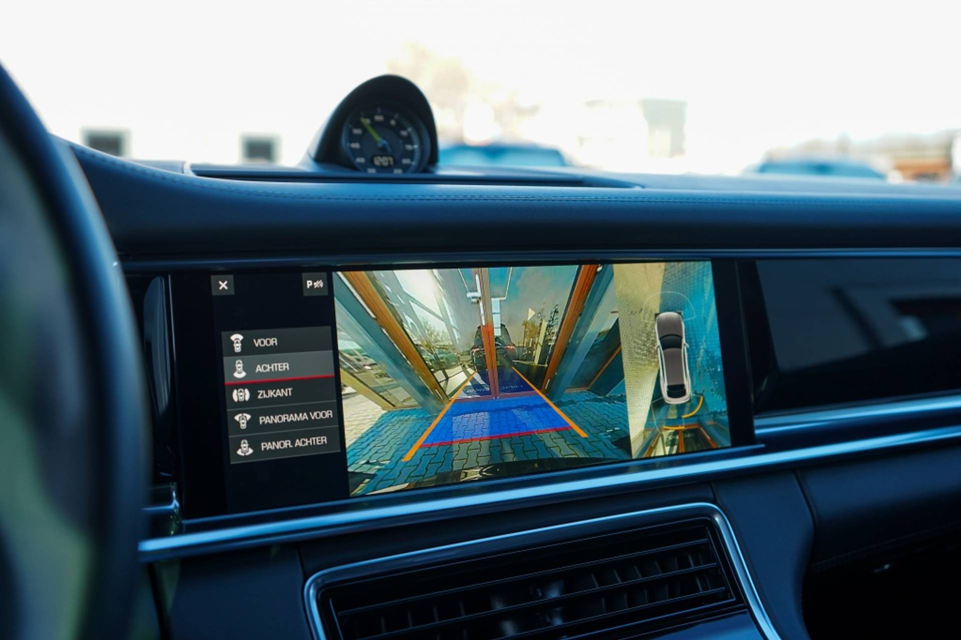 Deze Porsche is uitgerust met een scala aan handige opties die het rijcomfort en de veiligheid verhogen. Zo beschikt de auto over parkeersensoren voor en een adaptieve cruise control, waardoor manoeuvreren en het behouden van een veilige afstand tot je voorganger een fluitje van een cent wordt.