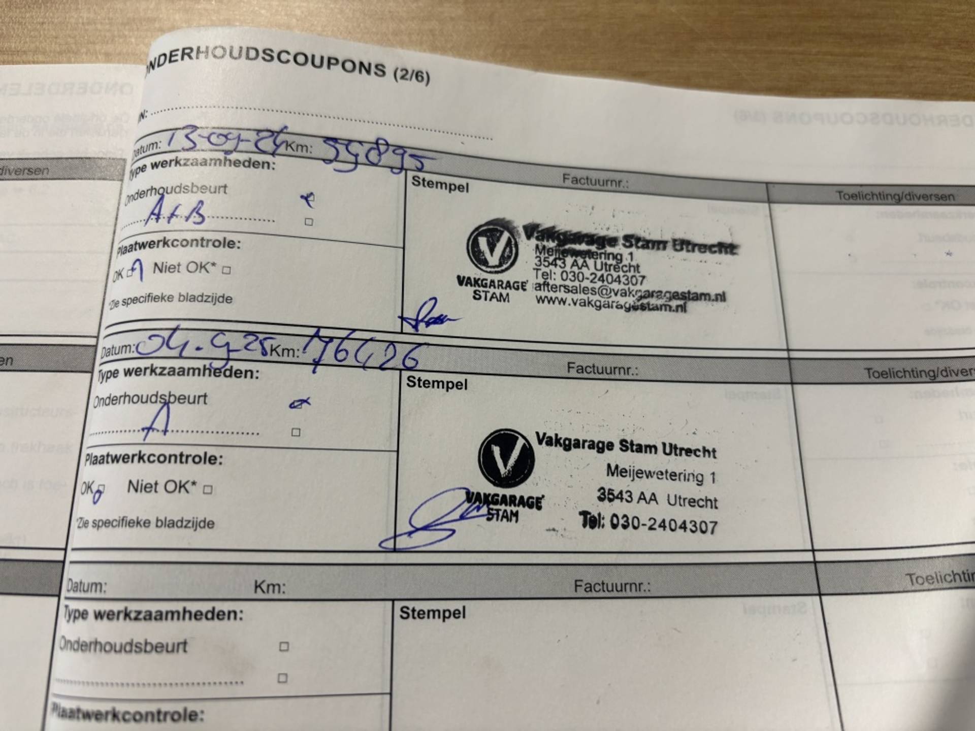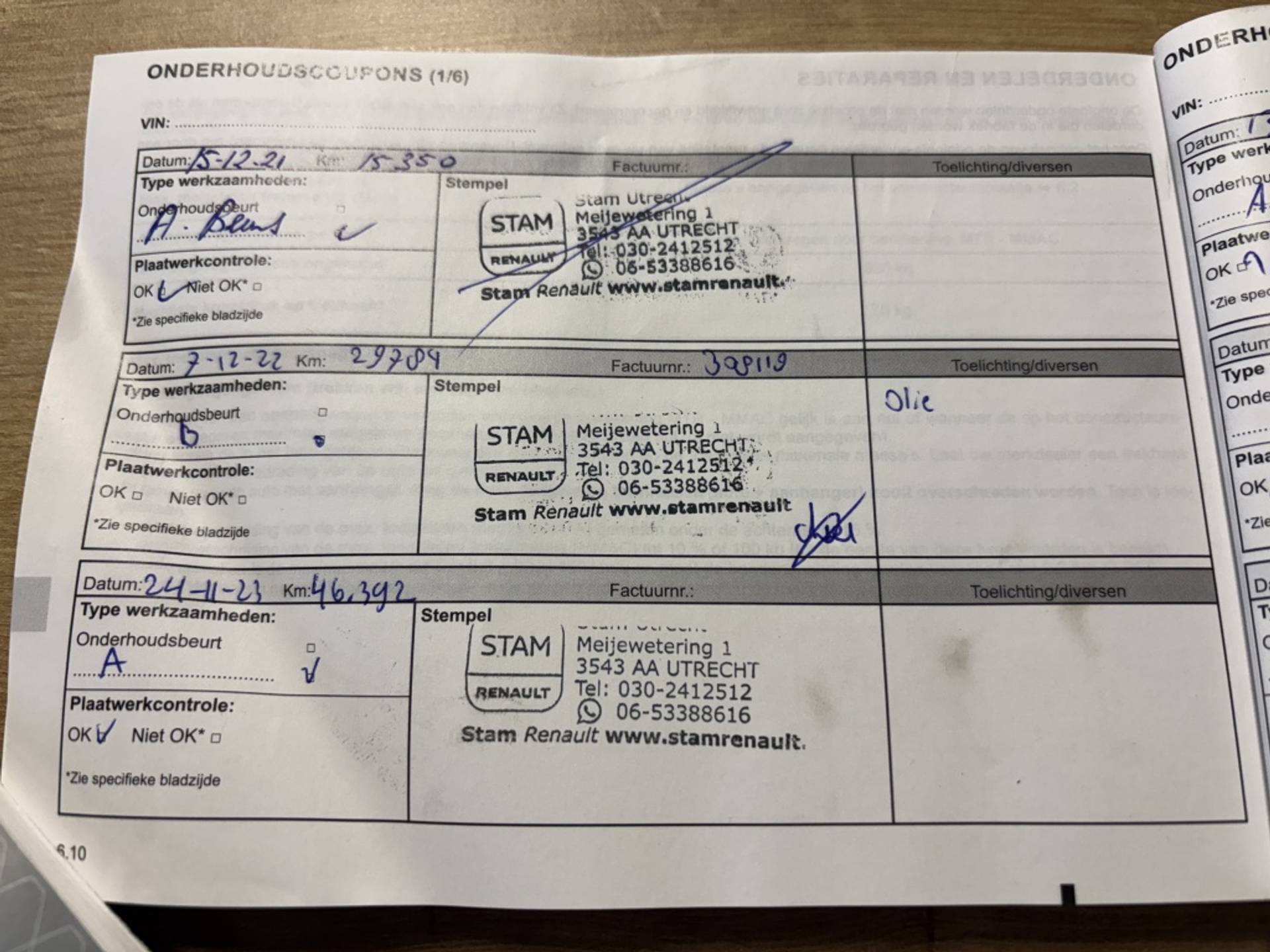 ✓ APK bij aflevering: J