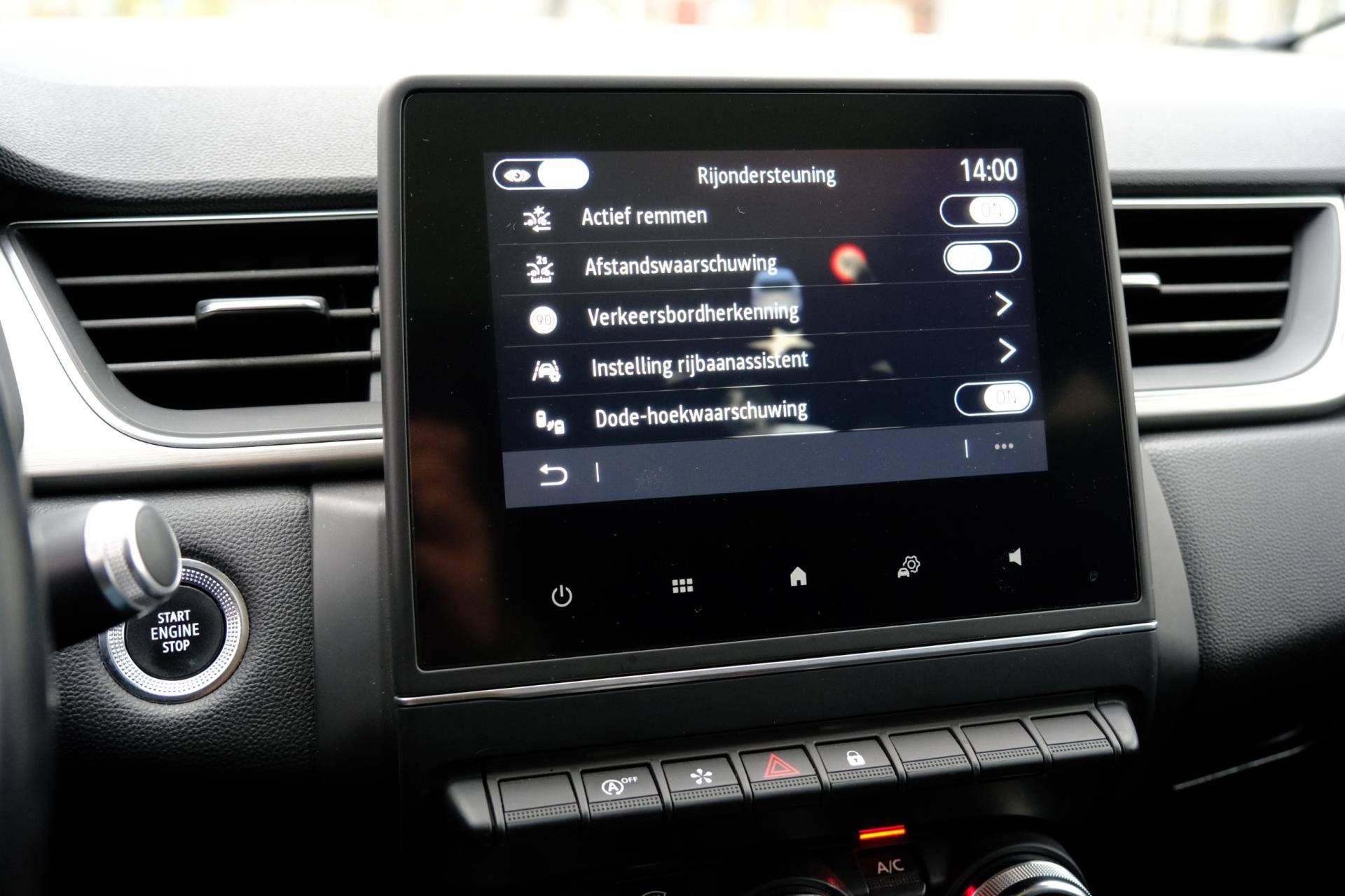 Zoals u mag verwachten van deze Renault Captur is hij uitgerust met een reeks aan actieve veiligheidssystemen. U rijdt ook veiliger omdat deze auto voor u de verkeersborden langs de weg kan lezen. De belangrijkste borden worden op uw instrumentarium geprojecteerd, zodat u ze niet kunt missen. Met het Lane-keeping systeem gaat u nooit onbedoeld over de streep. Onbedoeld bumperkleven is er niet bij, dankzij de forward collision warning. Die waarschuwt direct als een botsrisico met uw voorligger dreigt. De veiligheid van deze auto wordt verder verhoogd door dodehoekdetectie, accident avoidance system, hill hold functie, brake assist en bandenspanningcontrolesysteem.