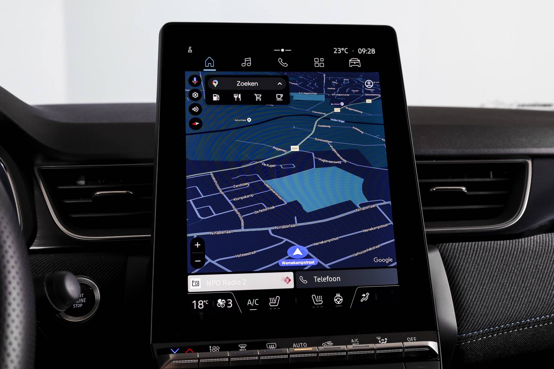 Qua comfort en gebruiksgemak is hij rijk uitgerust. Zo beschikt deze Captur over adaptieve cruise control, elektrisch verstelbare bestuurdersstoel, voorstoelen verwarmd en een verwarmd stuur – prettig tijdens koude dagen. Ook aan connectiviteit is gedacht met Apple CarPlay/Android Auto en het ingebouwde navigatiesysteem werkt op basis van geïntegreerde Google Maps, wat zorgt voor actuele en duidelijk leesbare route-informatie. Bovendien kun je het systeem eenvoudig bedienen via spraakbediening.