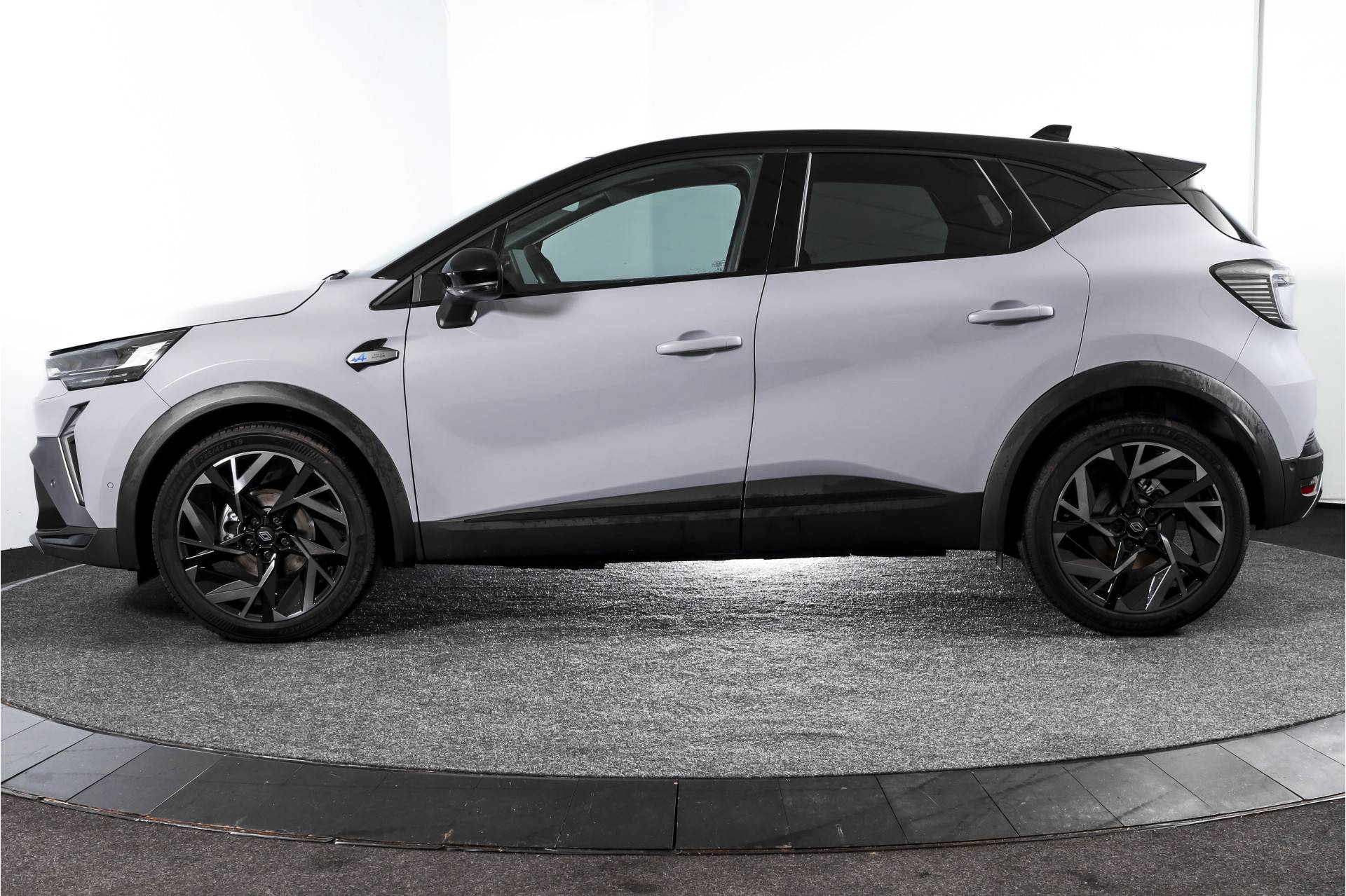 Deze Renault Captur is uitgevoerd in de Esprit Alpine-uitvoering, de meest sportieve variant binnen het Captur-gamma. Met zijn 1.3 mild hybrid benzinemotor en 160 pk in combinatie met een automaat, biedt hij een soepele en krachtige rijervaring met een laag verbruik.